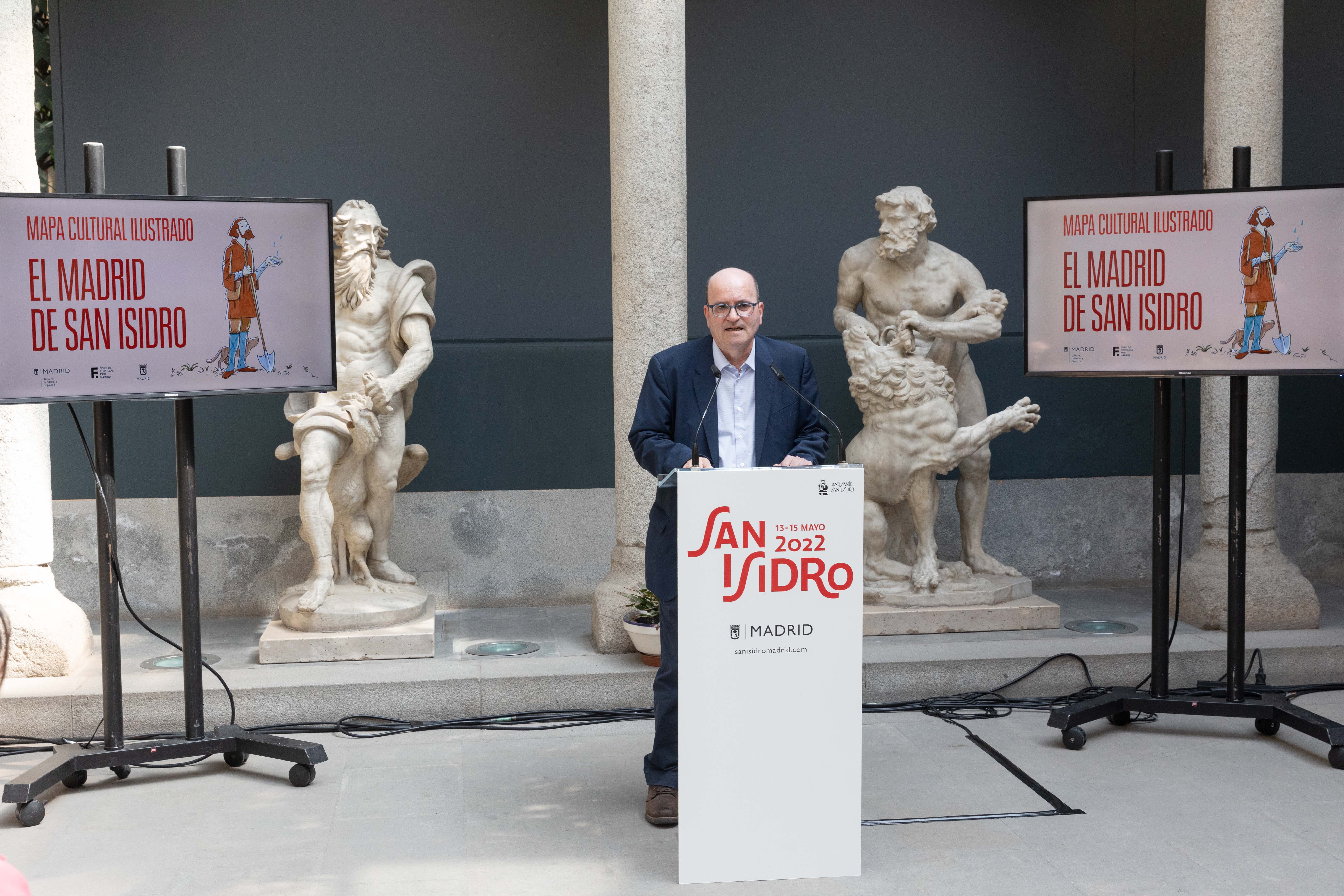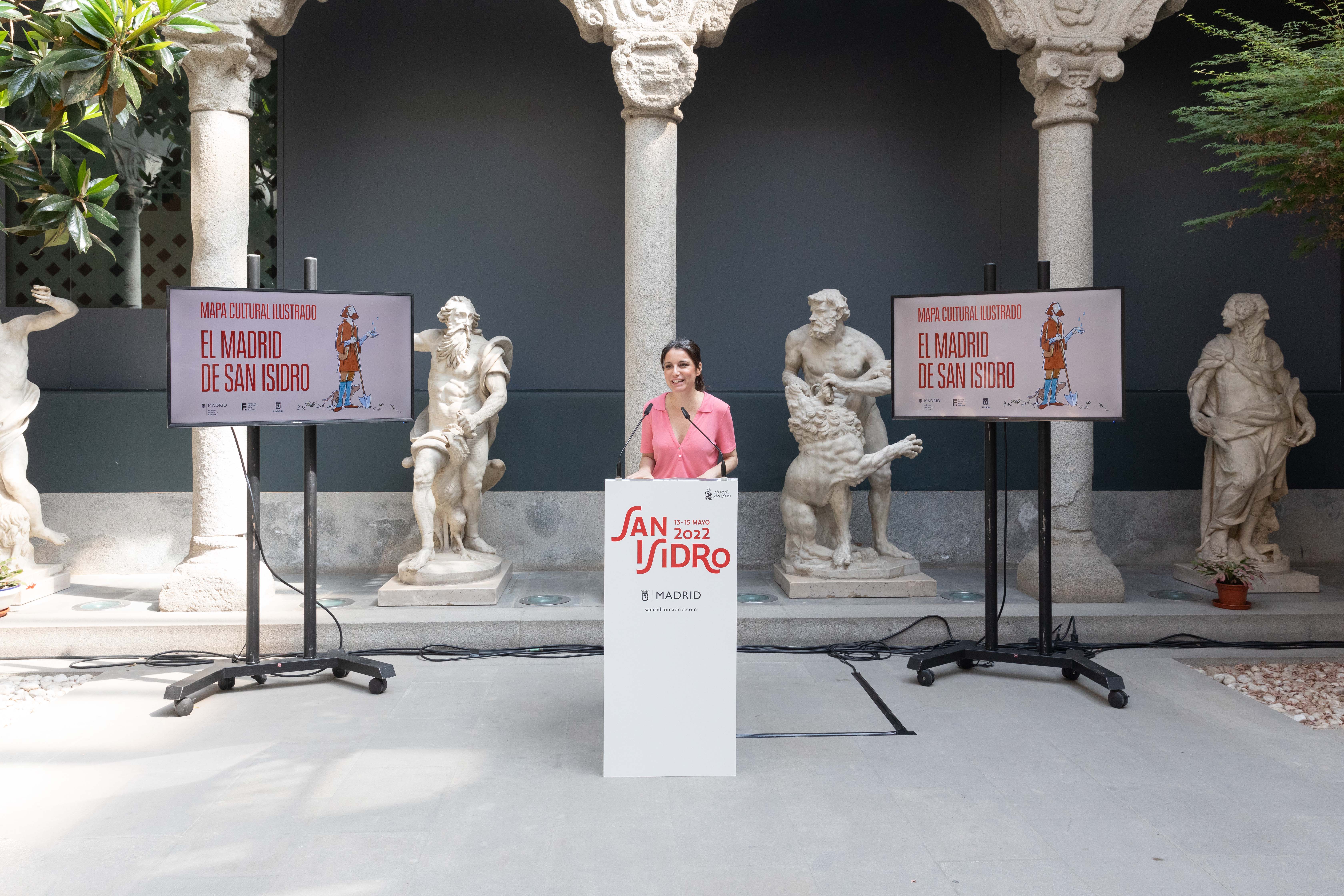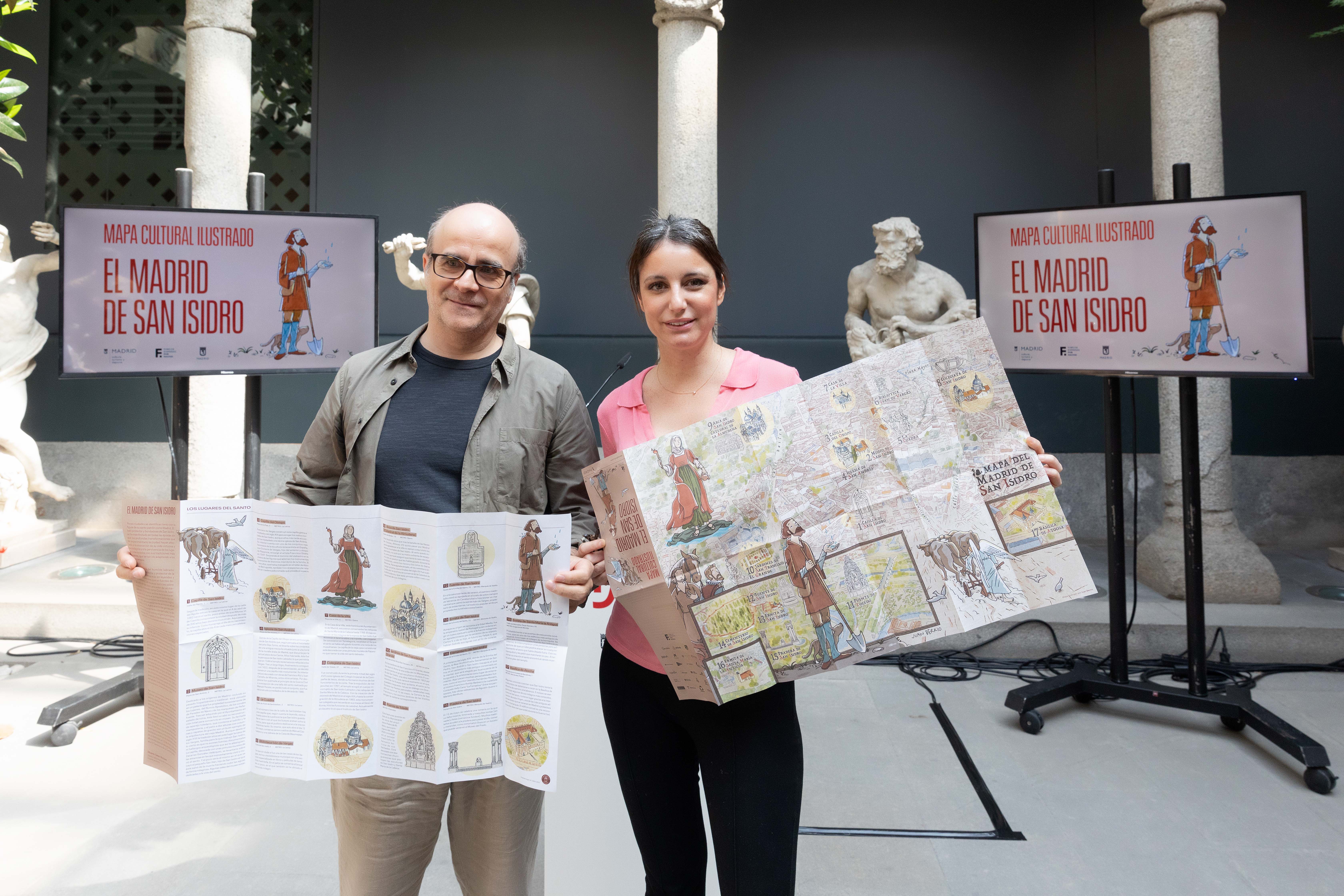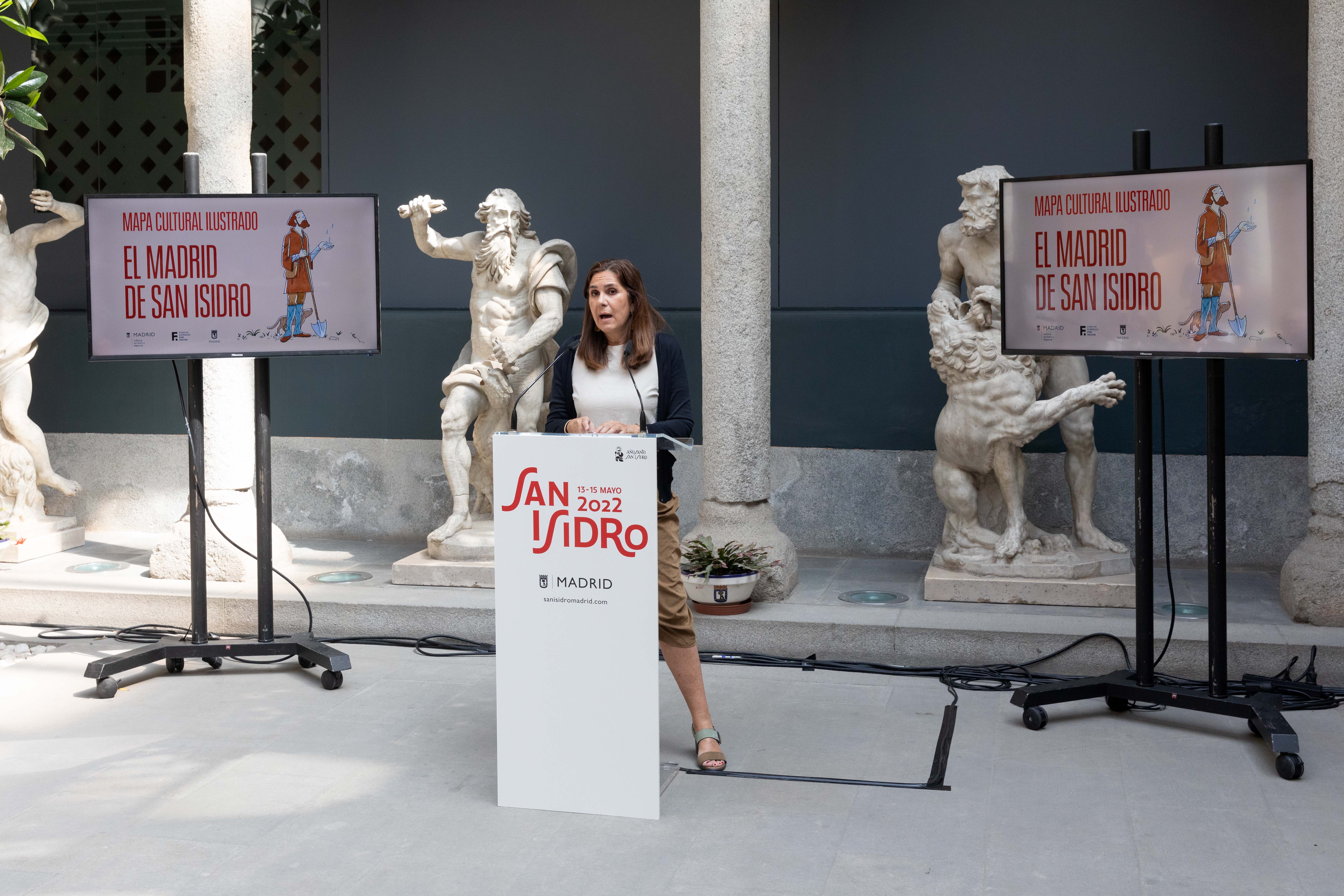 Un nuevo ejemplar dedicado al patrón de Madrid se suma a la colección de mapas ilustrados impulsada por el Ayuntamiento, en colaboración con el Foro de Empresas por Madrid. La delegada del Área de Cultura, Turismo y Deporte, Andrea Levy, junto al director del Museo de San Isidro, Eduardo Salas, y la vicepresidenta segunda del Foro de Empresas por Madrid, Pilar Suárez-Inclán, ha presentado hoy esta publicación que, bajo el título El Madrid de San Isidro, ofrece una aproximación a la figura del santo coincidiendo con la celebración este 2022 del IV centenario de su canonización.
