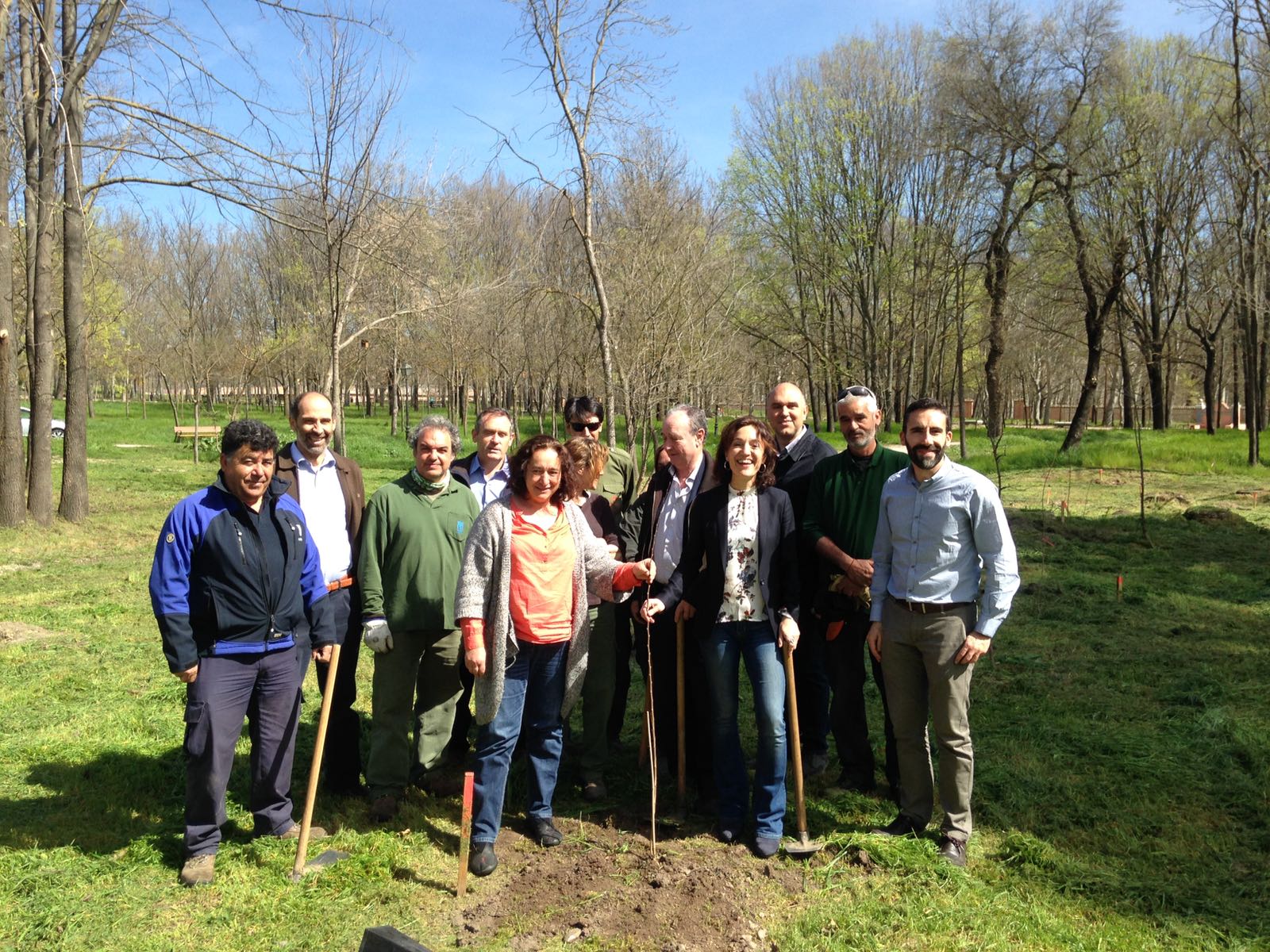 La directora de Agua y Zonas Verdes del Ayuntamiento de Madrid, Beatriz García San Gabino, ha asistido esta mañana, junto al subdirector adjunto de Silvicultura y Montes del Ministerio de Agricultura y Pesca, Alimentación y Medio Ambiente, Guillermo Fernández, al inicio de la plantación de estos olmos que se está realizando en el Bosque del Molinero, junto al lago de la Casa de Campo y en los alrededores del mismo.