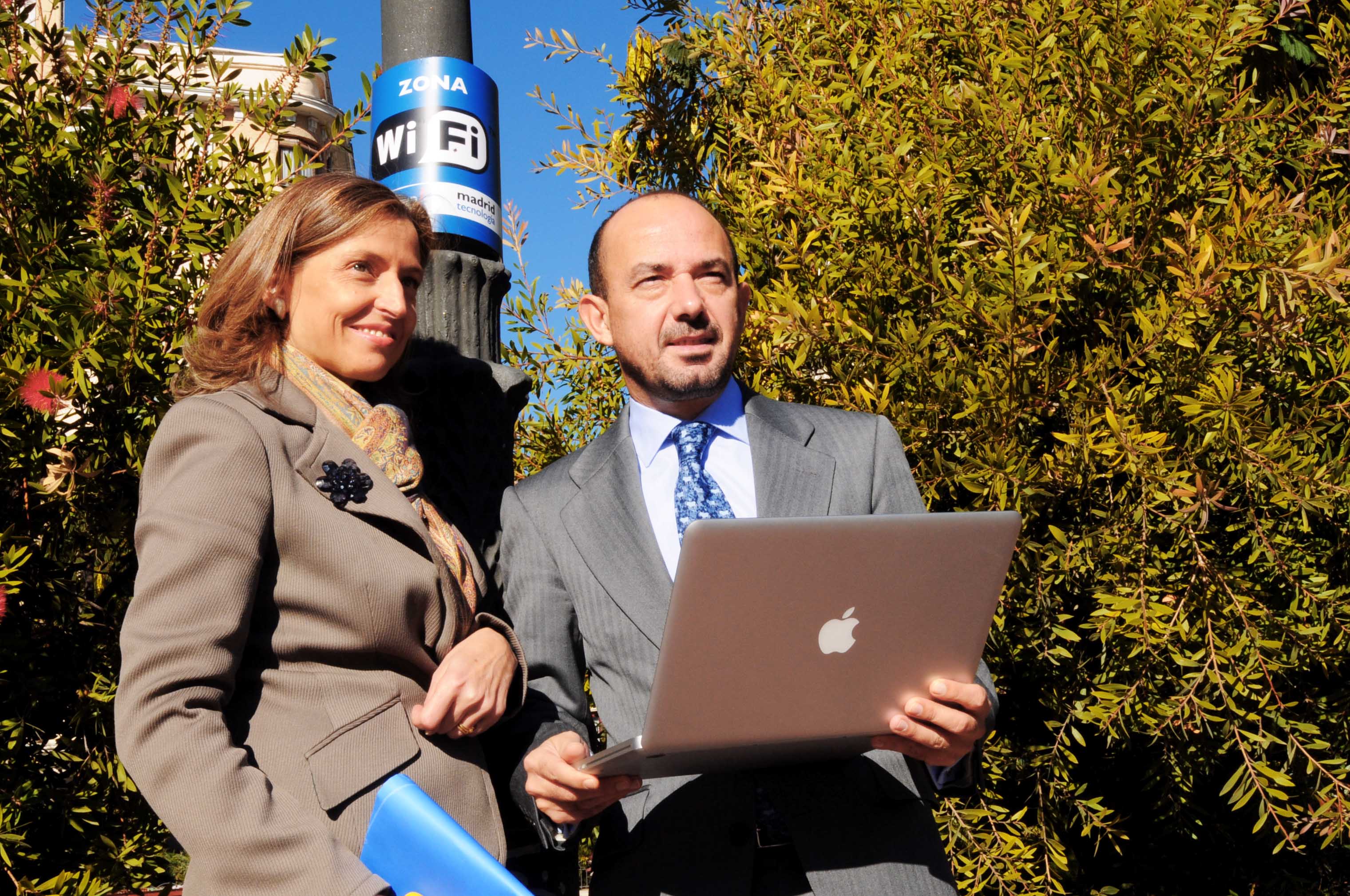 El delegado de Economía, Empleo y Participación Ciudadana, Miguel Ángel Villanueva, acompañado por la concejala de Chamberí, Isabel Martínez-Cubells, ha inaugurado hoy la nueva zona wifi del la plaza de Olavide, una iniciativa puesta en marcha por el Ayuntamiento para promocionar la economía, el comercio y el turismo de la zona