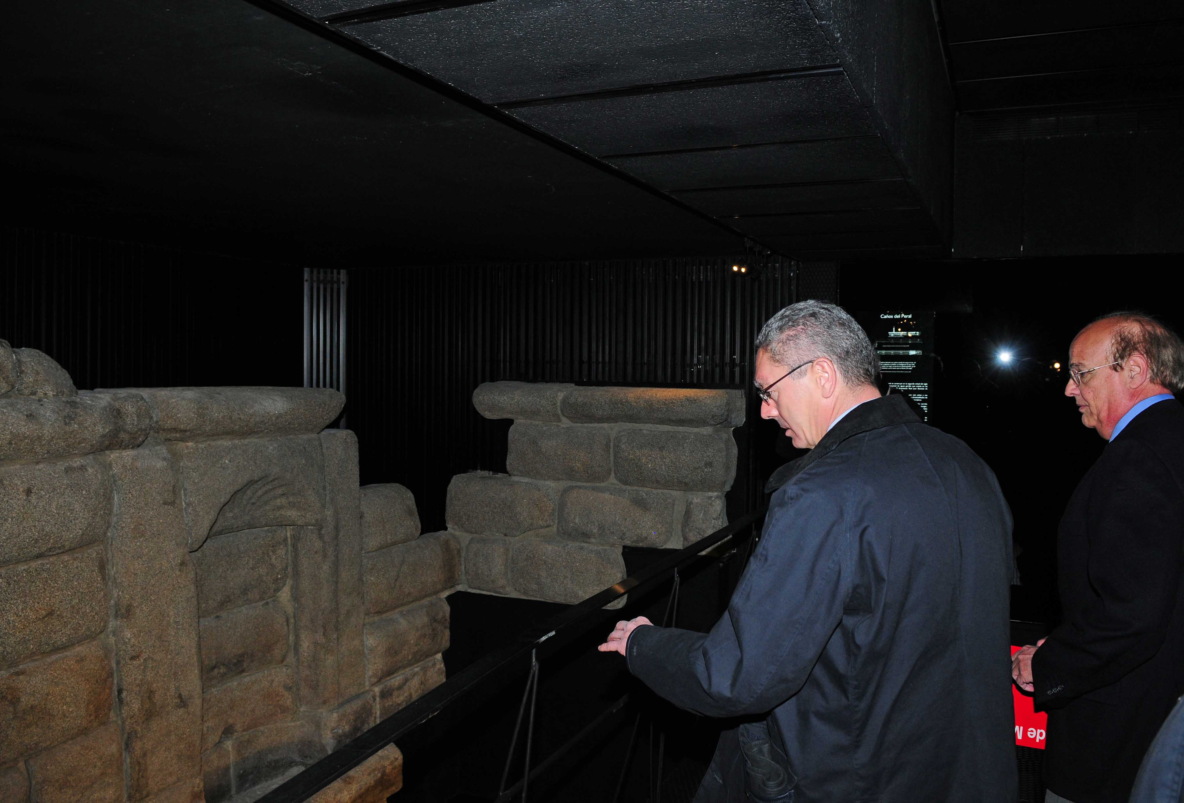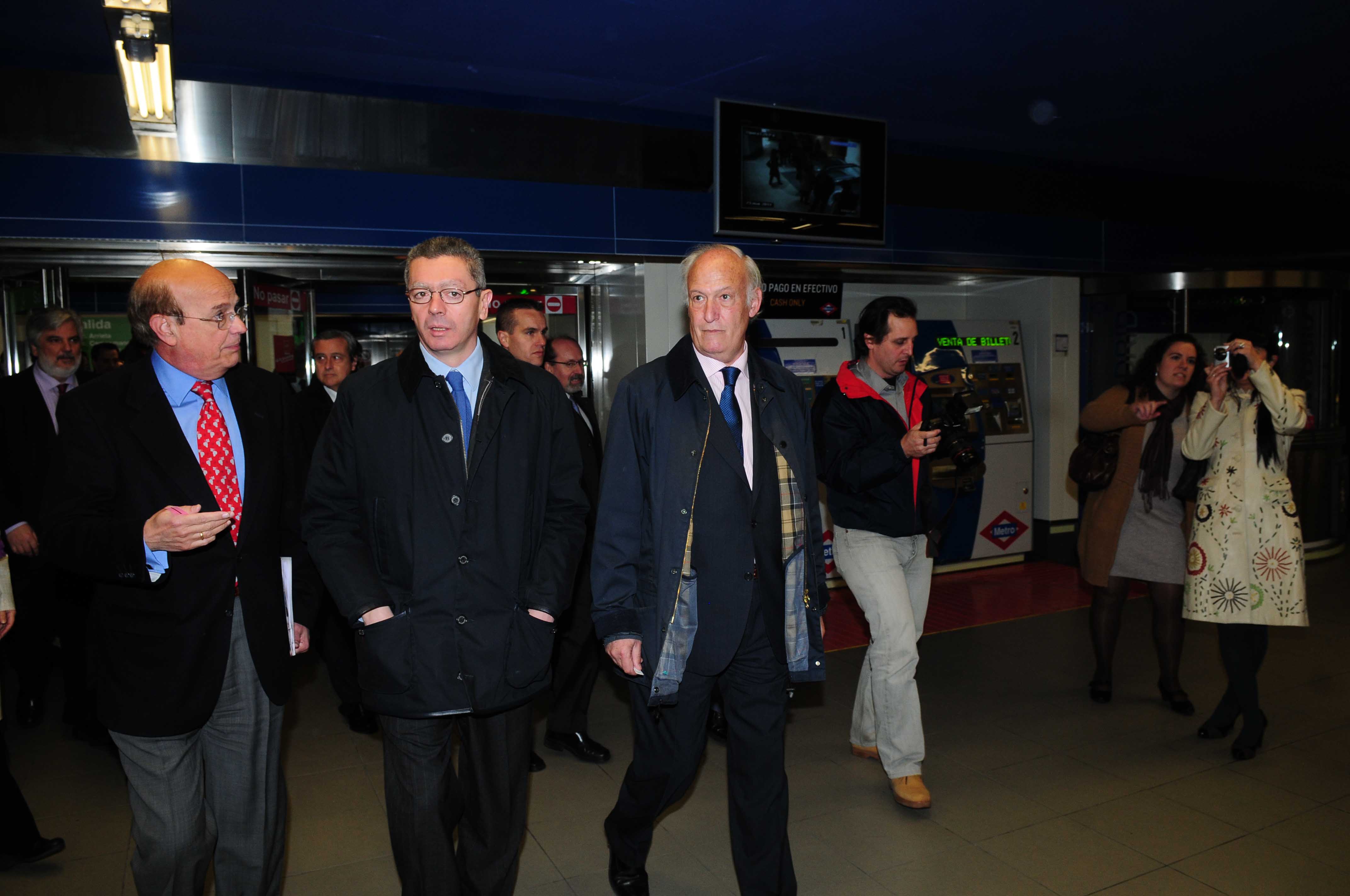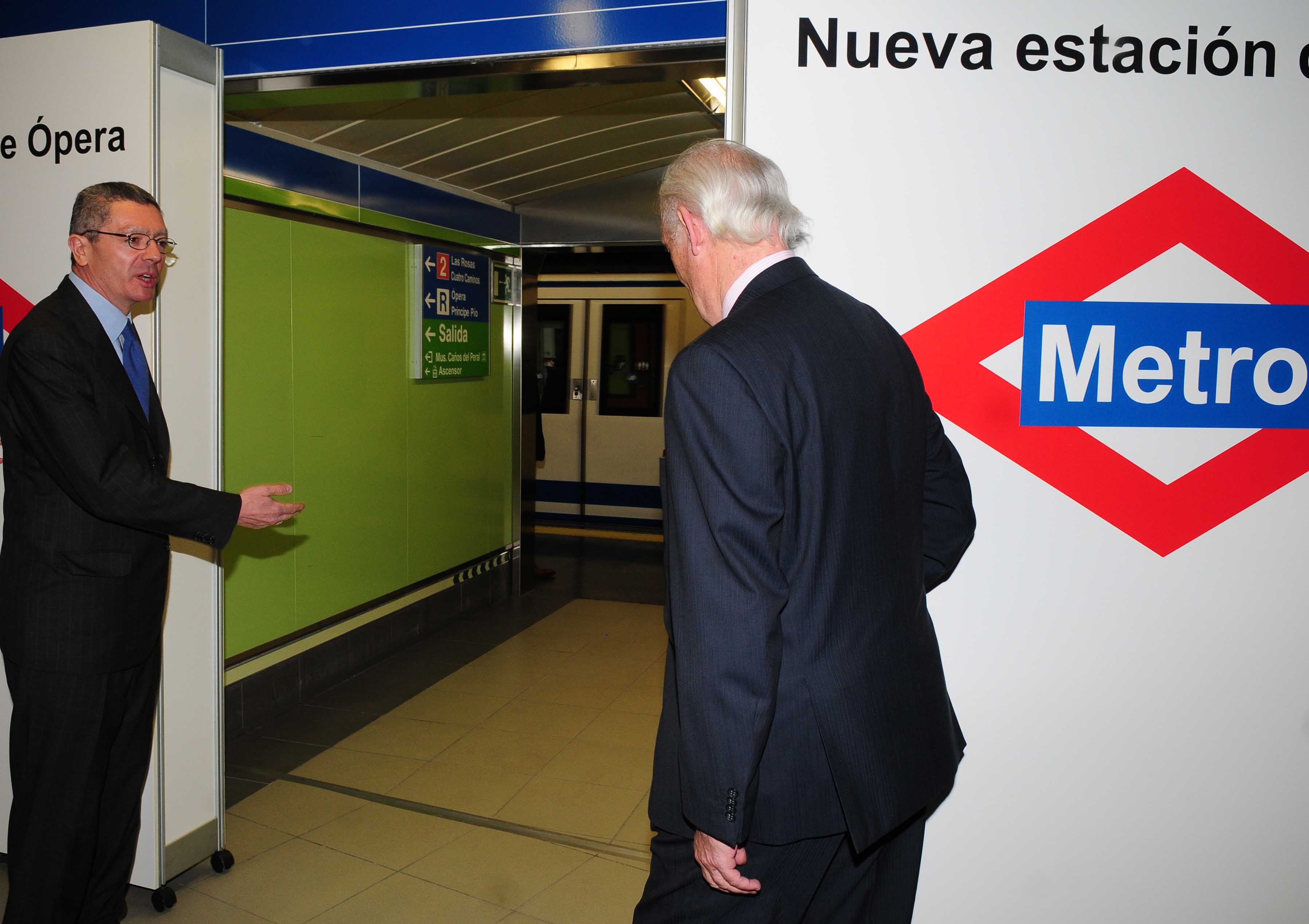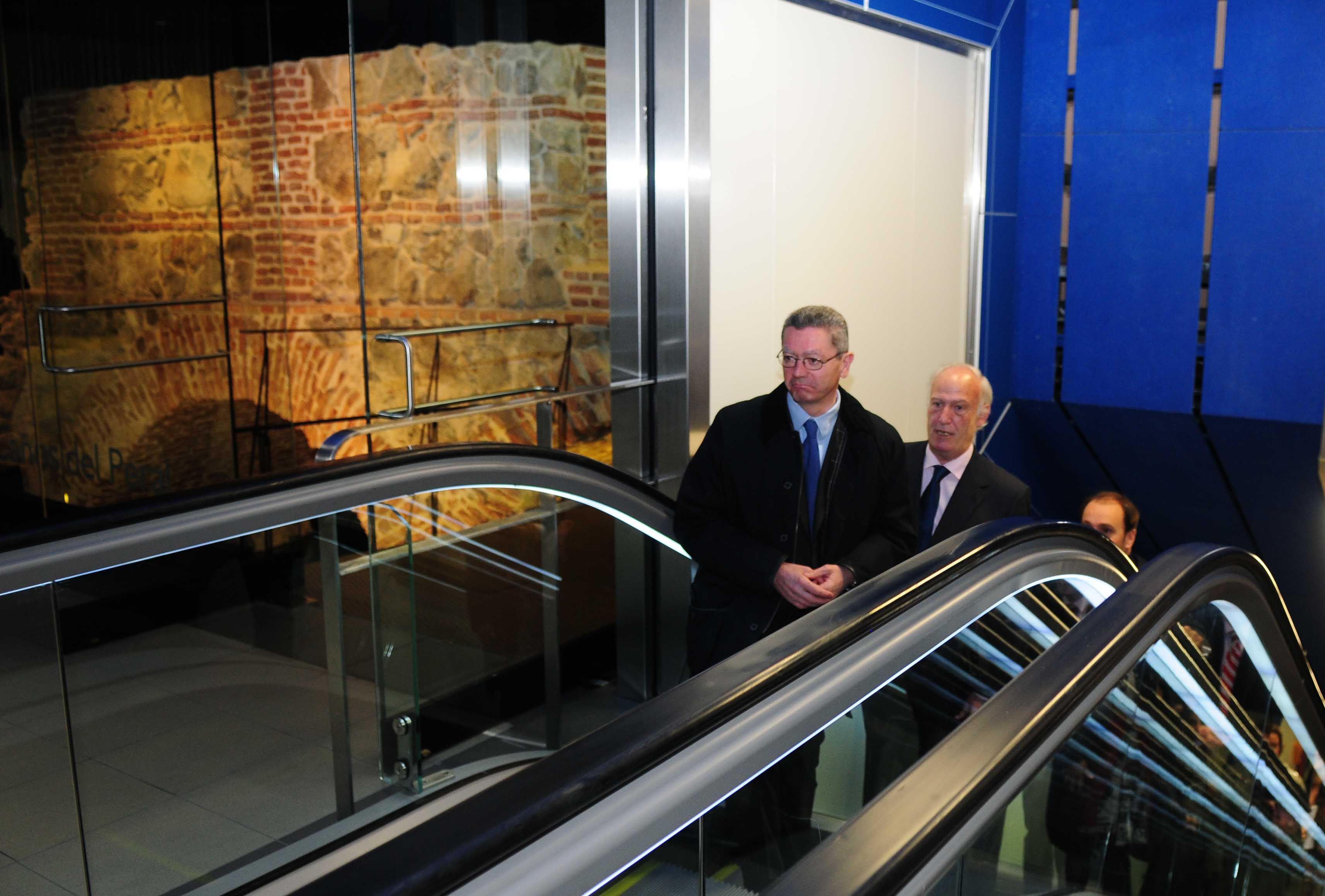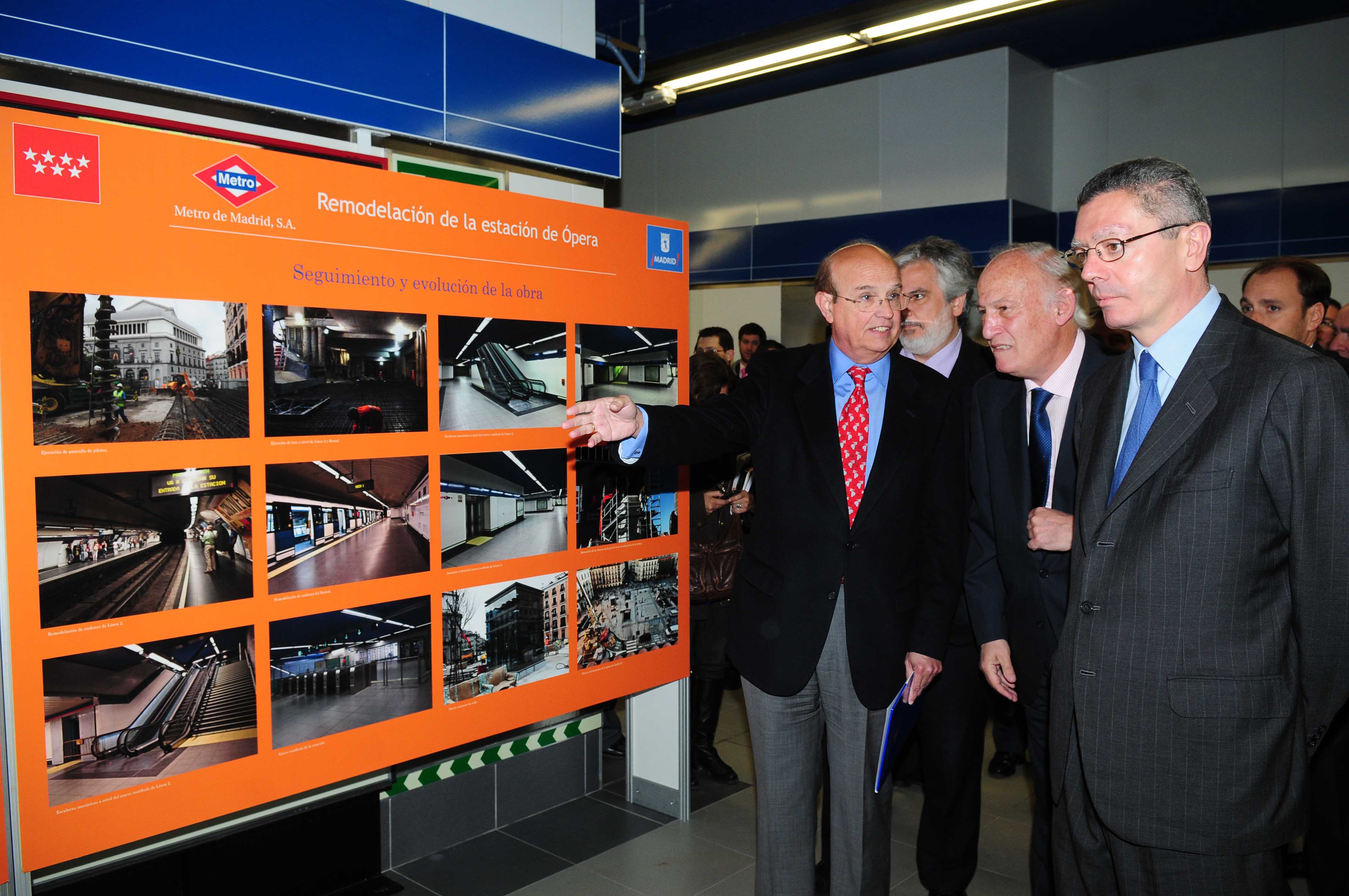 El alcalde de la Ciudad, Alberto Ruiz-Gallardón, y el consejero de Transportes de la Comunidad, José Ignacio Echeverría, han presentado hoy la remodelación de la estación de metro de Ópera y de la plaza de Isabel II. Las imágenes corresponden a distintos momentos de la visita, que ha incluido el nuevo museo -dentro de la propia estación- que preserva el patrimonio arqueológico descubierto en 2009.