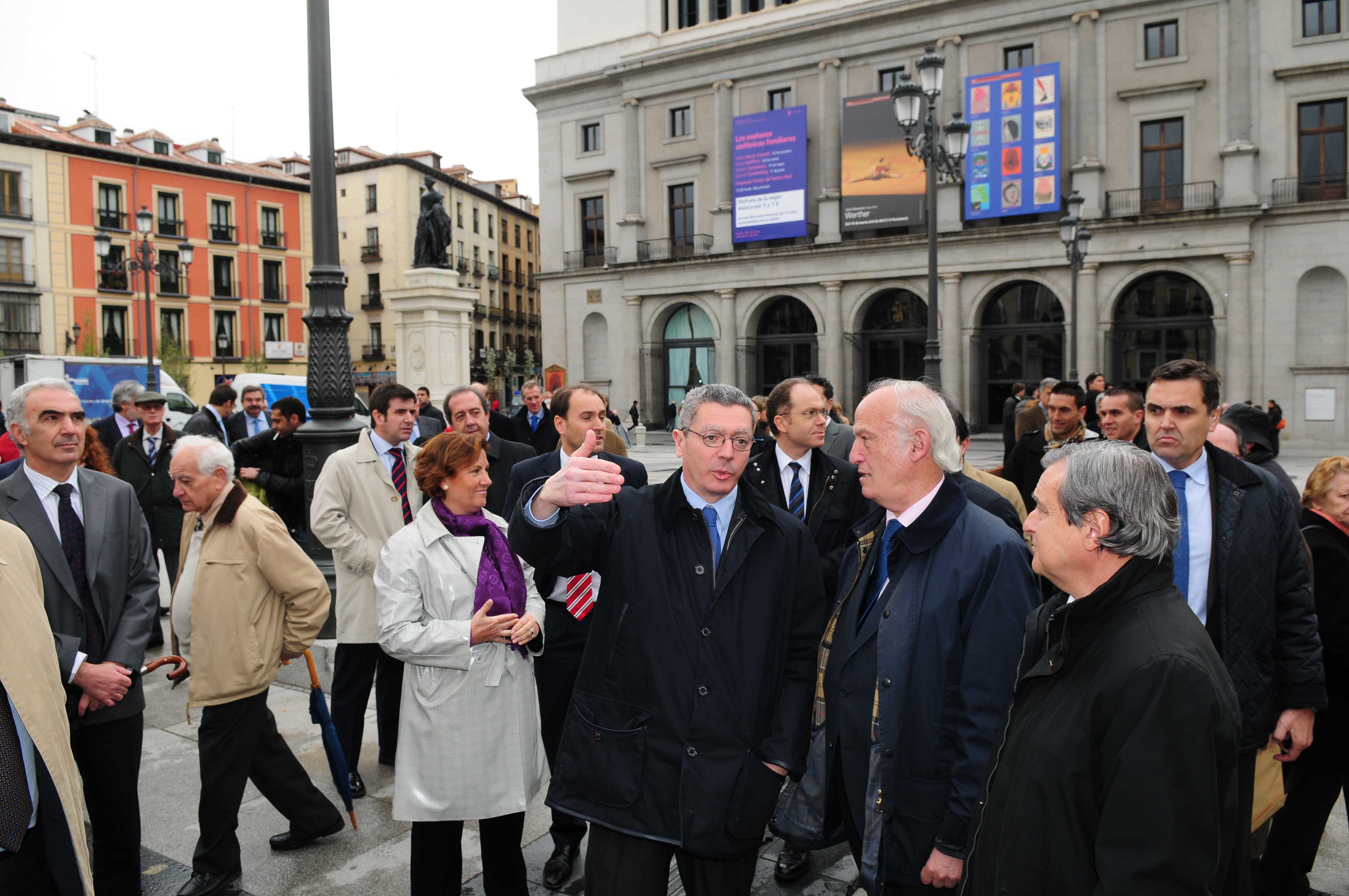 "Hoy, en pleno corazón de la Historia madrileña y española -subrayó Ruiz-Gallardón- en esta plaza presidida por la restaurada estatua de Isabel II, culmina una gran reforma urbana que en los últimos ocho años ha trazado un eje peatonal de 3 kilómetros". Nace en Quevedo, sigue por Fuencarral, baja por Montera, continúa por Sol, Arenal y cruzando esta plaza, llega a la de Oriente.