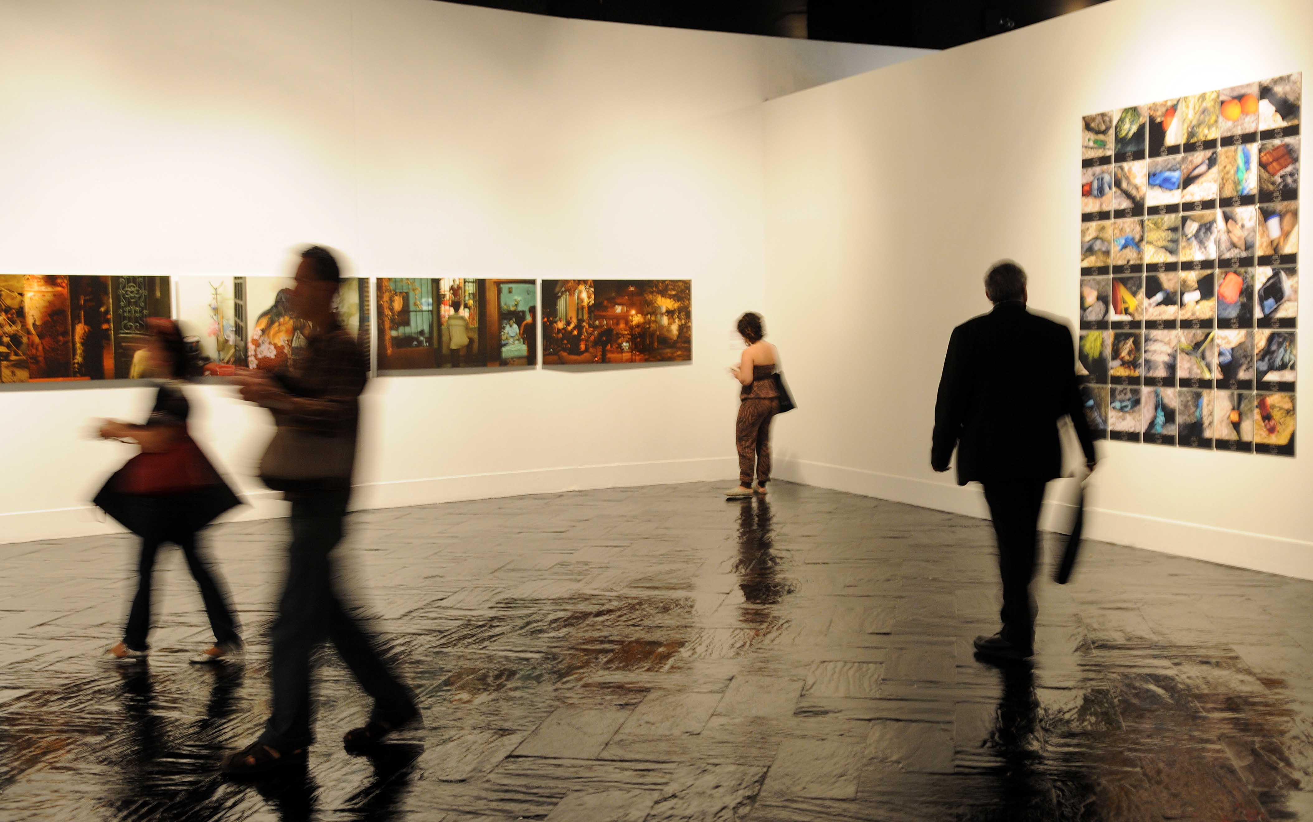 El delegado de las Artes, Fernando Villalonga, durante la inauguración de las exposiciones de PhotoEspaña que el teatro Fernán Gómez acogerá hasta el próximo día 22 de julio.