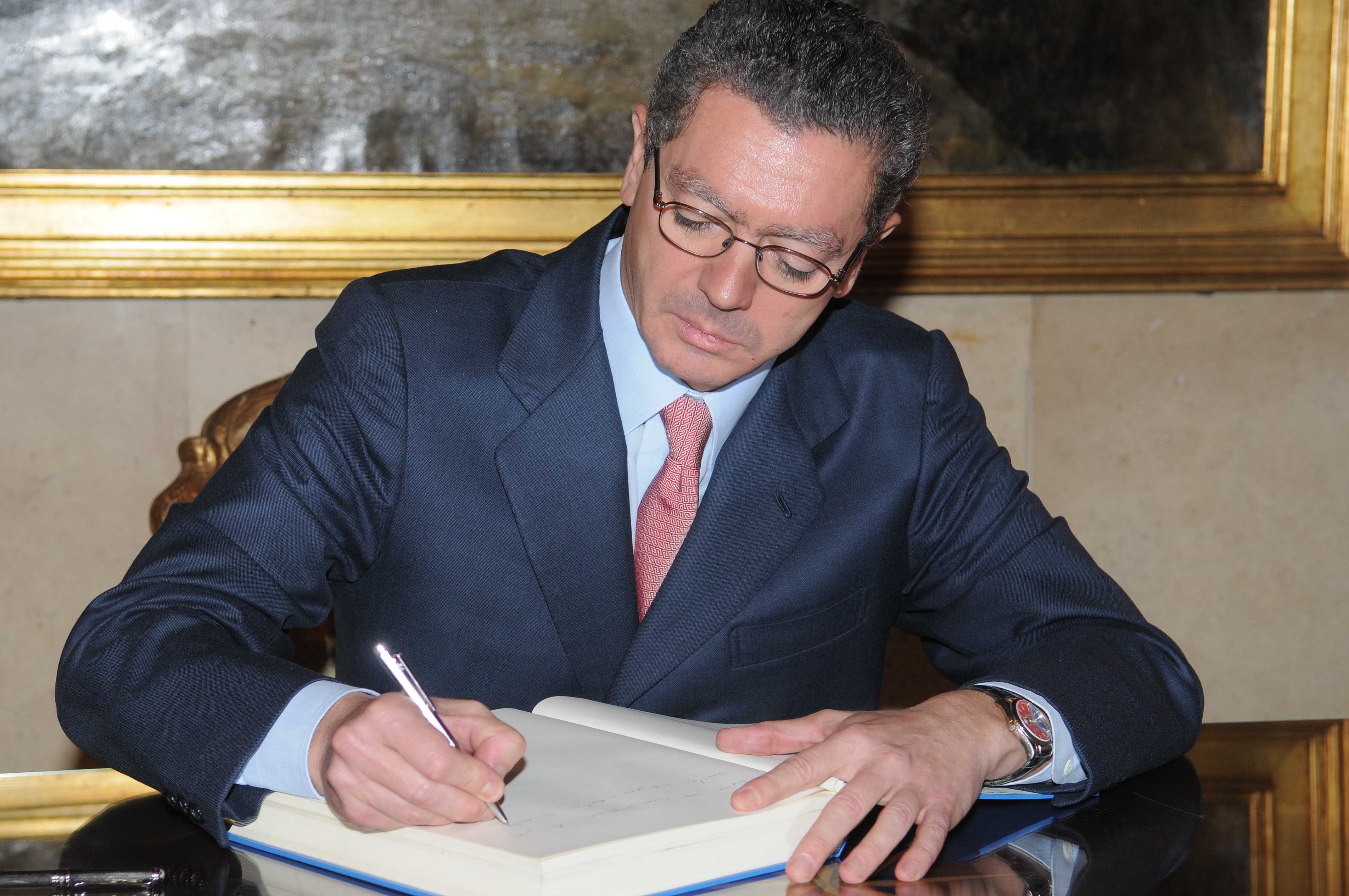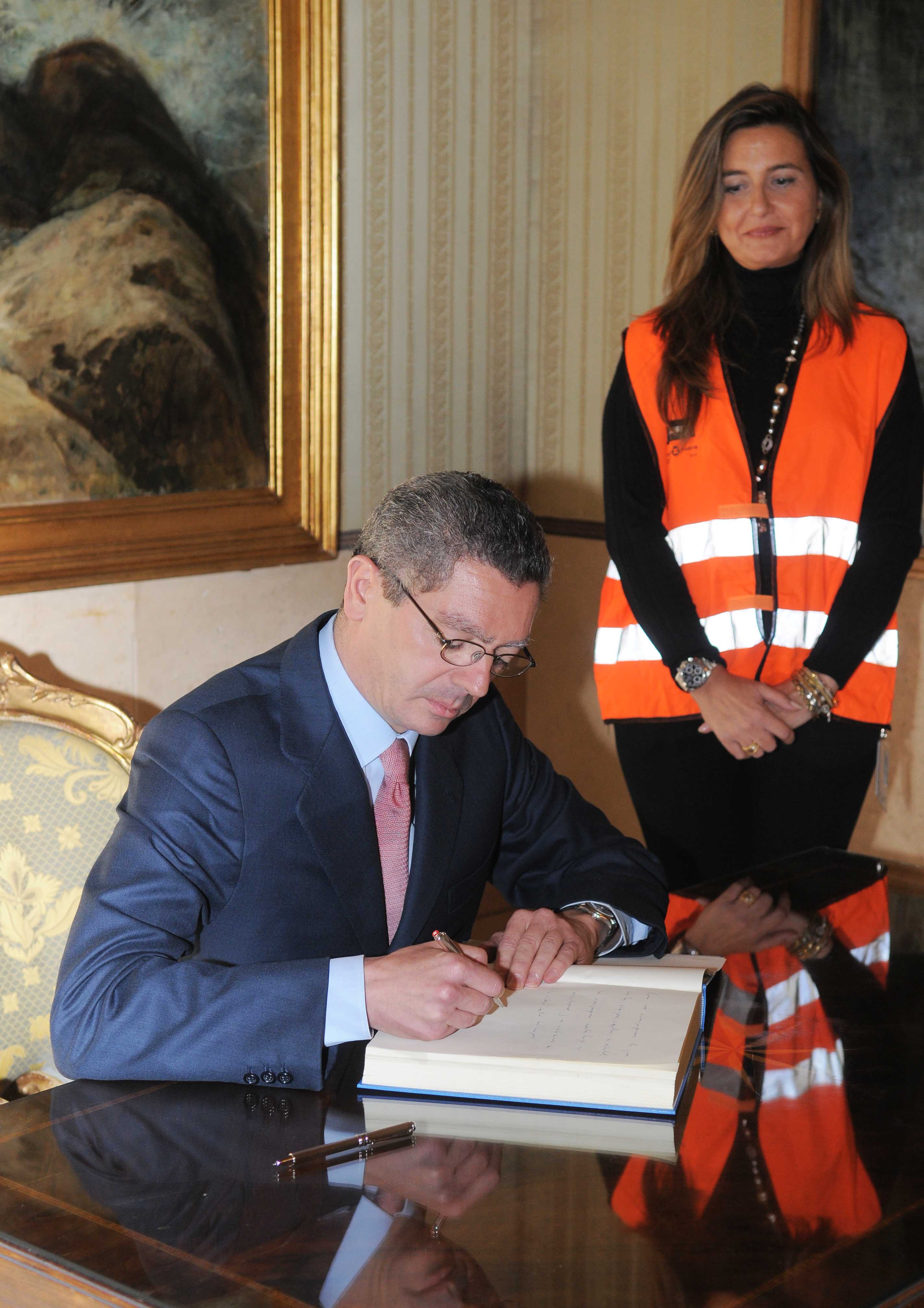 El alcalde, Alberto Ruiz-Gallardón, y la delegada de Familia y Servicios Sociales, Concepción Dancausa, firman en el Libro de Palabras contra la Violencia de Género