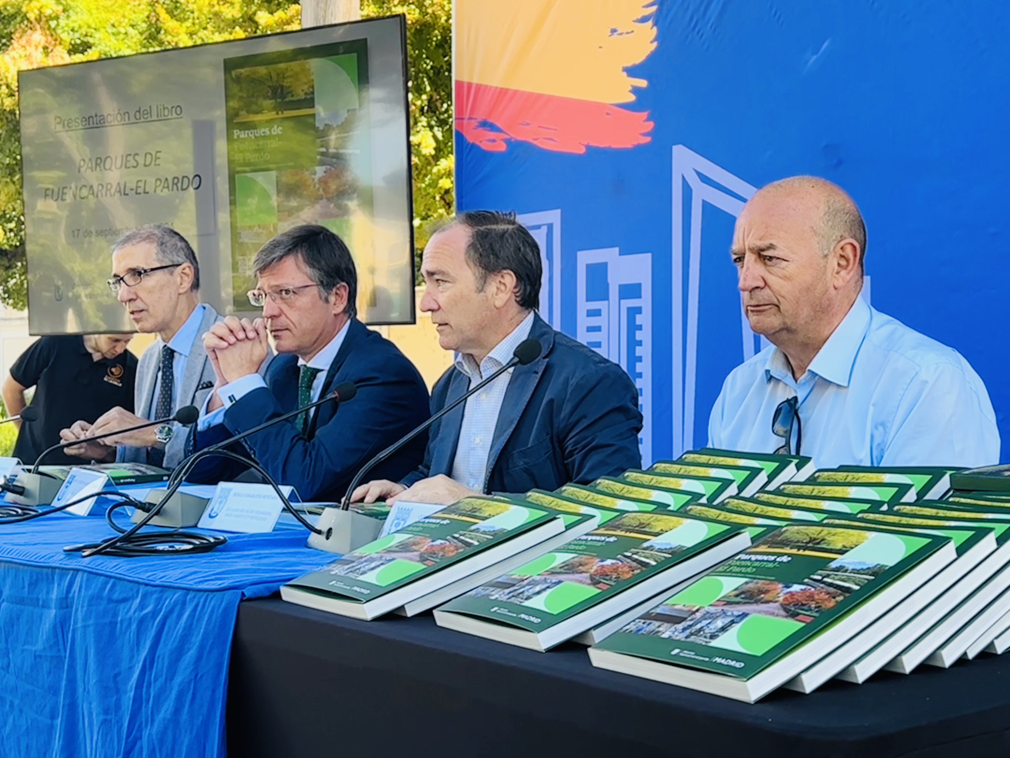 El delegado de Urbanismo, Medio Ambiente y Movilidad, Borja Carabante, y el concejal de Fuencarral-El Pardo y concejal delegado de Limpieza y Zonas Verdes, José Antonio Martínez Páramo, han participado en la presentación del libro Parques de Fuencarral-El Pardo, junto con sus autores, Antonio Morcillo San Juan, subdirector general de Parques y Viveros, y Arturo Muñoz Catalán, personal de la Dirección General de Gestión del Agua y Zonas Verdes del Ayuntamiento de Madrid. La obra, editada por el Ayuntamiento de Madrid, es un compendio que acerca a todos los madrileños el rico patrimonio de zonas verdes municipales del distrito.
