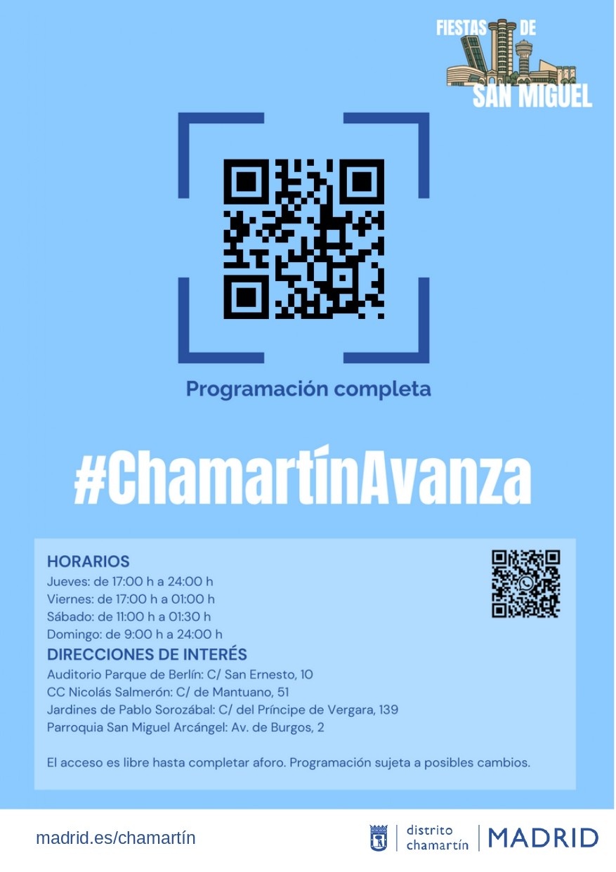 San Miguel 2025 incluye también un gran número de propuestas familiares como un circuito infantil de seguridad vial, espectáculos circenses y de magia, una disco infantil, un escape room ambientado en un laboratorio científico y la habitual fiesta de la espuma, que se tendrá lugar el sábado 27. El domingo se celebrará el tradicional Concurso de Pintura Rápida, además de actividades como un flash mob,la actuación de jotas de la Casa de Aragón en Madrid y la misa mayor en honor al patrón del distrito en la parroquia de San Miguel de Chamartín.