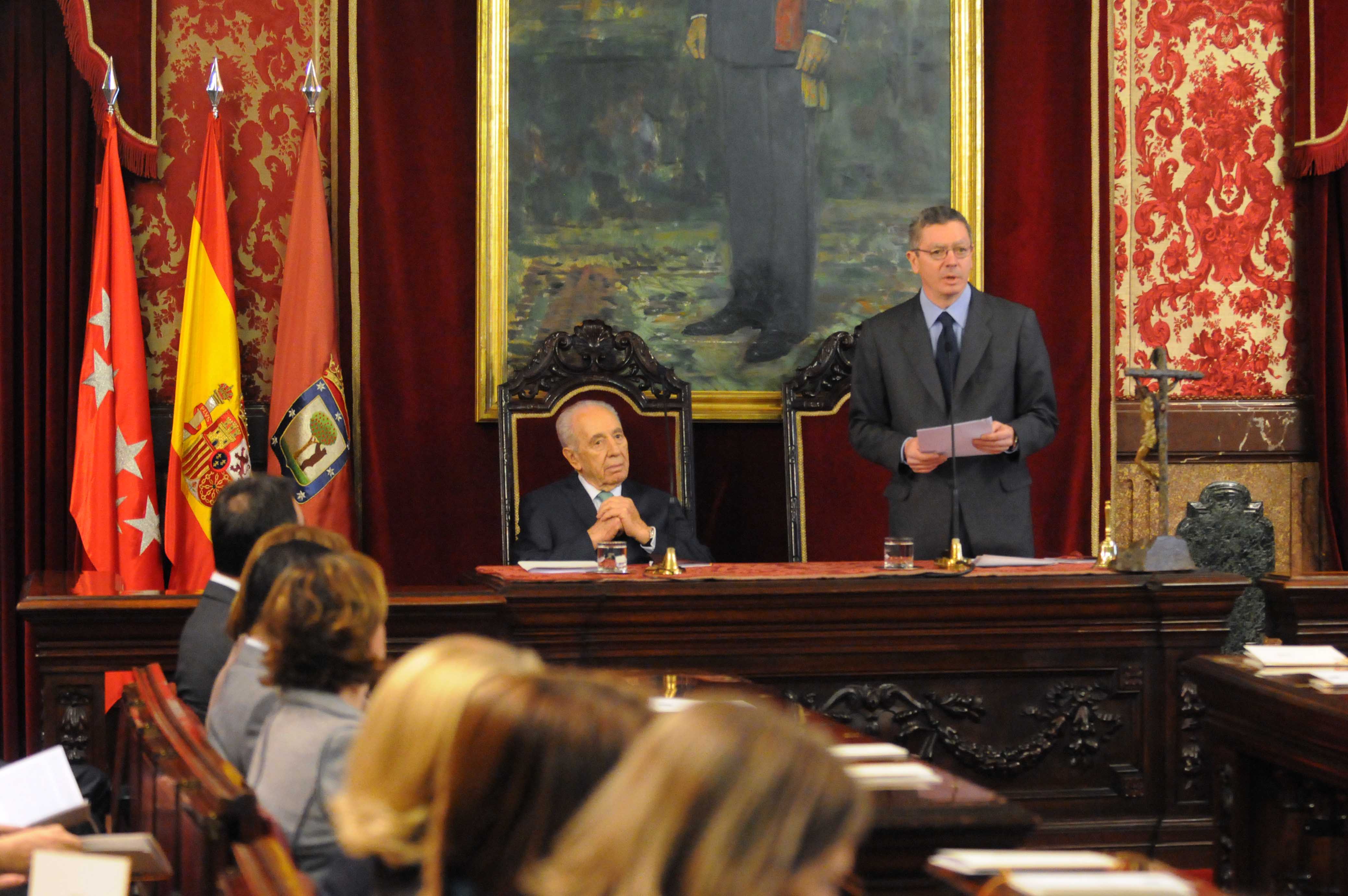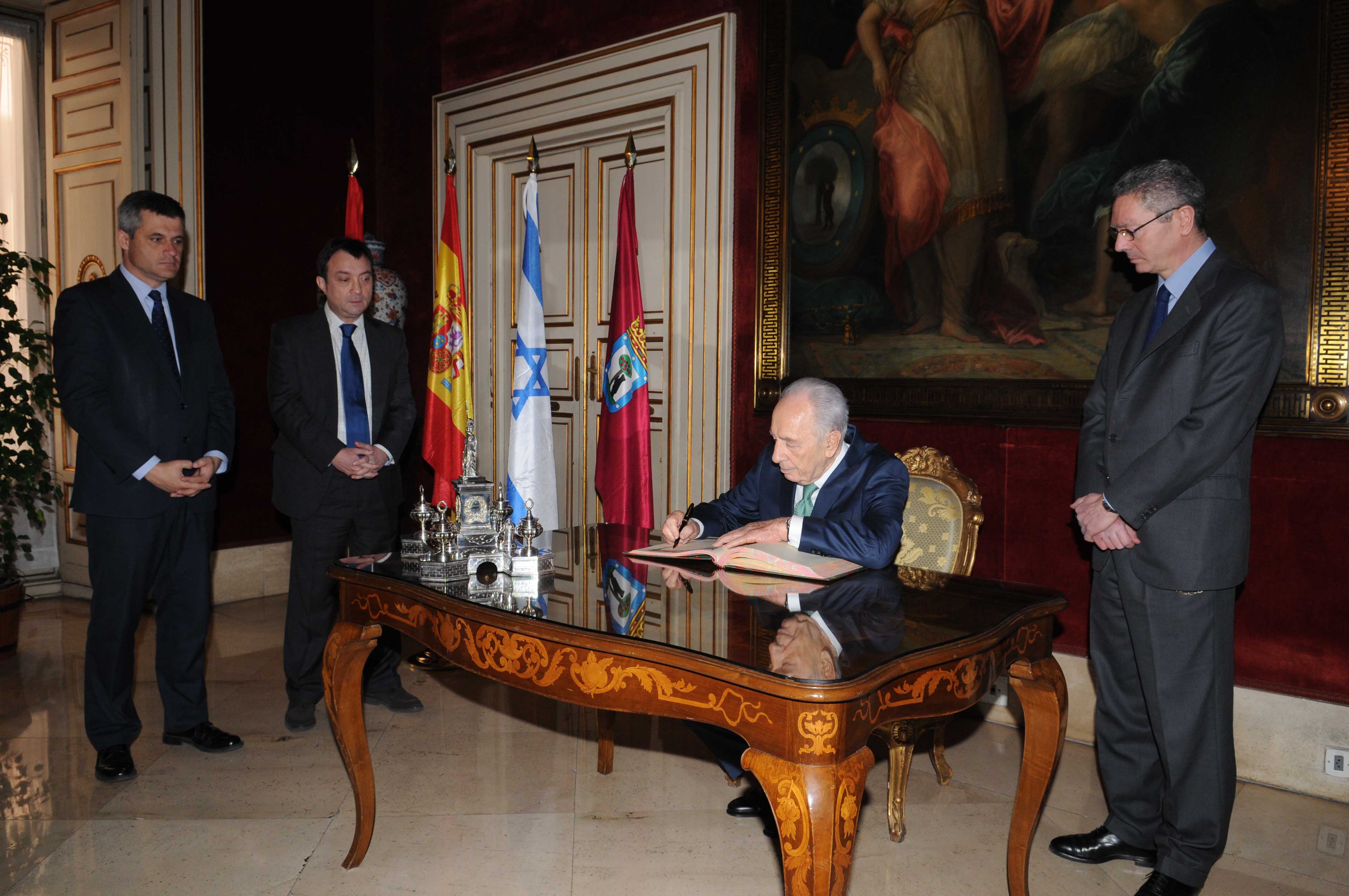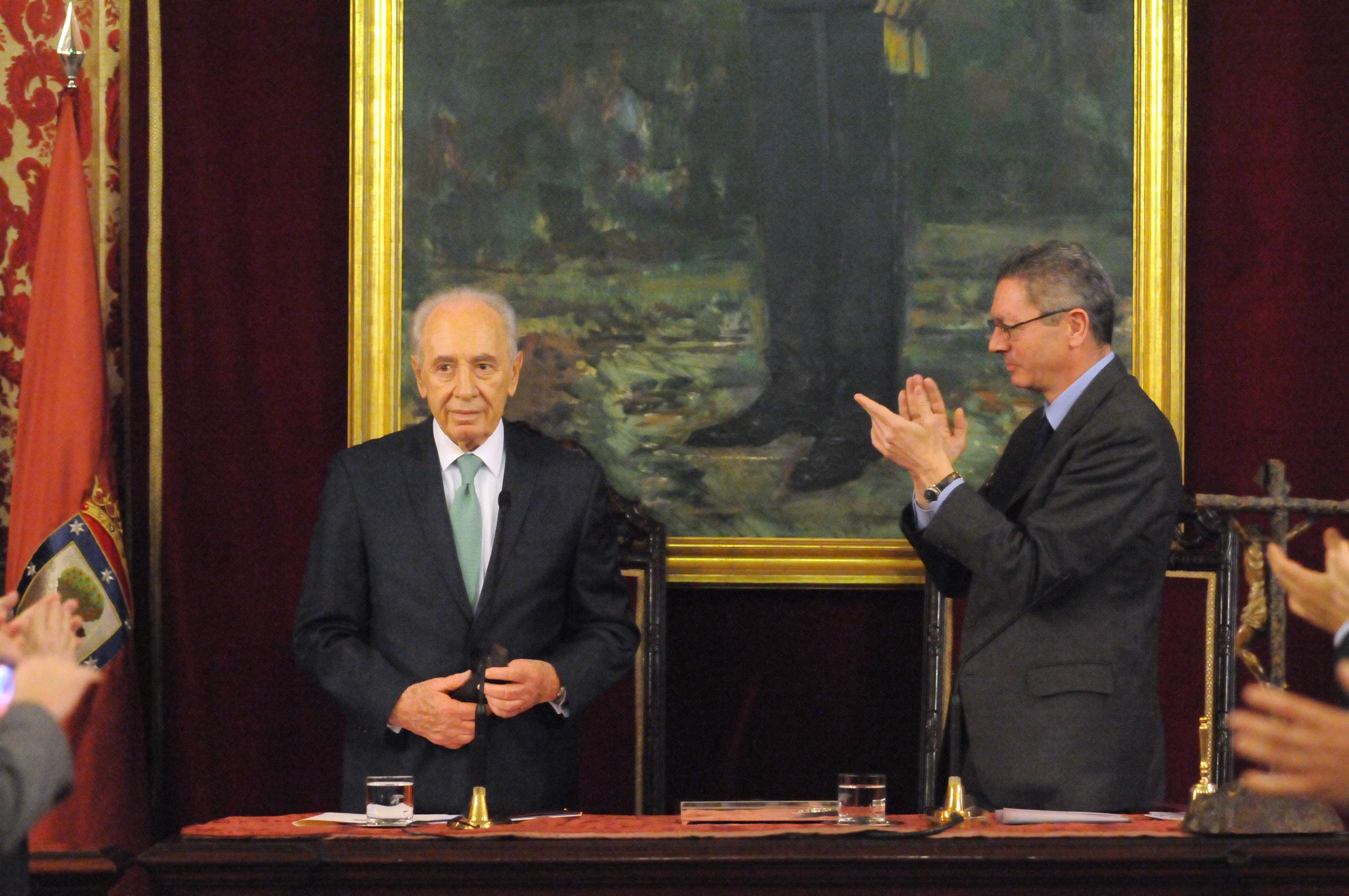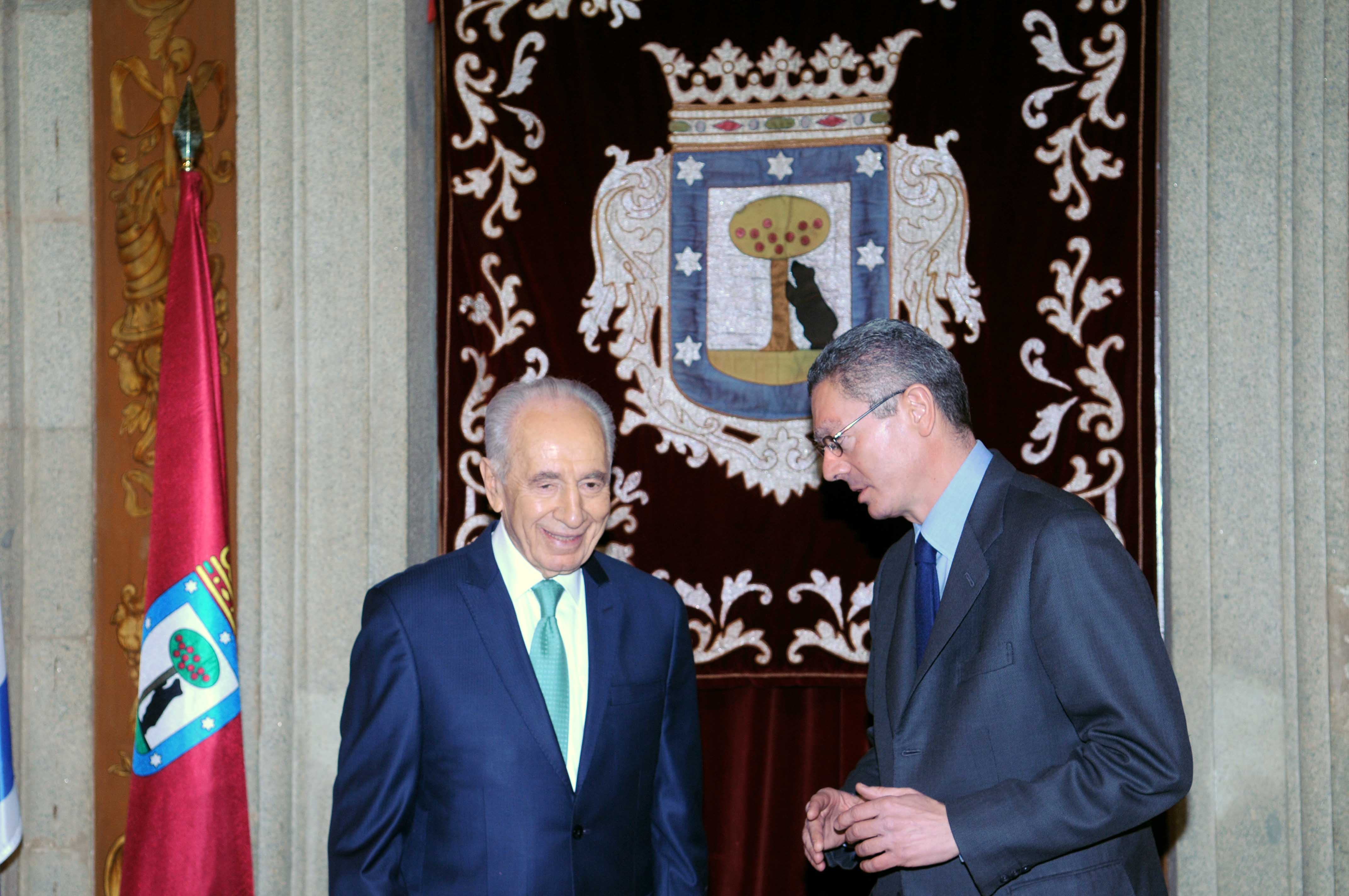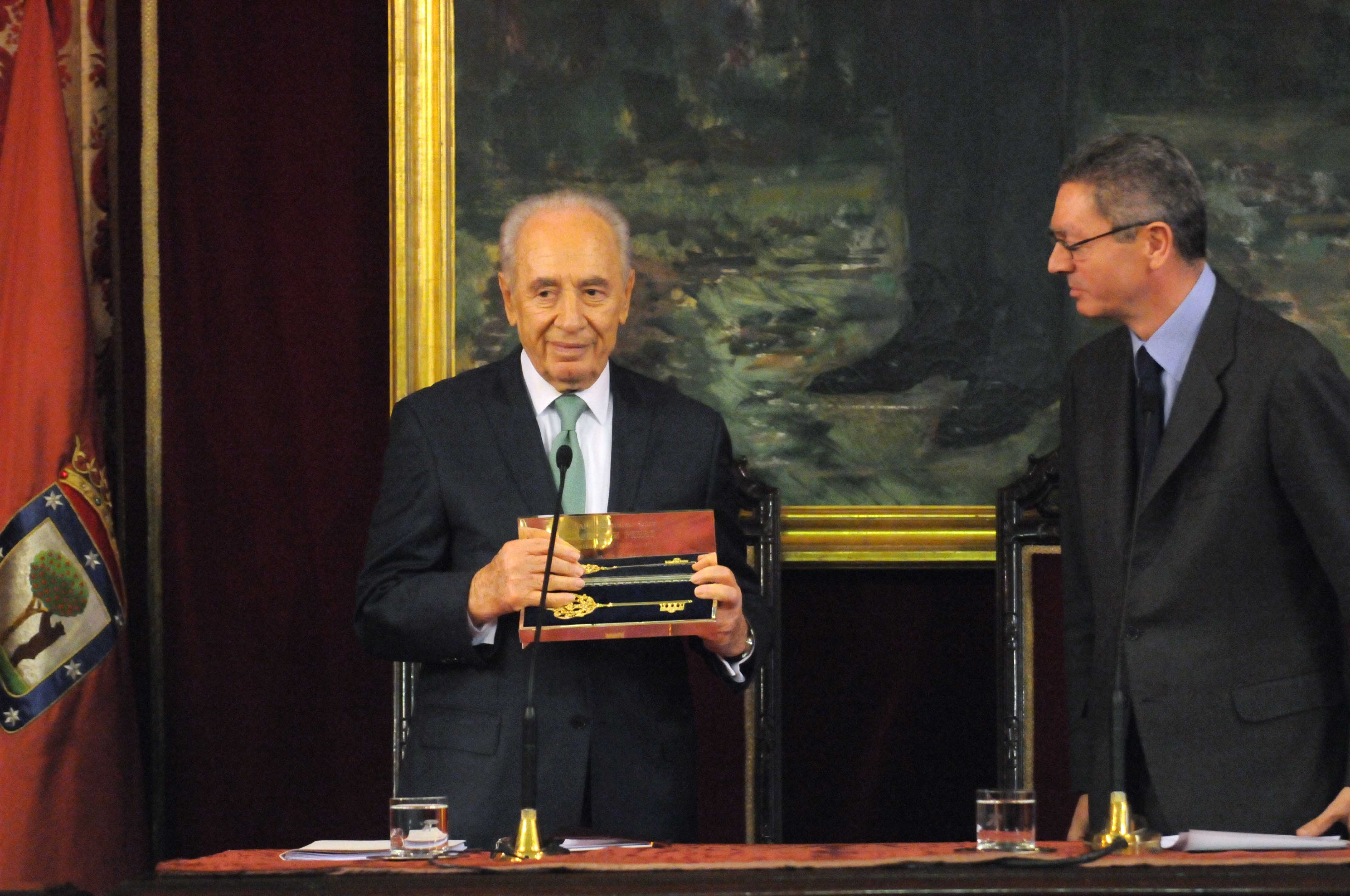 El alcalde de Madrid, Alberto Ruiz-Gallardón ha entregado hoy las Llaves de Oro de la Ciudad de Madrid a Simon Peres, presidente del Estado de Israel, que está de visita en España.