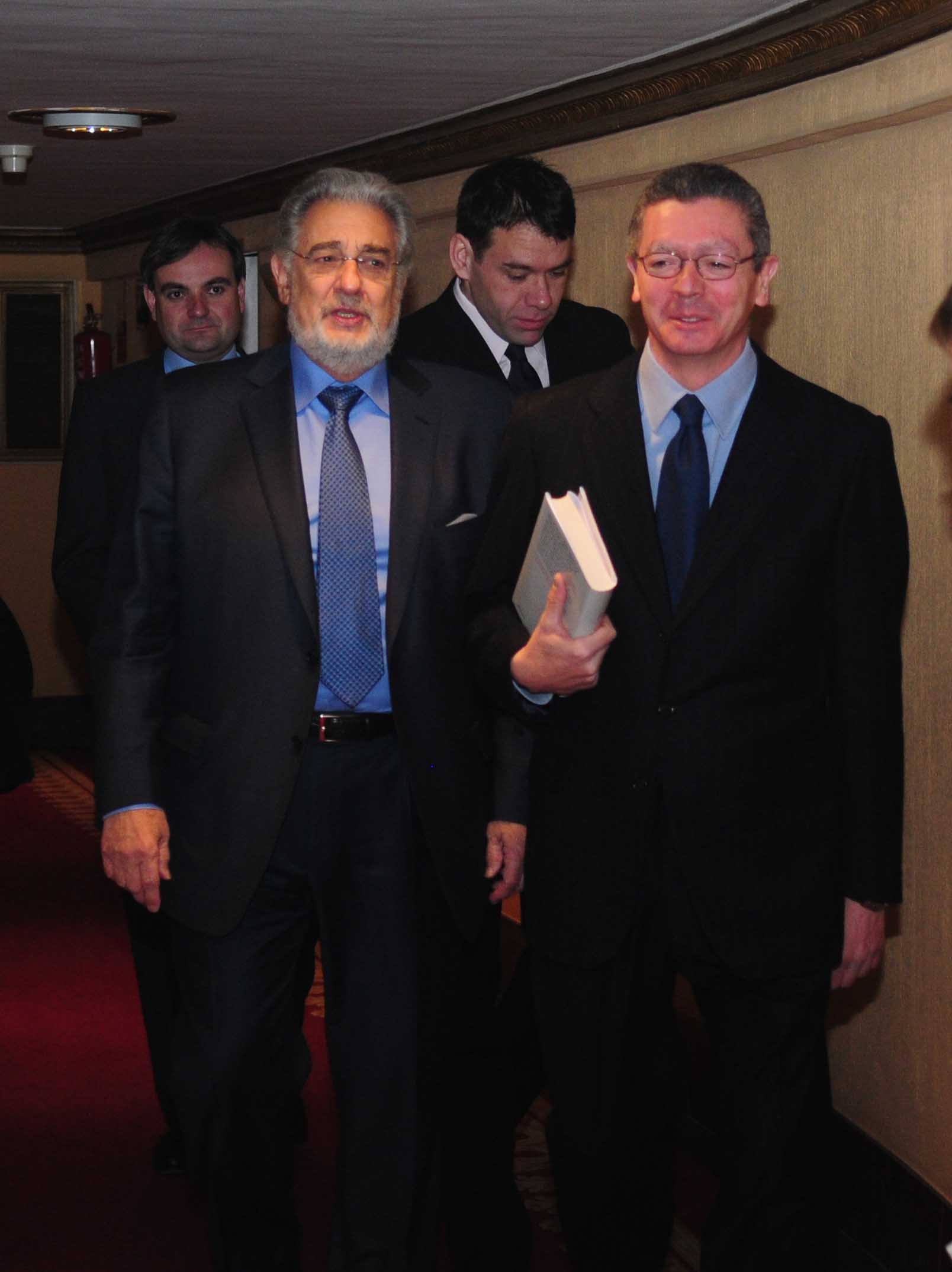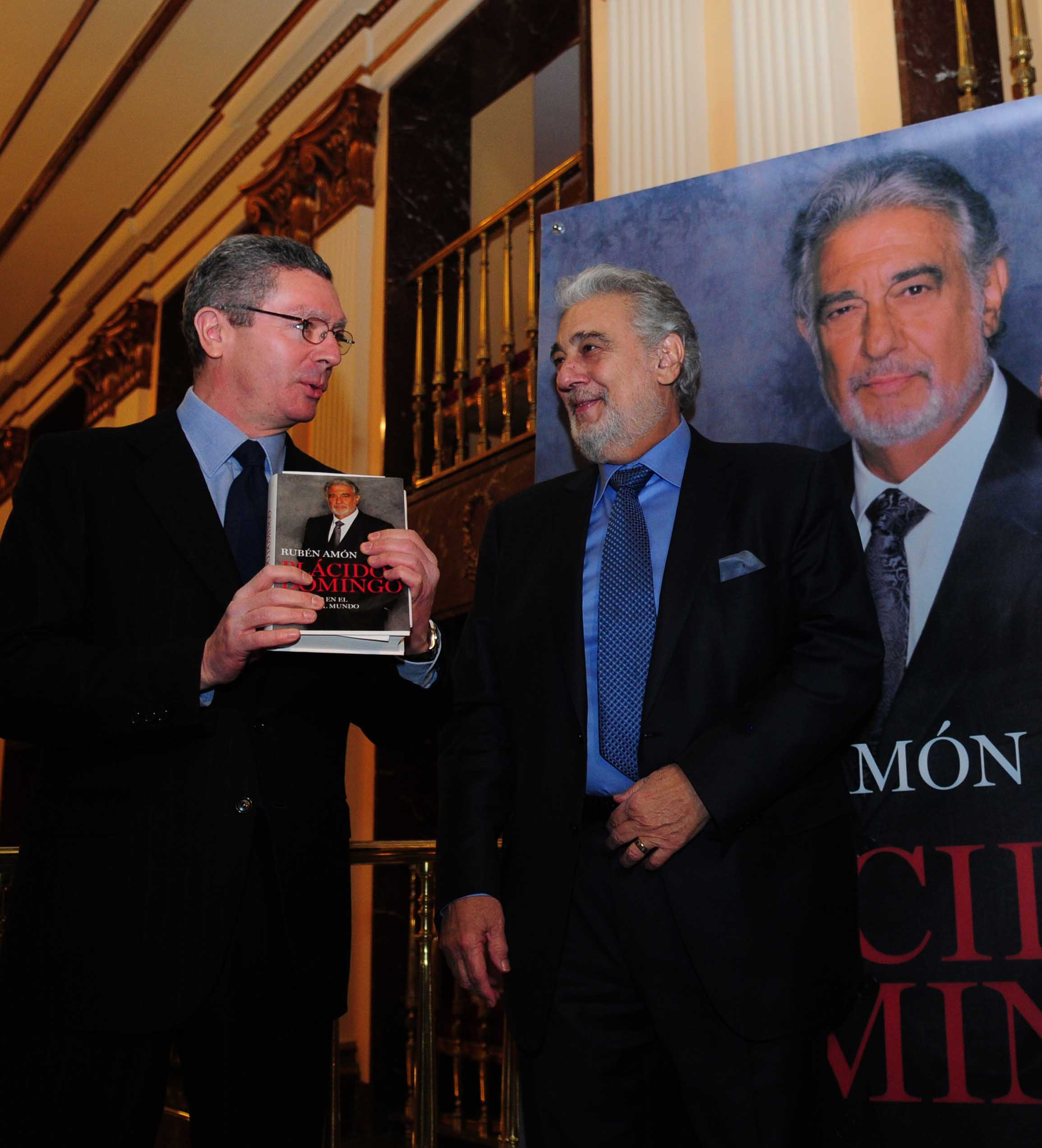 Un peligro acechaba la presentación: administrar los superlativos. "Todos parecen escasos -aseguró Ruiz-Gallardón- pero, por otro lado, hay que impedir que aquel que no le conozca bien, si es que queda alguien, pueda pensar que exageramos". El riesgo lo solventó con una afirmación: "De todas las personalidades que he tratado quizá es la de Plácido Domingo la única de la que con naturalidad puede decirse que es, como reza el título de la obra, un coloso". Todo en la vida del tenor responde al adjetivo de colosal: su obra, su vida, sus logros, su leyenda y, sin embargo, "esa dimensión casi sobrehumana no oculta al hombre cercano que no ha olvidado sus orígenes y permanece atento a sus semejantes. En la mitología clásica sería, técnicamente, un héroe: alguien mitad dios, mitad hombre, sin que acertemos a decir qué parte nos cautiva más".