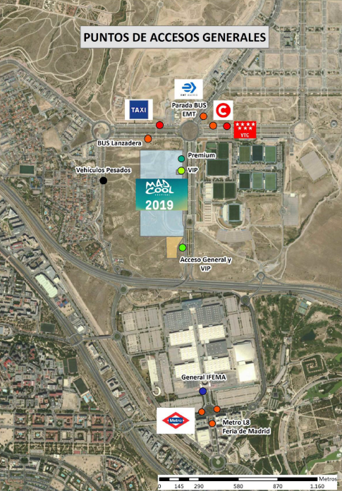 A fin de preservar la movilidad y la seguridad tanto de los asistentes al Festival Mad Cool en Madrid como del resto de usuarios de la vía pública, se encuentra previsto que se realicen los siguientes cortes de tráfico desde aproximadamente el 10 de julio hasta la madrugada del 14 de julio de 2019. Dichos cortes comenzarán, aproximadamente, a partir de las 16 horas y durarán hasta la finalización del evento.