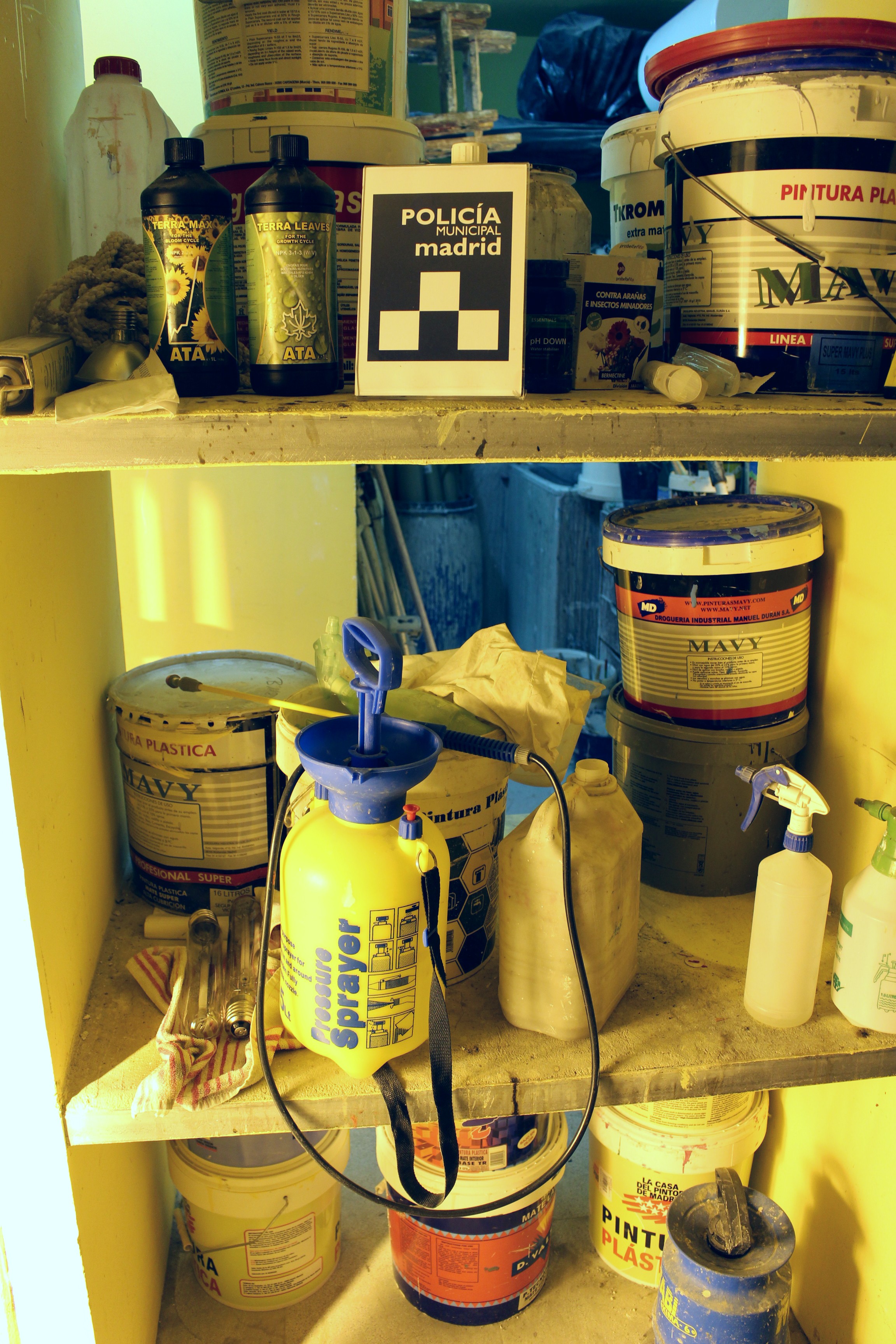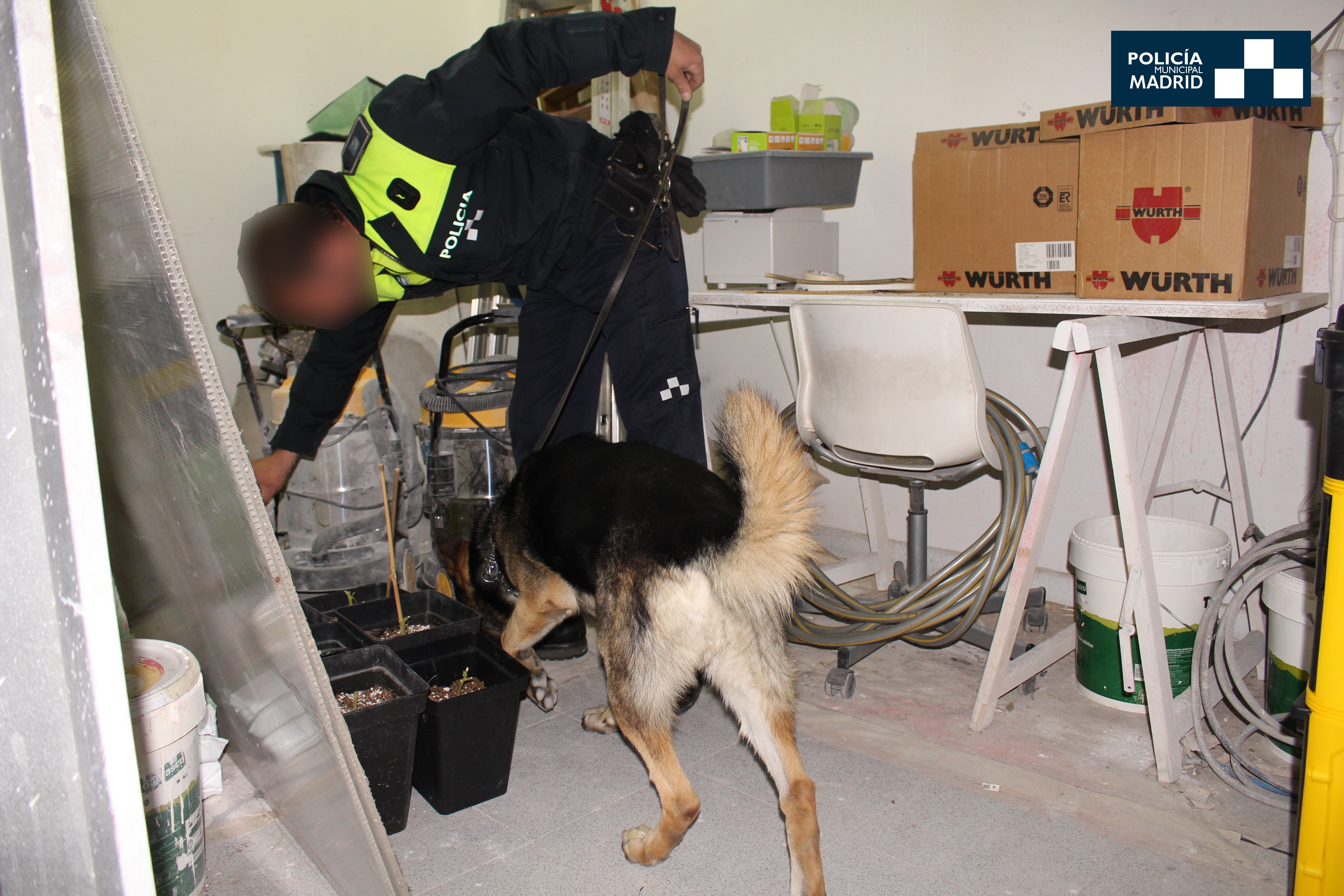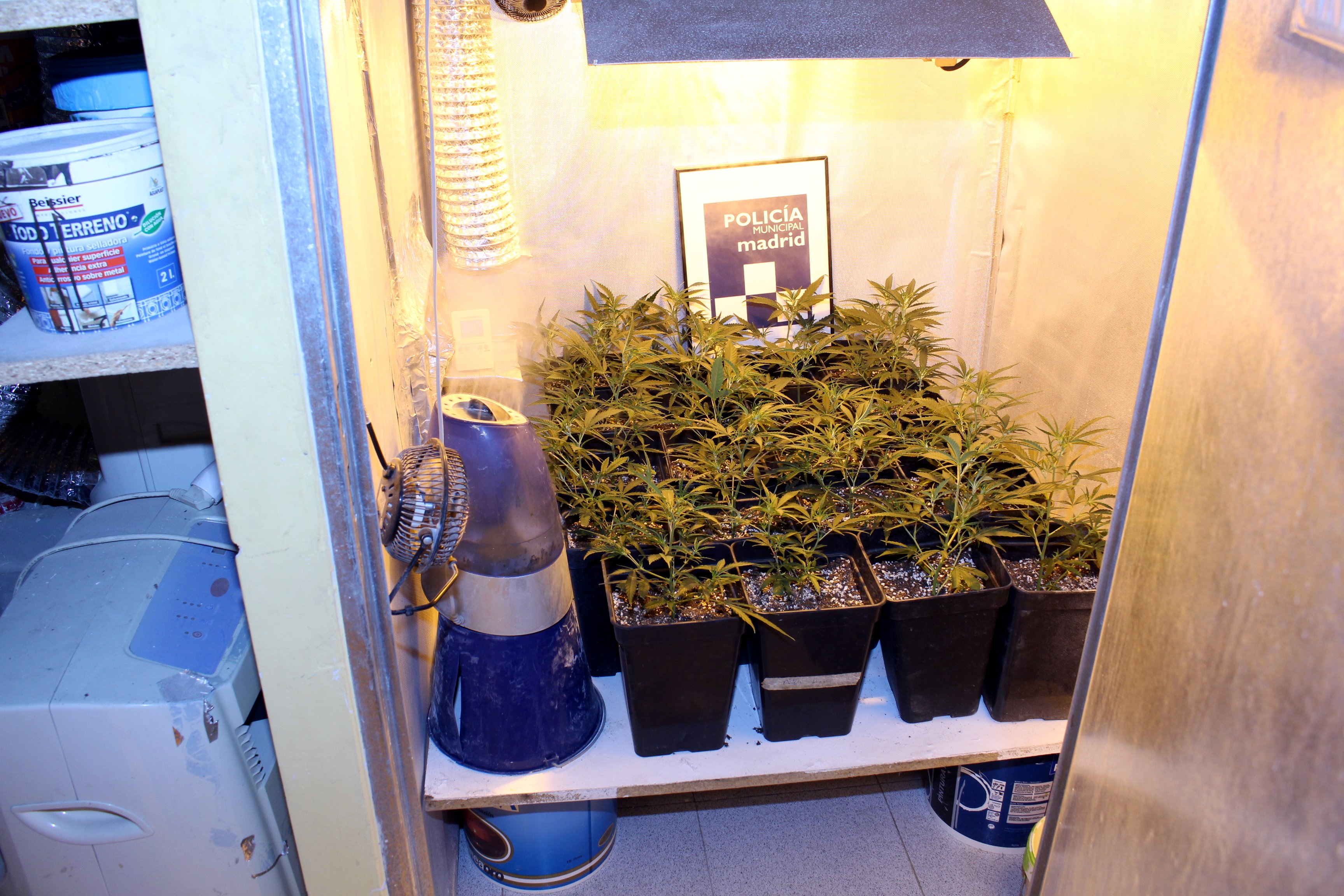 Policía Municipal de Madrid ha desmantelado una plantación de marihuana en un almacén de pintura del distrito Puente de Vallecas. Más de siete kilos decomisados y dos personas detenidas es el balance de esta operación policial, iniciada tras la denuncia de los vecinos, que se quejaban de los fuertes olores que salían del local.