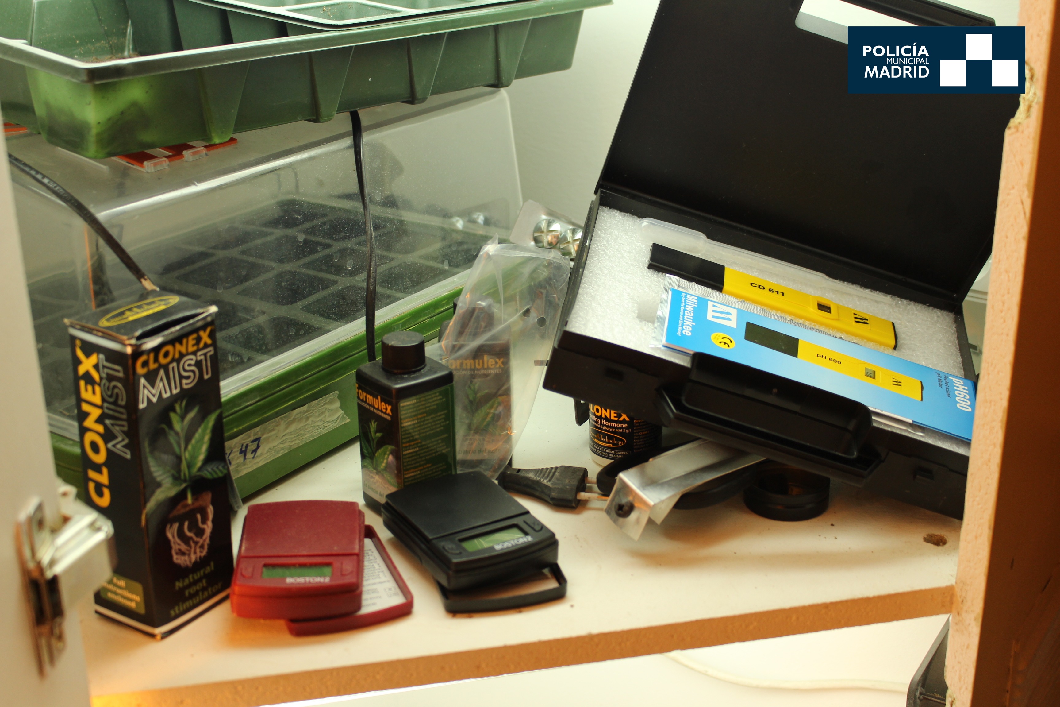 La primera habitación disponía de un armario utilizado como invernadero, en el que había numerosas plantas de marihuana, elementos para controlar la temperatura y la humedad, así como focos y aislamiento térmico.