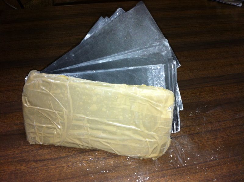 - En el momento de la detención se encontraron varios paquetes con cartulinas de color negro del tamaño de un billete, botes pulverizadores de colores, una aguja hipodérmica, algodones, cinta de embalaje y billetes falsificados, material necesario para el timo