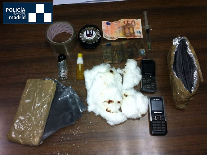 En su bolso encontraron varios paquetes con cartulinas de color negro del tamaño de un billete, botes pulverizadores de colores, una aguja hipodérmica, algodones, cinta de embalaje y billetes falsificados, es decir, lo necesario para ejecutar el timo./