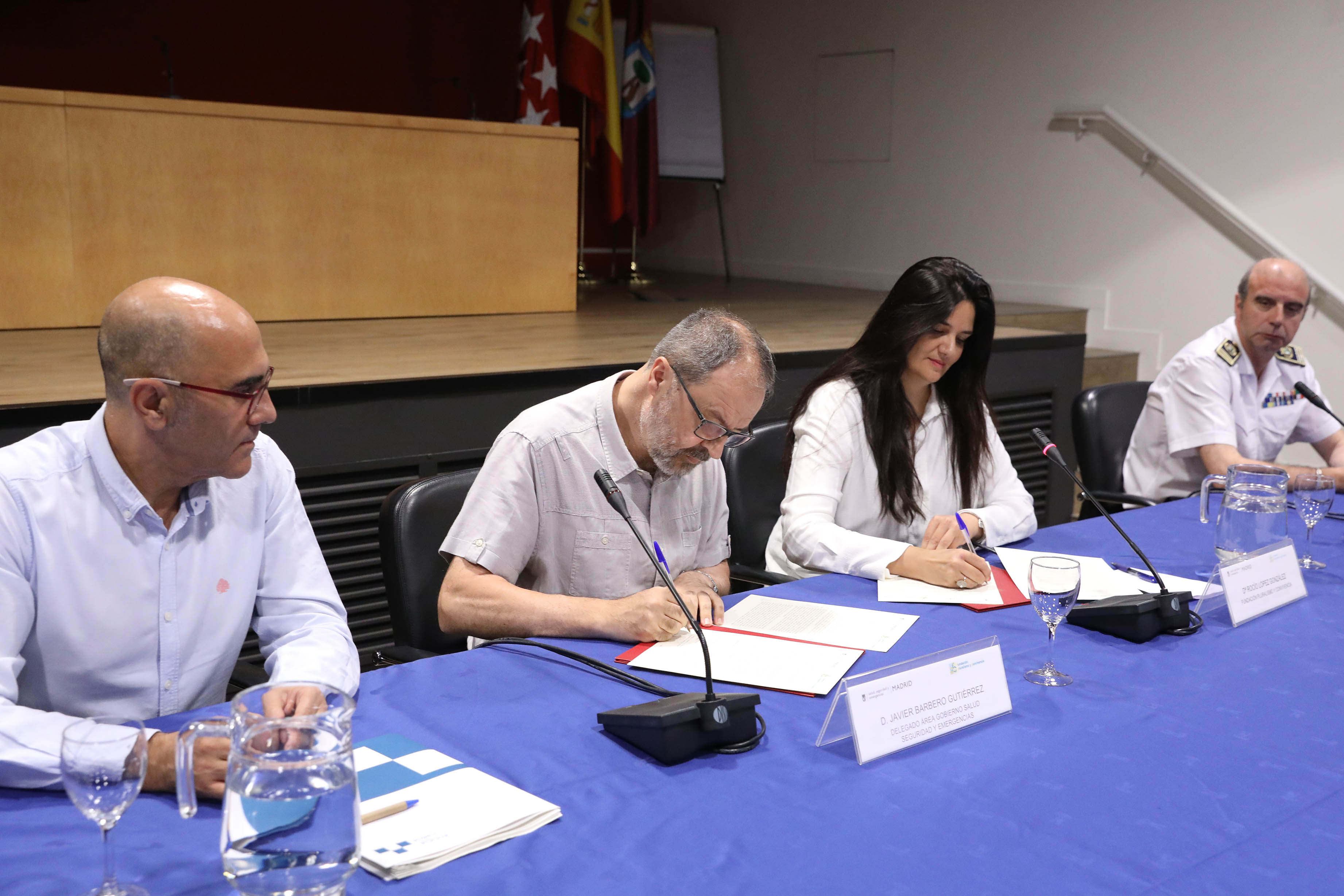 El delegado del Área de Salud, Seguridad y Emergencias, Javier Barbero, y la directora de la Fundación Pluralismo y Convivencia, Rocío López, han firmado este mediodía un acuerdo de colaboración, a través del cuerpo de Policía Municipal, para promover la libertad religiosa a través de la cooperación con las confesiones minoritarias.