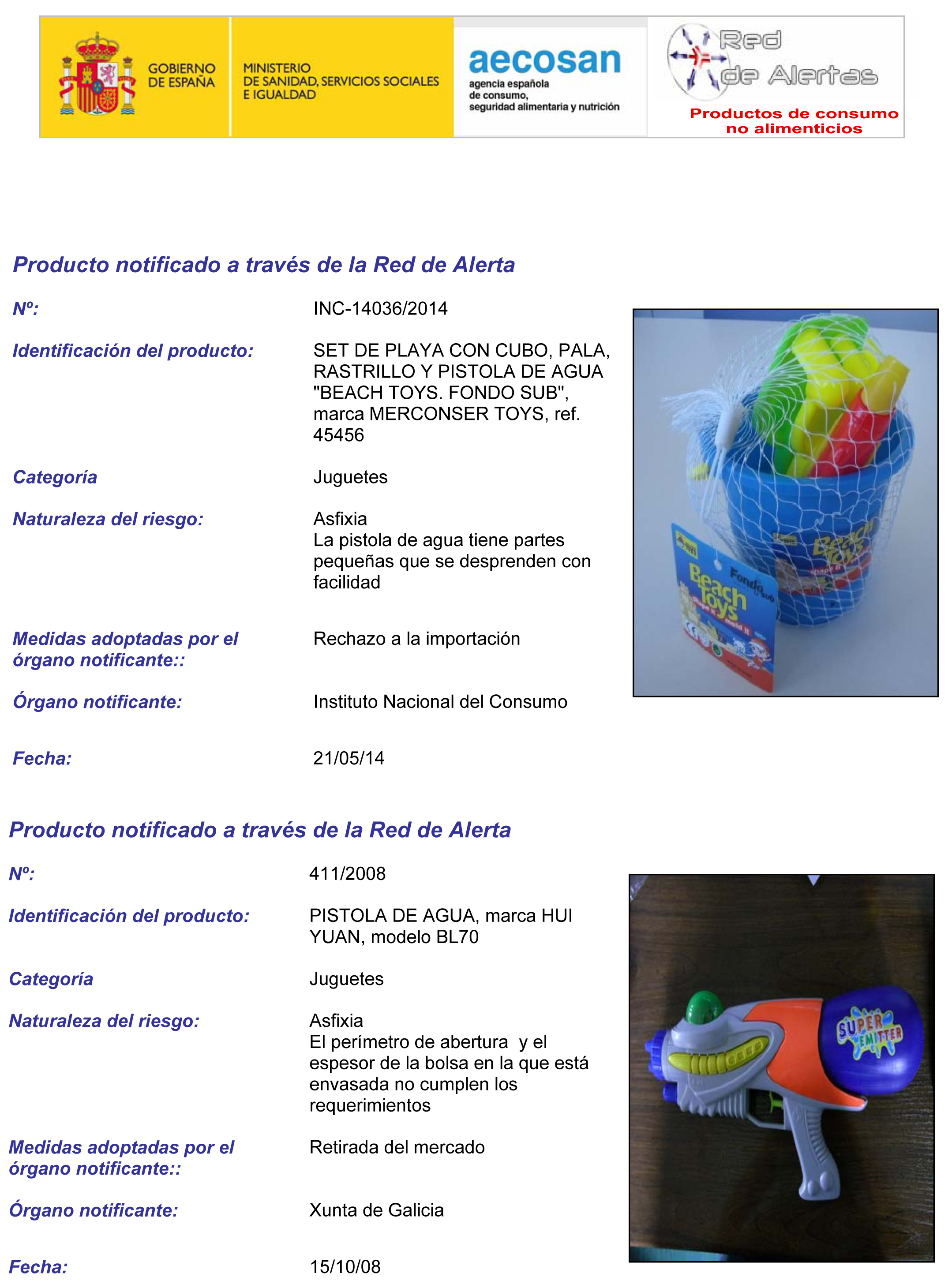 cuidado que han de prestar a la hora de comprar productos tales como flotadores, manguitos, colchonetas y juguetes de agua, ya que además de la fragilidad de los mismos, el uso de pintura con componentes potencialmente tóxicos, un ensamblaje defectuoso o materiales poco resistentes al peso y al agua, suponen riesgos evidentes para los niños.