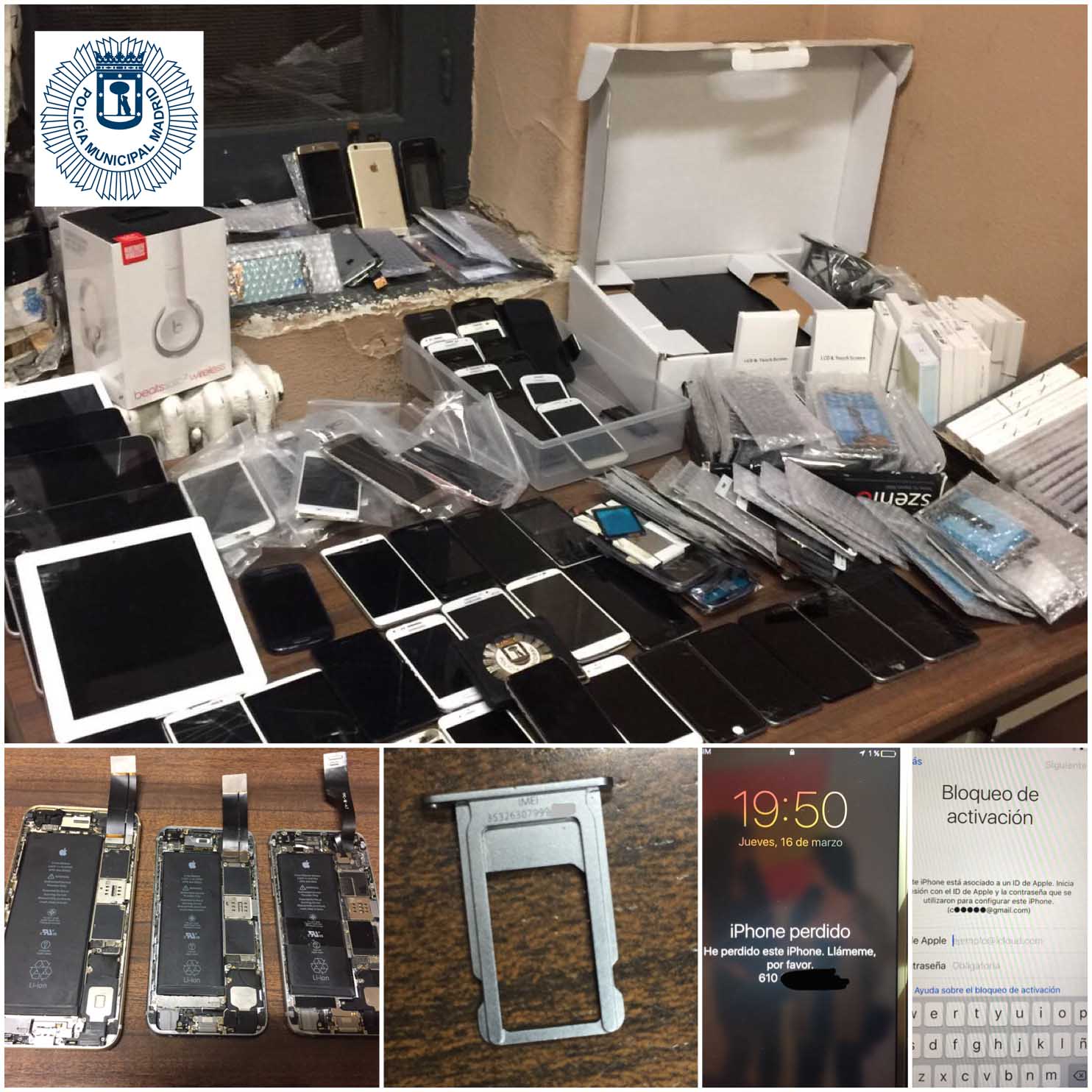La Policía Municipal ha intervenido 50 teléfonos móviles de alta gama que habían sido robados, junto con gran cantidad de piezas y componentes electrónicos que, presumiblemente, son utilizados para falsificaciones de marcas conocidas. La intervención finalizó con cuatro detenidos, a los que se les imputan delitos contra el patrimonio y contra la propiedad industrial.