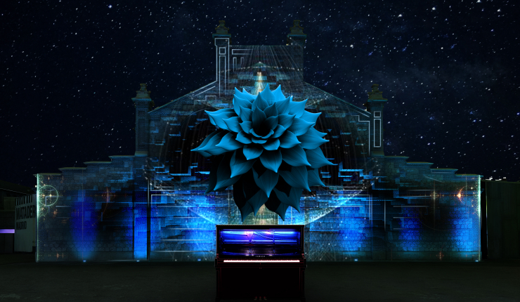 ¿Quién no conoce a Chopin? En honor al virtuoso pianista polaco, la fachada de Matadero cobra vida a través de la música. La compañía Eyesberg Studio nos invita a un espectáculo audiovisual en el que el público podrá observar como Chopin le habla a través de un piano que, como por arte de magia, toca solo. En esta intervención podremos ver cómo cada tecla del piano tiene asignado un elemento gráfico del mapping, generando así un conjunto visual y sonoro en el que la armonía y la poética de Chopin se fusionan.