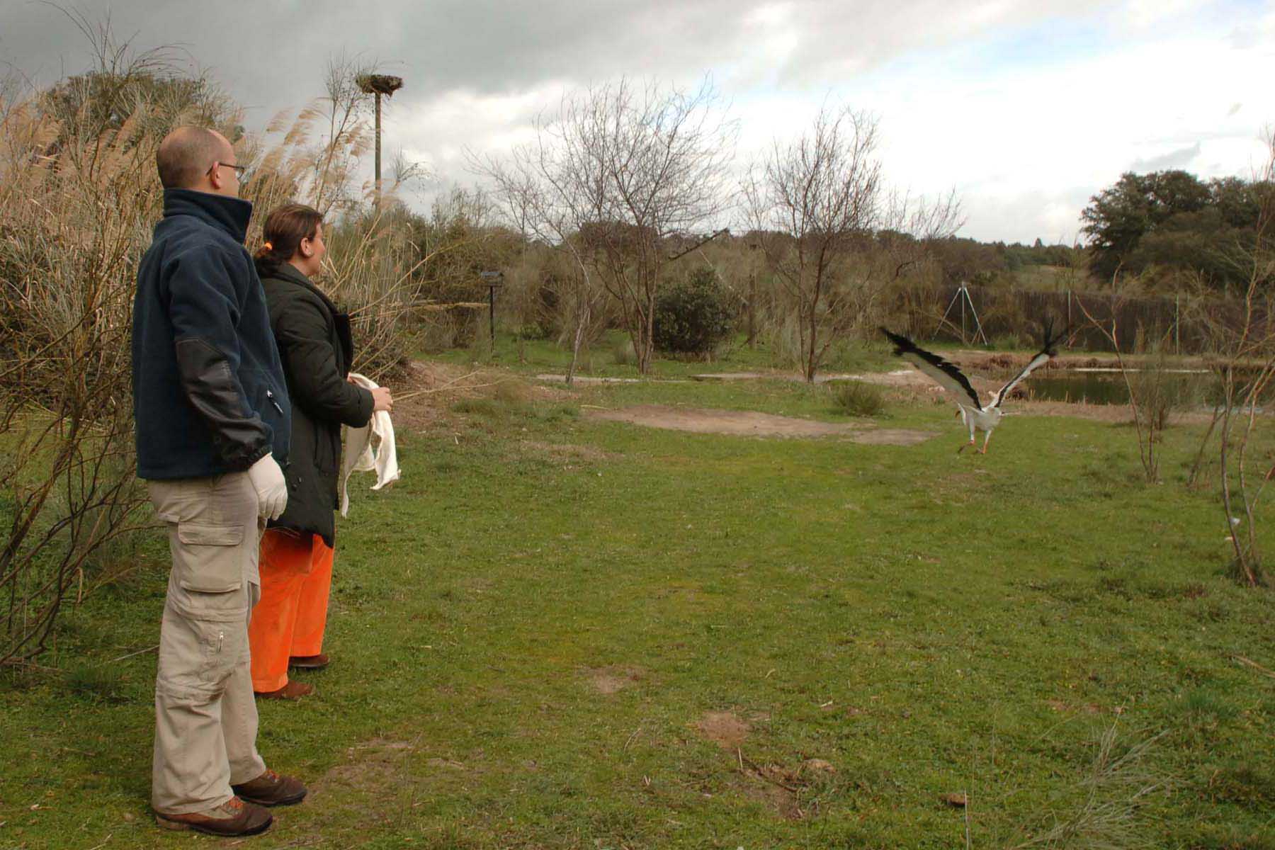 El cielo madrileño disfruta desde hoy de dos nuevos ejemplares de cigüeña blanca. Se trata de una pareja atendida en el Centro de Recuperación de la Cigüeña Blanca que el Ayuntamiento de Madrid gestiona en el Encinar de San Pedro, en el corazón de la Casa de Campo. Es un recinto destinado a atender a ejemplares heridos o incapacitados de esta especie con el fin de devolverles otra vez a la naturaleza. Sirve además como punto de atracción y cría de ejemplares libres.