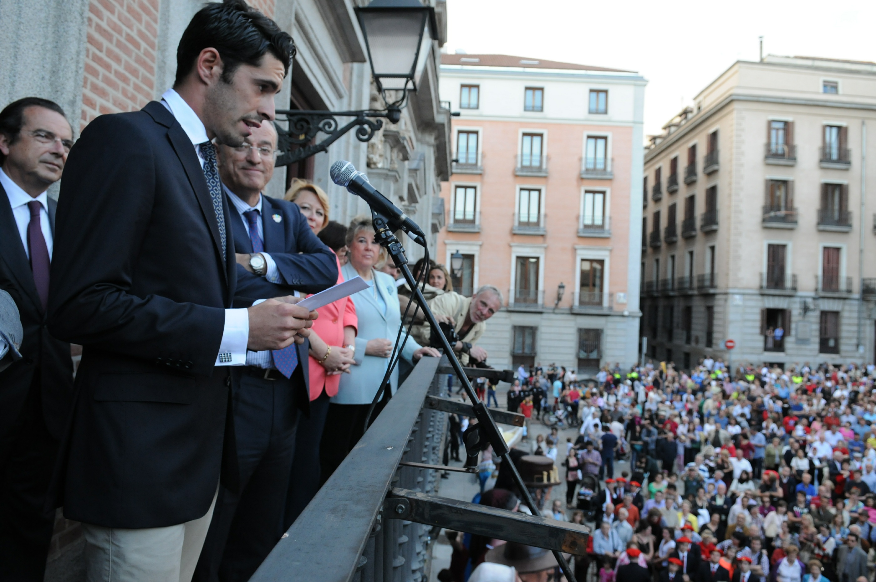 La ciudad de Madrid se encuentra inmersa en estos días en la celebración de sus fiestas patronales. Una cita con la música, la pirotecnia y los espectáculos al aire libre que ha dado comienzo esta tarde, a las 20 horas, con la lectura del pregón de las fiestas desde el balcón de la Plaza de la Villa. En esta ocasión ha sido el torero Alejandro Talavante quien ha abierto las fiestas, acompañado, entre otros, por el delegado de Las Artes, Deporte y Turismo, Pedro Corral.
