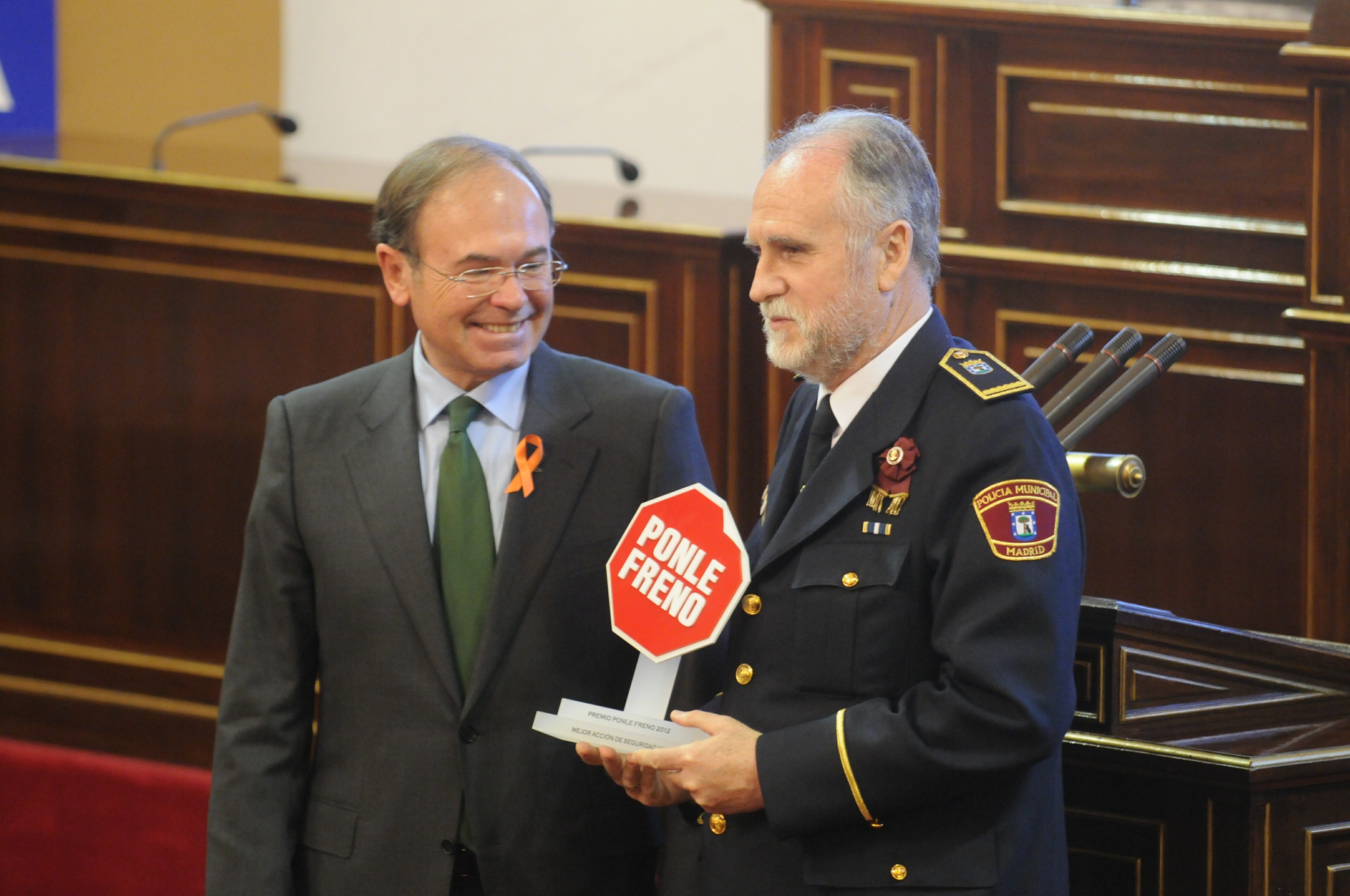 La Policía Municipal de Madrid ha sido galardonada por Antena 3 con uno de sus premios 'Ponle Freno 2012', el que reconoce la "mejor acción de seguridad Vial". El coordinador de Seguridad y Emergencias, Emilio García, ha asistido al acto de entrega, que se ha celebrado en el Senado.