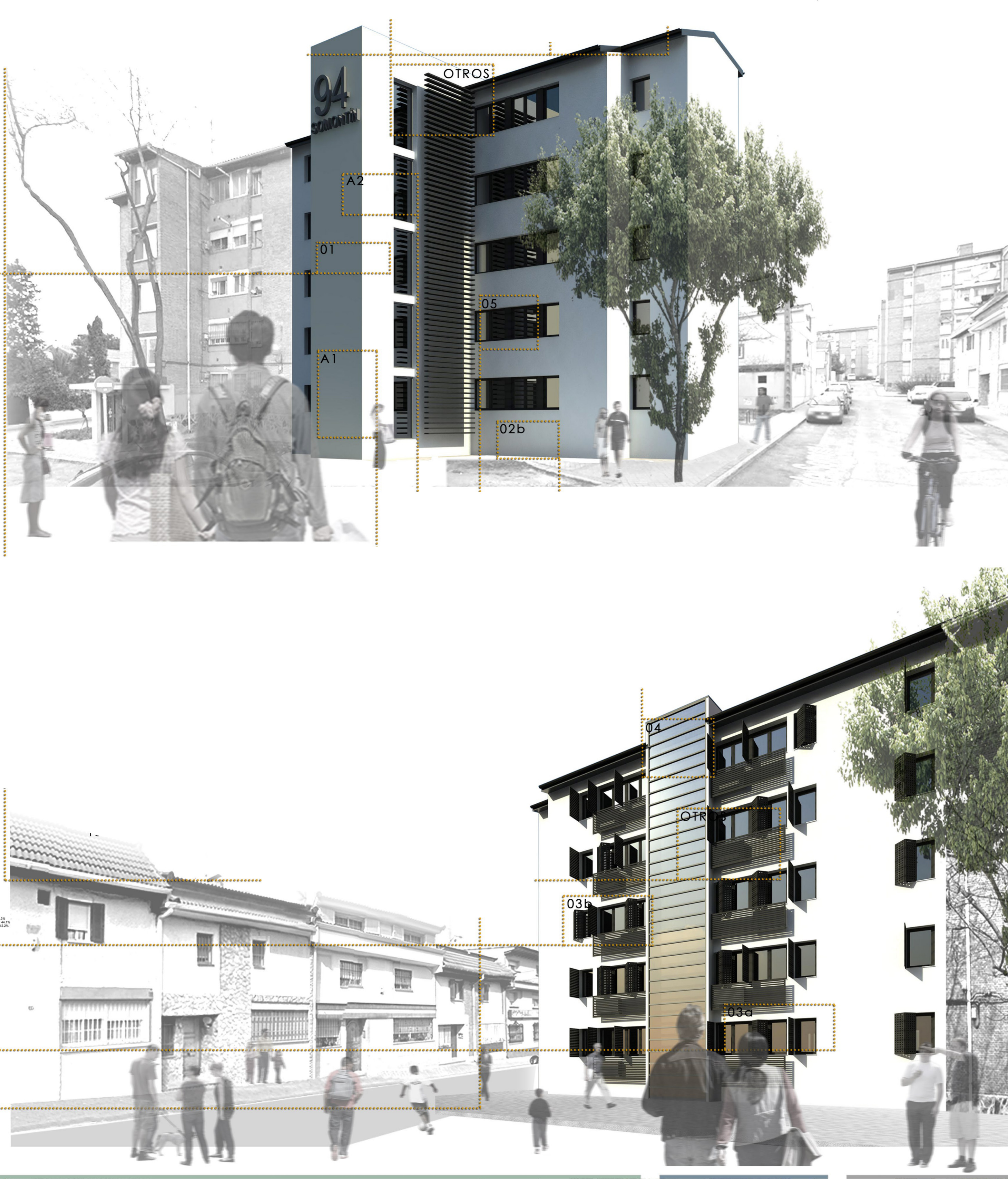 En el concurso para la rehabilitación energética y la accesibilidad en ambos bloques de viviendas, se han presentado 9 y 13 propuestas respectivamente. Los equipos de arquitectos ganadores han sido el dirigido por Carlos Bermúdez Alonso para el edificio de c/ San Pedro de Cardeña, y Julio González Quintas, para el edificio de la c/ Somotín. Ambos serán los encargados redactar los proyectos y ejercer la dirección de las obras. Además, se han concedido un segundo y tercer premio en cada uno de los dos proyectos.