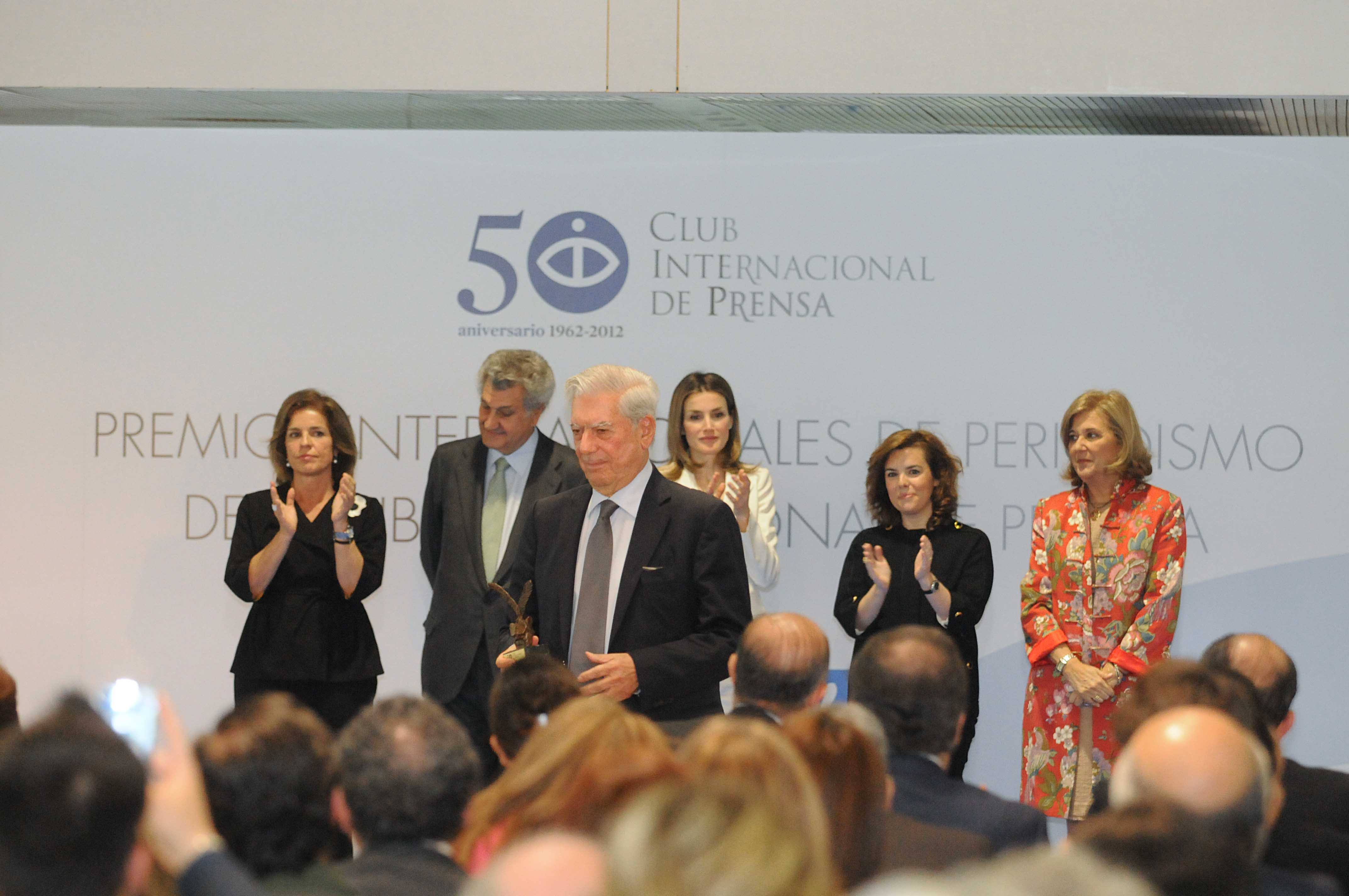 Mario Vargas Llosa, Mayte Carrasco, Gilles Tremlett, Jon Lee Anderson, Daniel Samper Pizano y Reporters Sans Frontiéres han sido reconocidos hoy con los premios 2011 del Club Internacional de Prensa, una entidad fundada en 1962 y presidida en la actualidad por Carmen Enríquez. Al acto, presidido por el Príncipe de Asturias, ha asistido la alcaldesa Ana Botella junto con el presidente del Congreso, Jesús Posada; la vicepresidenta primera del Gobierno, Soraya Sáenz de Santamaría; el presidente de la Audiencia Nacional, Ángel Juanes; distintos embajadores y la presidenta y los miembros de la Junta Directiva de este club.