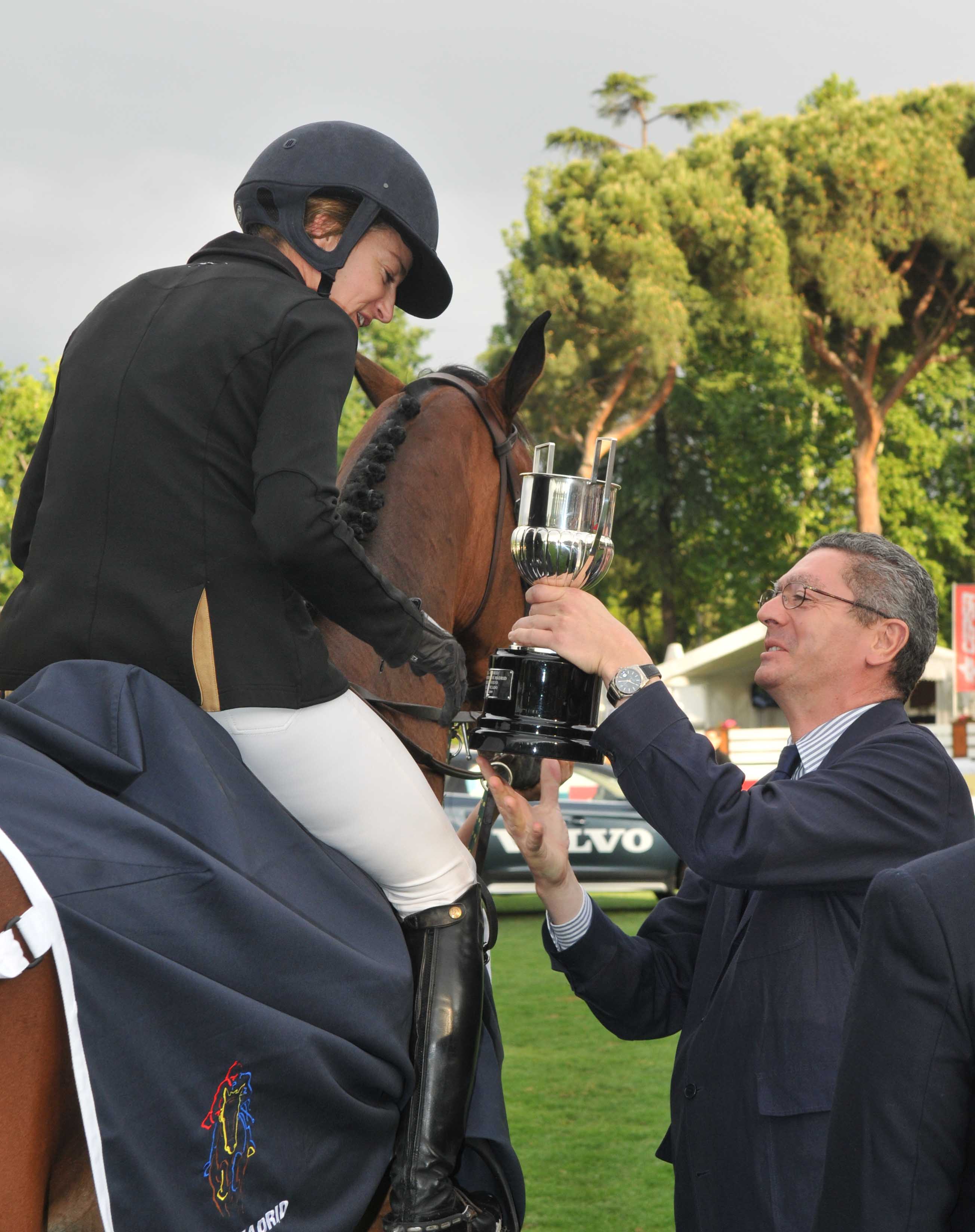 El alcalde de la Ciudad de Madrid, Alberto Ruiz-Gallardón, entregó ayer por la tarde los trofeos del 99º Concurso de Saltos Internacional de Madrid ‘Gran Premio Madrid. Trofeo Volvo’ que se celebró en las Instalaciones de Hípica del Club de Campo Villa de Madrid en Carretera de Castilla. El premio del Ayuntamiento de Madrid fue por segunda vez para la amazona estadounidense Laura Kraut montando a “Anthem”. Kraut también fue vencedora en 2007. La segunda plaza fue para Eric Lamaze de Canadá montando a “Hickstead”. En tercera posición quedó Thomas Fruhmann con “The sixth sense”. El mejor jinete español fue Ricardo Jurado con “Julia des Brumes” con quien logró el sexto puesto.