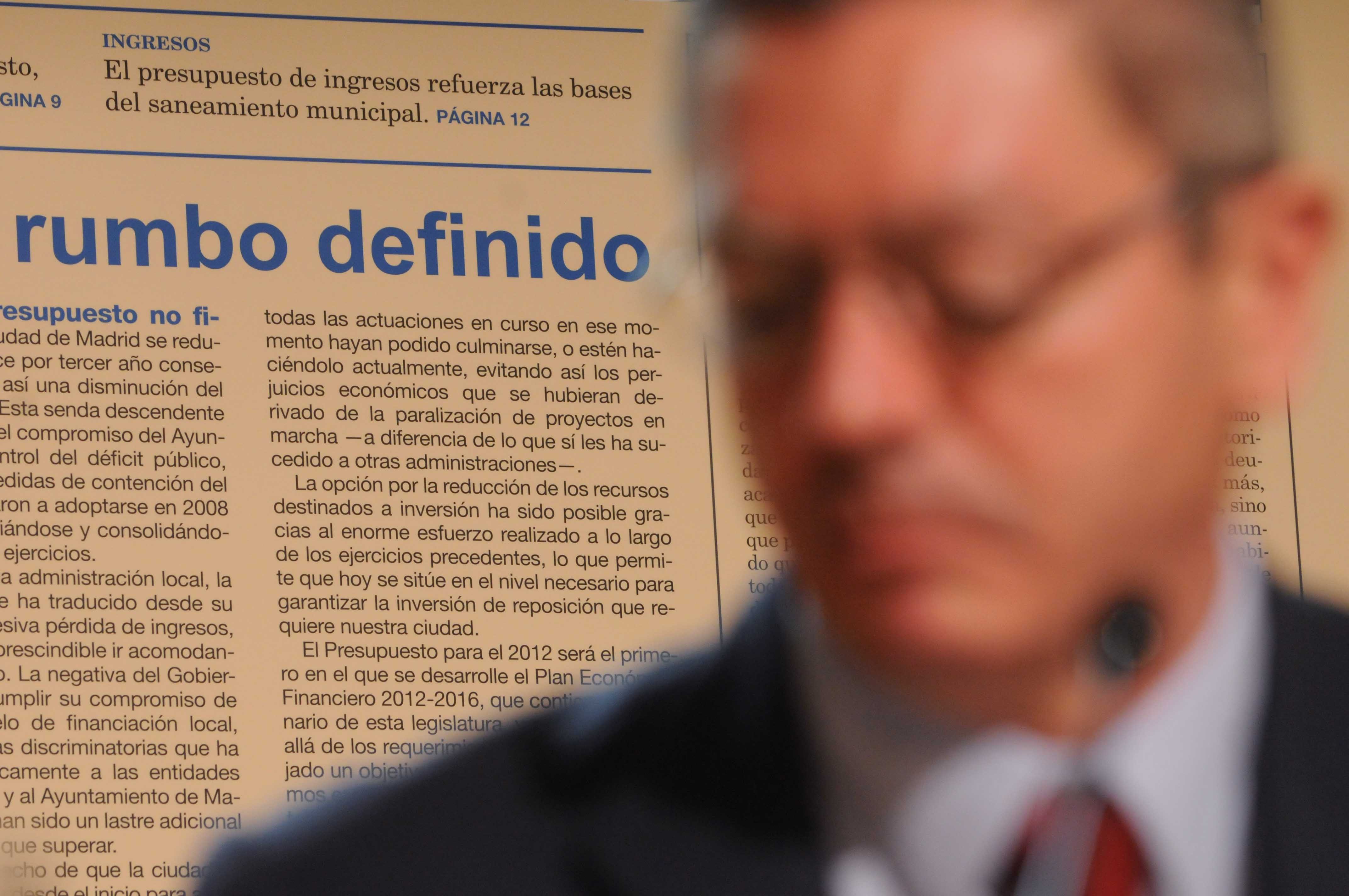 Crear empleo, garantizar los servicios públicos y la calidad de su prestación, reducir la deuda municipal y controlar el déficit público a través de la contención del gasto que se inició ya en 2008 son los criterios que han servido de base al Gobierno de la Ciudad de Madrid para elaborar el Presupuesto de 2012. Éste alcanza los 3.879,29 millones €, un 4,1% menos que el año anterior, y una reducción acumulada del 21,2% desde 2008 en términos no financieros. También y por tercer año consecutivo, el Ayuntamiento cierra el ejercicio con menor deuda que al comienzo del mismo: en 2012 la reducción será de 724 millones, muy superior a los 309 de 2010 y a los 105 millones que descenderá la deuda en 2011.