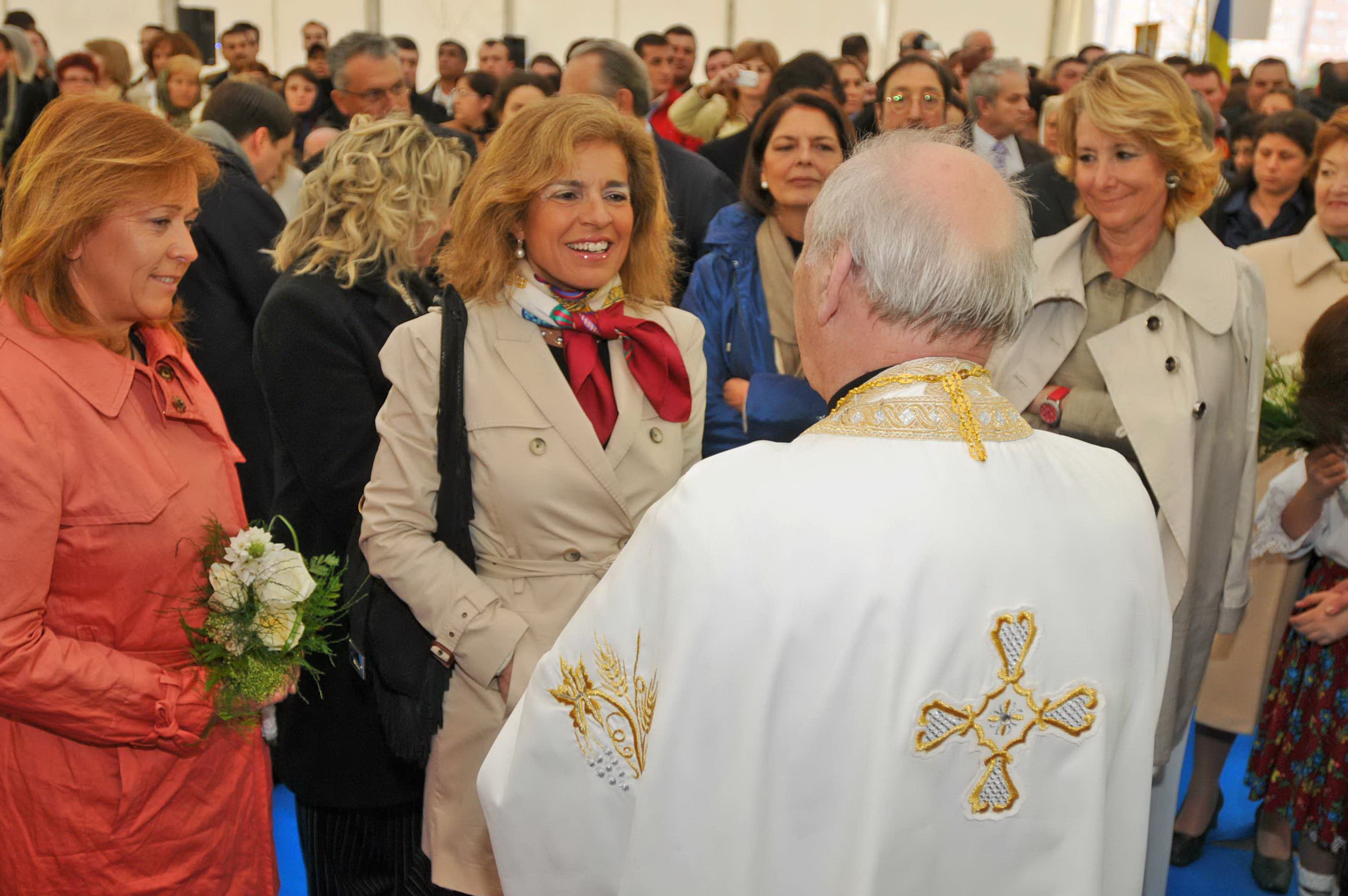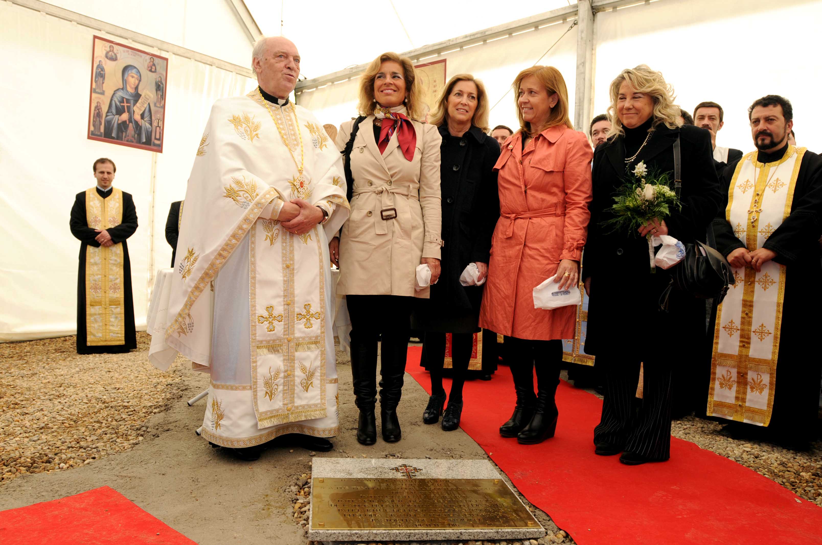 Ana Botella, Concepción Dancausa y Pilar Martínez han acompañado hoy al patriarca de la iglesia ortodoxa rumana, Daniel Ciobotea, en la colocación de la primera piedra de la iglesia de esta confesión Santísima Virgen María, en el distrito de Latina.
