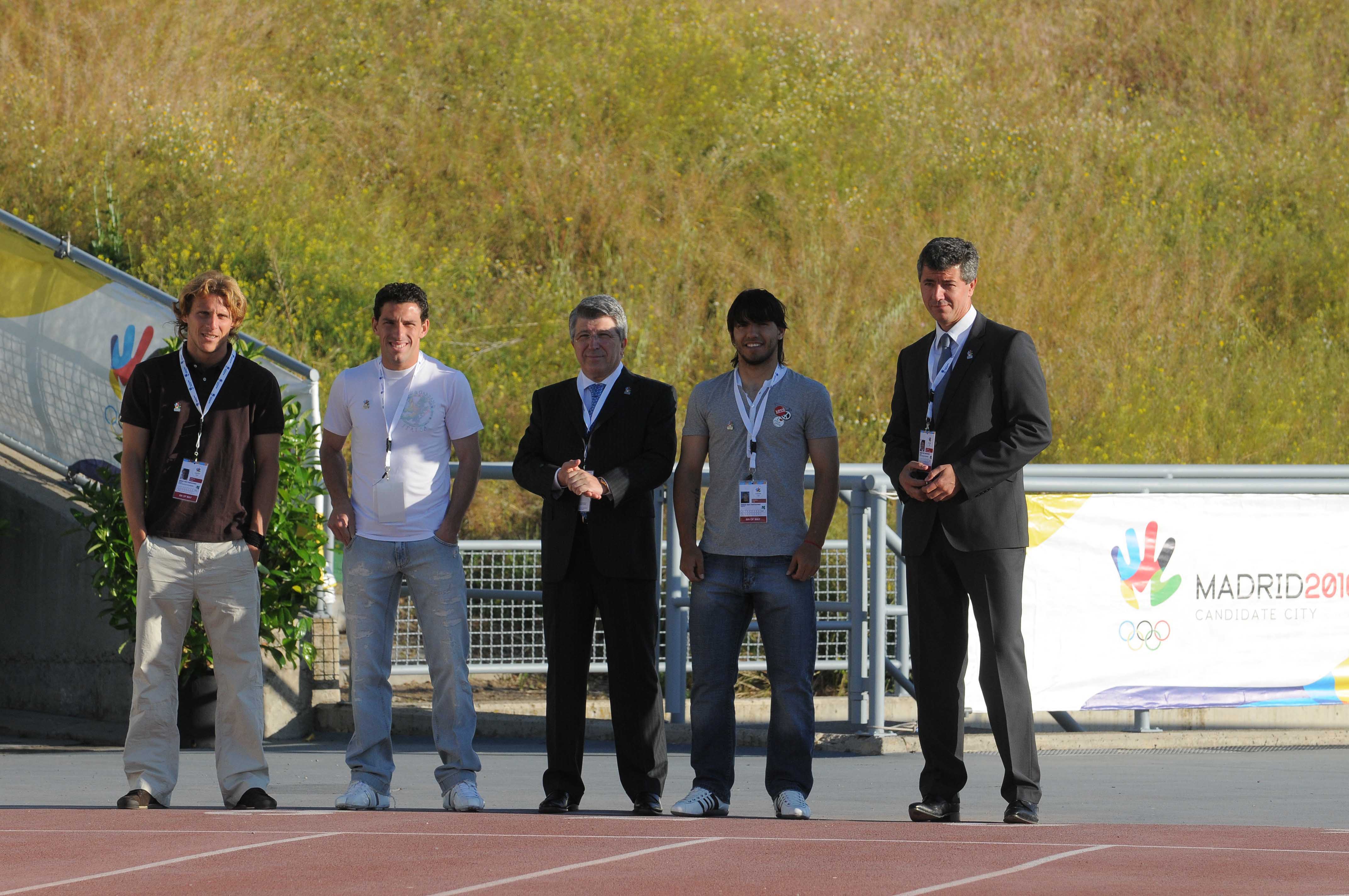 El estadio Olímpico ha sido la primera de las instalaciones que han visitado esta mañana los miembros de la Comisión de Evaluación que analizan esta semana la candidatura de Madrid para organizar los Juegos de 2016. El alcalde ha acompañado a los delegados del CIO en su visita, a la que también han asistido otros responsables municipales y miembros de Madrid 16, así como deportistas que respaldan el proyecto y representantes de medios de comunicación nacionales y extranjeros. El Estadio Olímpico, sede principal de los Juegos, se convertirá en la "casa" del Atlético de Madrid dentro de pocos años, por lo que hoy han estado en el césped el presidente del club, Enrique Cerezo, el consejero delegado Miguel Ángel Gil, y los futbolistas de la primera plantilla Maxi Rodríguez, Diego Forlán y Sergio Agüero.