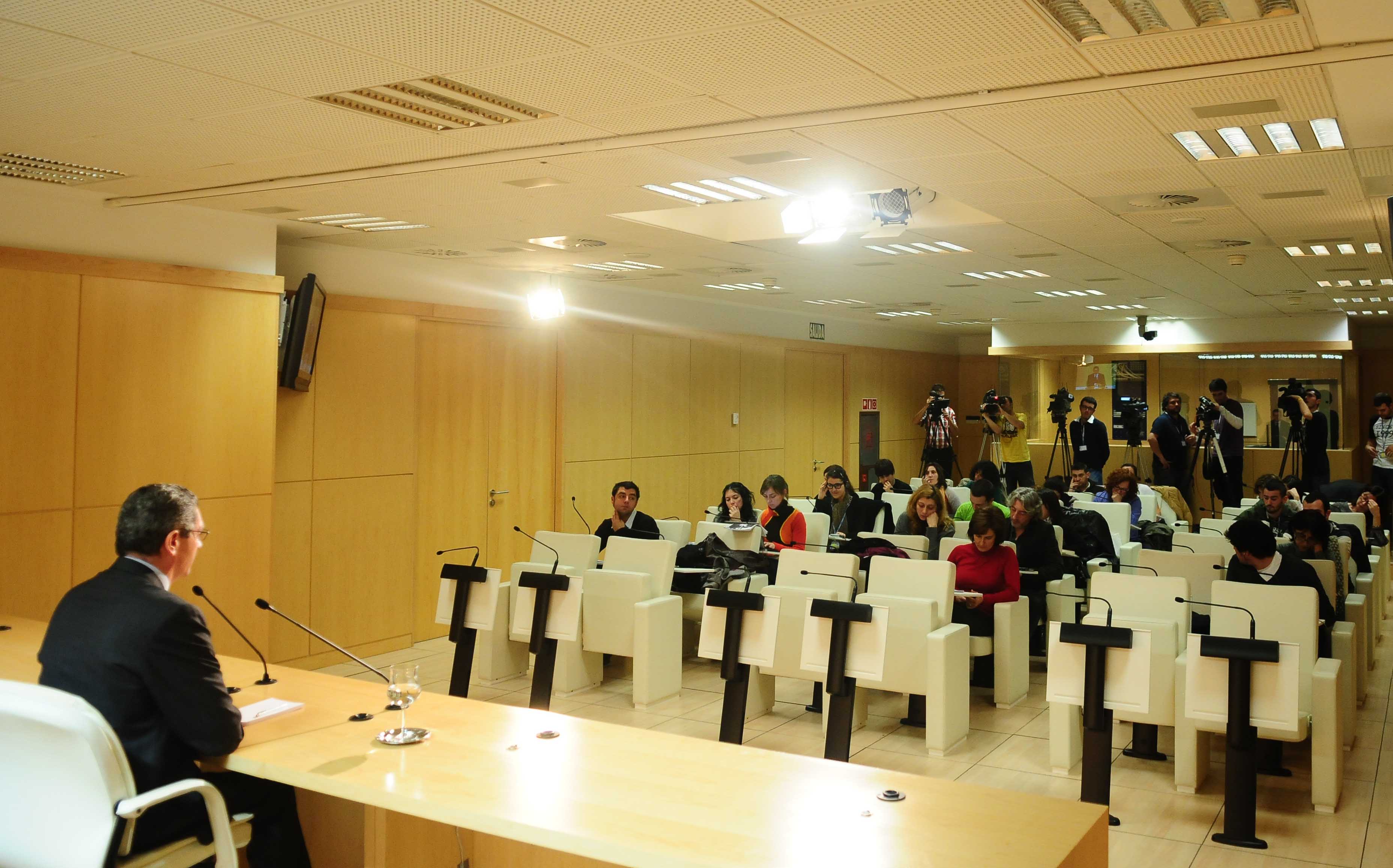 Distintas imagenes del alcalde de la Ciudad de Madrid, Alberto Ruiz-Gallardón, durante la rueda de presa posterior a la Junta de Gobierno, celebrada esta mañana.