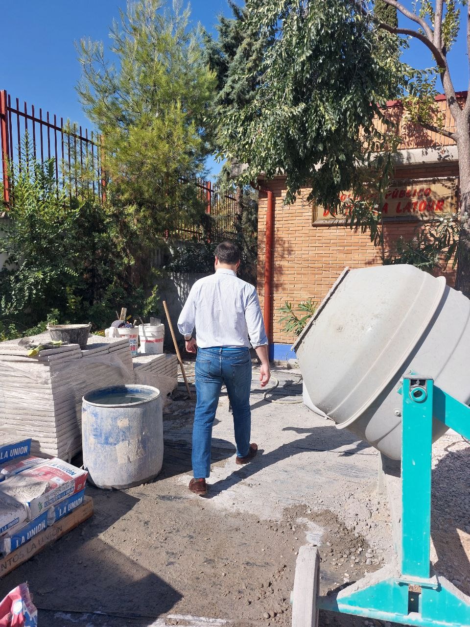 El concejal del distrito, Ángel Niño, durante su visita a las obras en los CEIP Javier de Miguel y Tolosa Latour