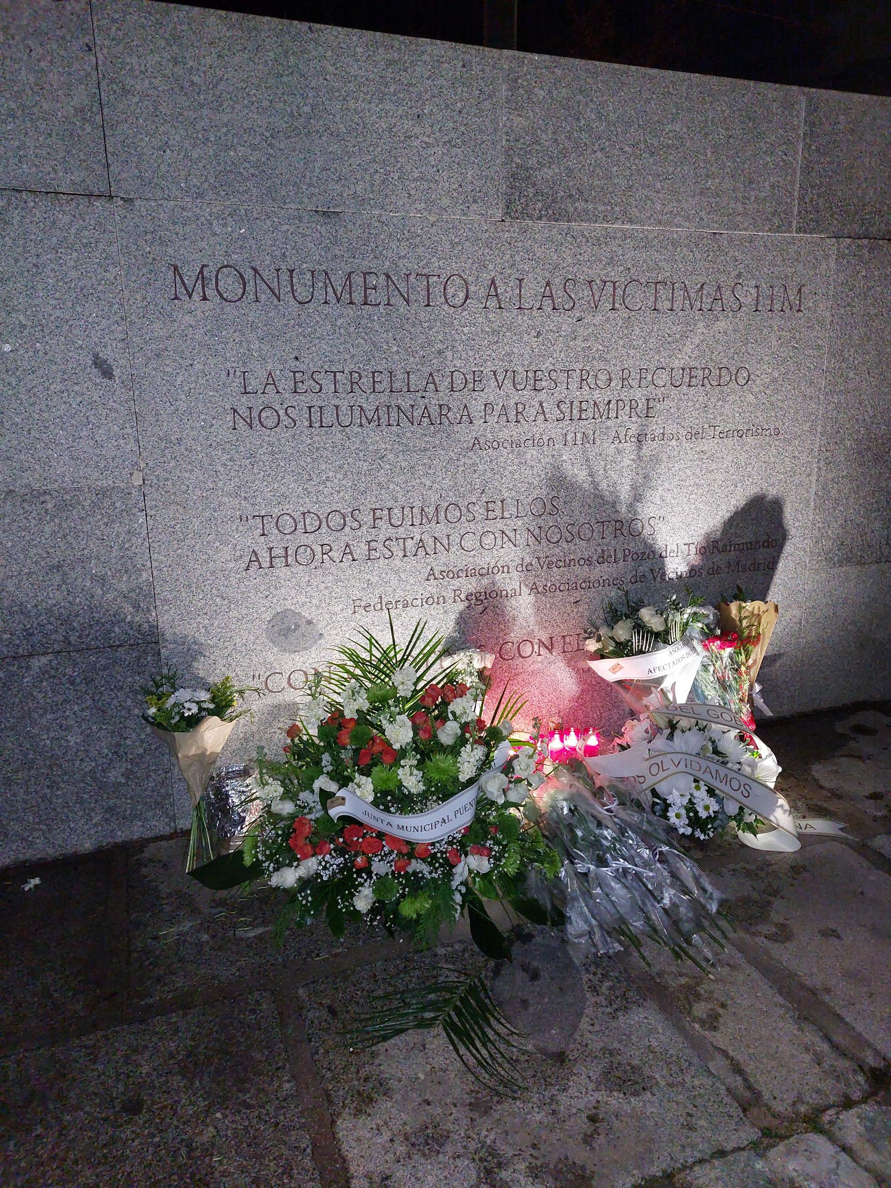 La Junta Municipal de Puente de Vallecas ha rendido homenaje esta tarde a las víctimas de los atentados terroristas del 11 de marzo de 2004, en colaboración con la Asociación 11M Afectados del Terrorismo, en un acto que ha tenido lugar frente al monumento escultórico situado junto a la estación de El Pozo.