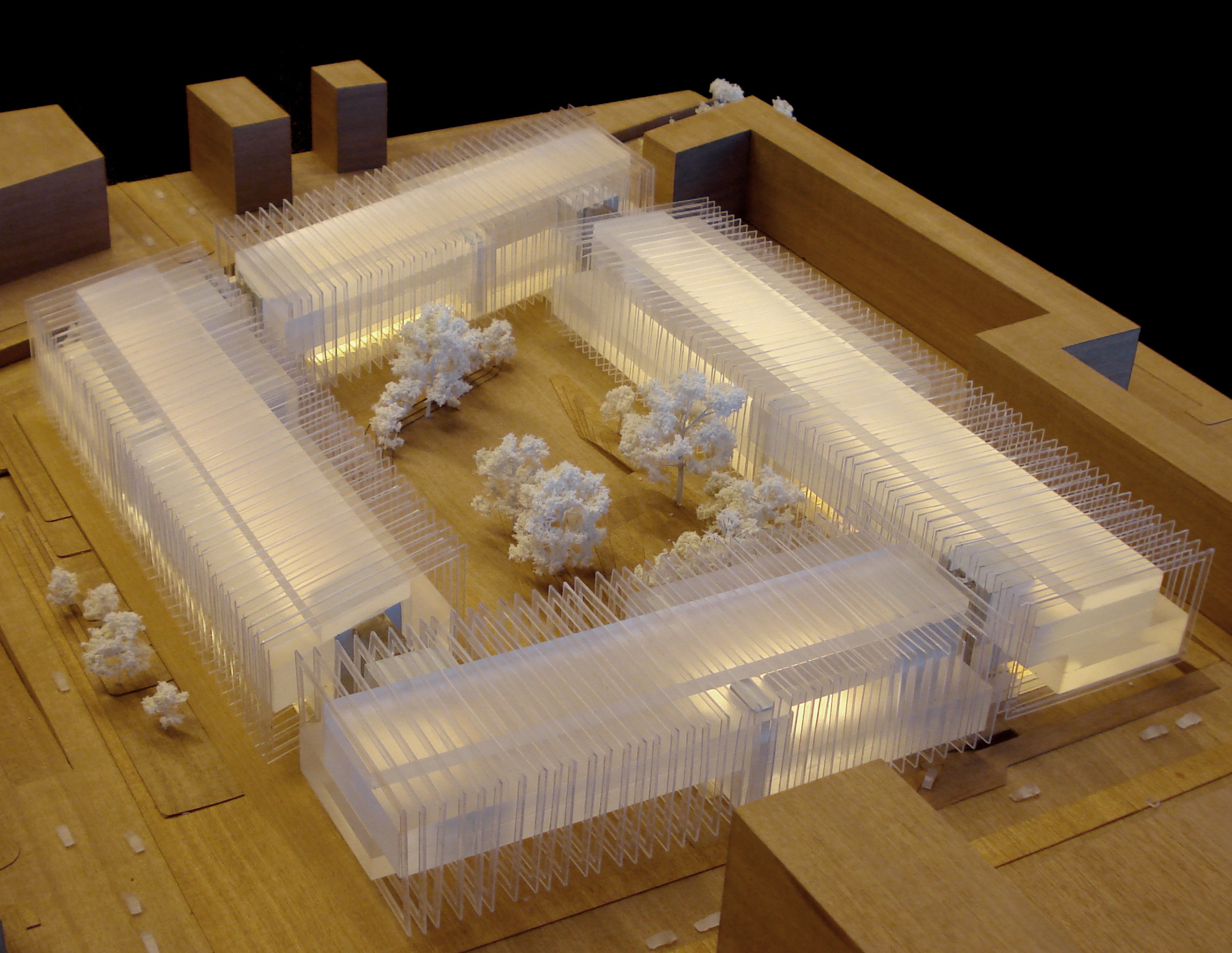El nuevo edificio ha sido concebido con un diseño singular y funcional. Tendrá cinco plantas y estará formado por cuatro volúmenes conectados entre sí creando un cuadrilátero, cuya zona central será un amplio patio arbolado desde el que se accederá al inmueble. A este patio se llegará directamente desde la calle Méndez Alvaro, por la esquina con la calle Estrella Naos, o desde el aparcamiento subterráneo.