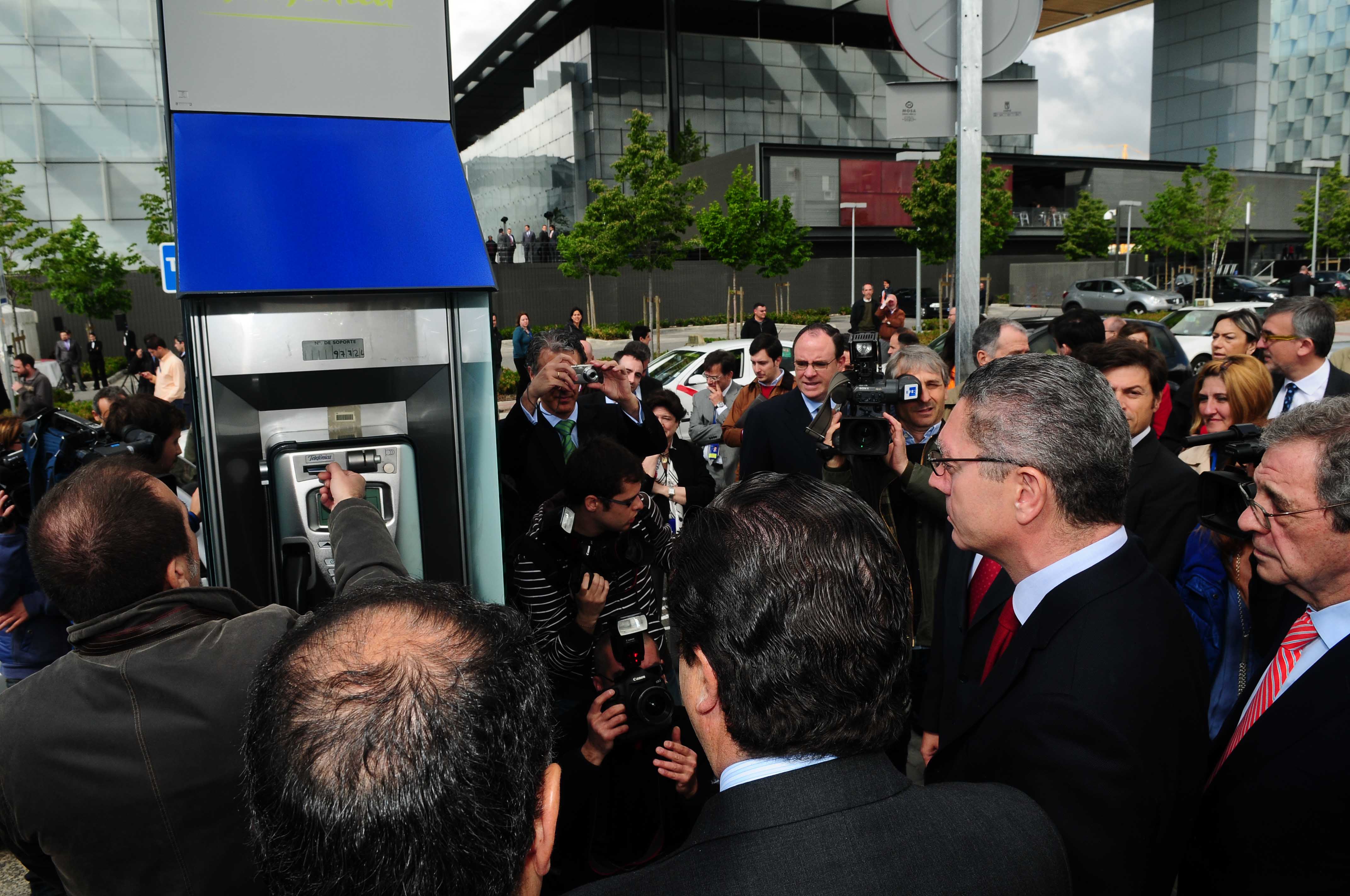 "El Ayuntamiento de Madrid ha asumido plenamente su responsabilidad de preparar la ciudad para recibir al coche eléctrico", aseguraba hoy el alcalde Alberto Ruiz-Gallardón, al presentar un nuevo punto de recarga de coches eléctricos en una cabina telefónica en el barrio de las Tablas. "Estamos trabajando intensamente para afrontar el desafío que supone la transición a un nuevo modelo de movilidad sostenible, porque es a las ciudades a quienes corresponde gestionar la llegada de los vehículos eléctricos con un doble objetivo: como parte de nuestra lucha contra el cambio climático y de nuestras políticas para avanzar en el uso eficiente de la energía".