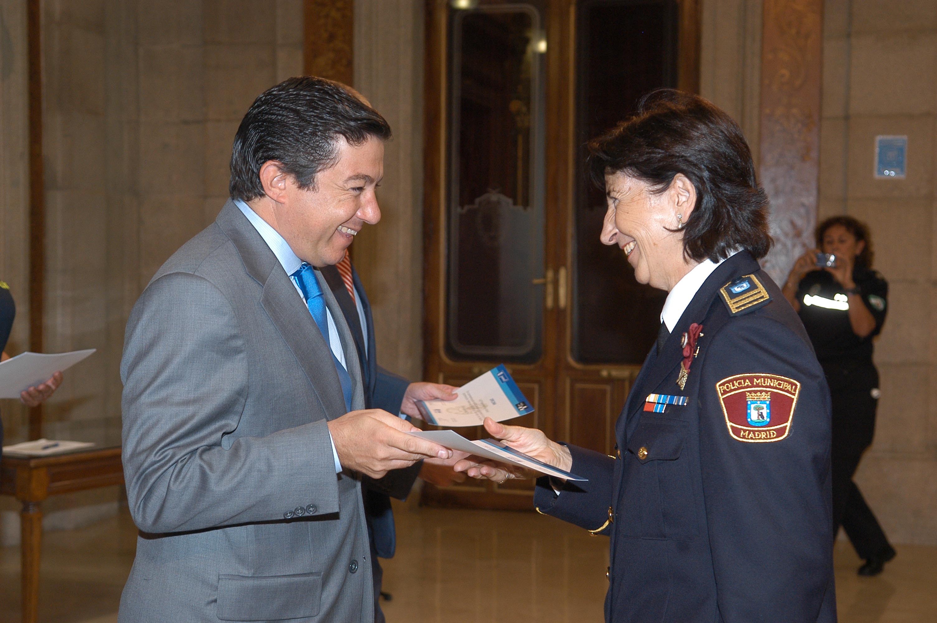 El delegado de Seguridad, Pedro Calvo, ha entregado hoy un diploma de reconocimiento a las mujeres de la primera promoción de la Policía Municipal de Madrid. Fue en el año 1971 cuando 41 mujeres, apodadas cariñosamente por los madrileños 'claveles azules', marcaron un hito en la historia de la capital con su entrada en el Cuerpo.