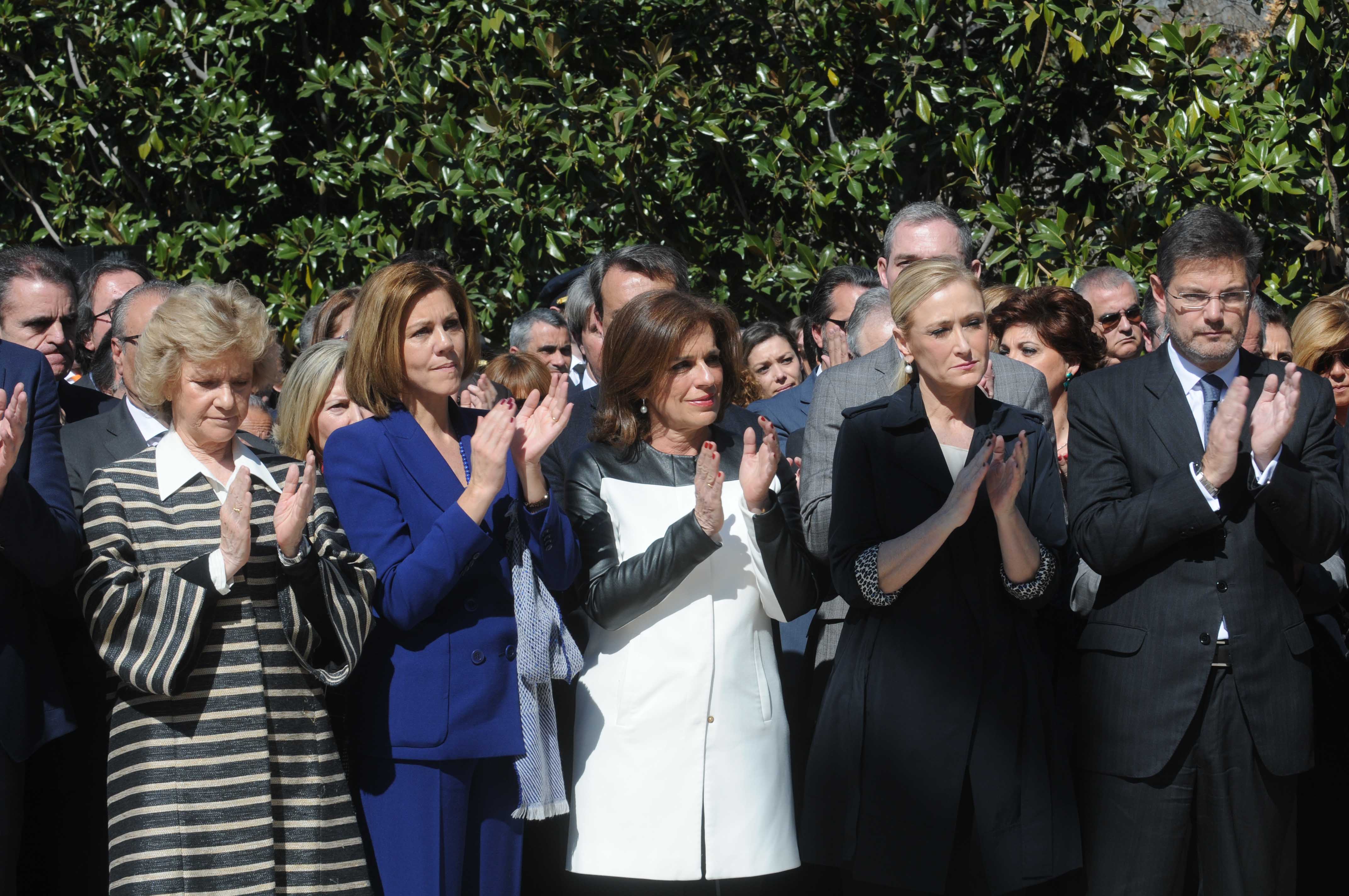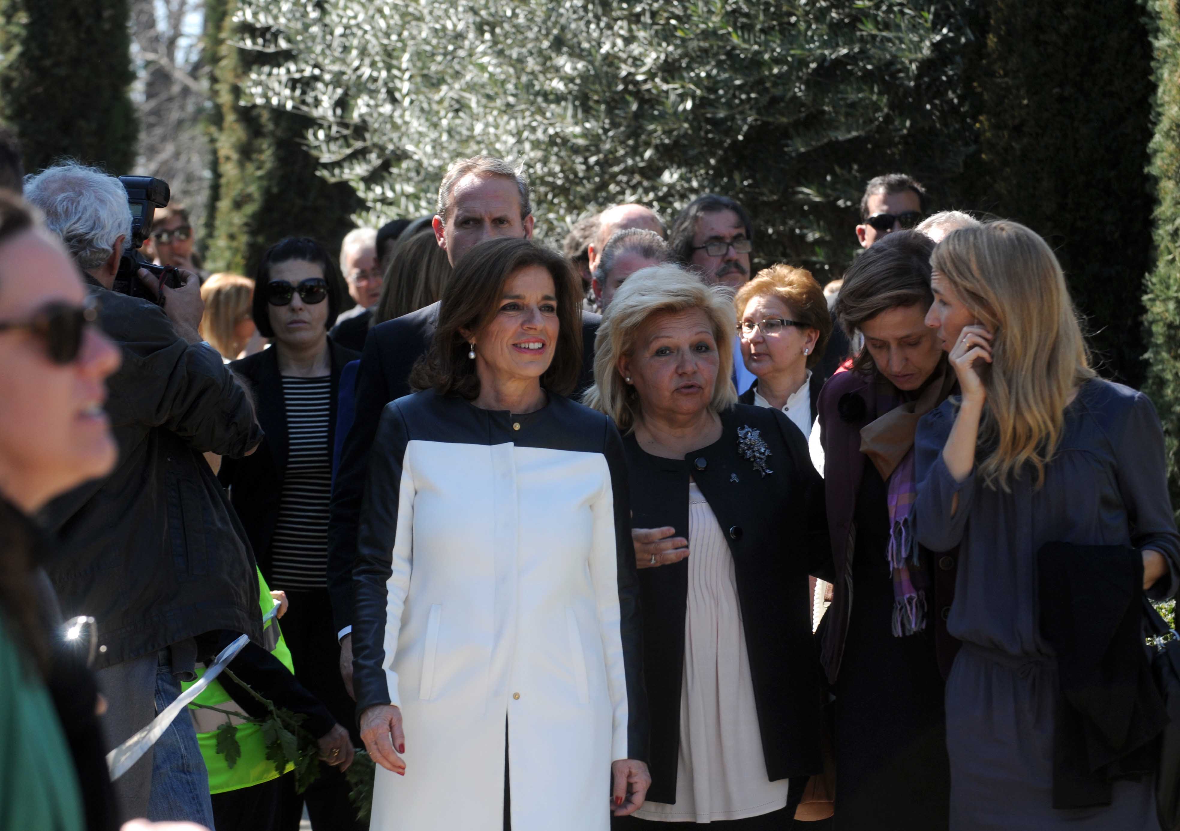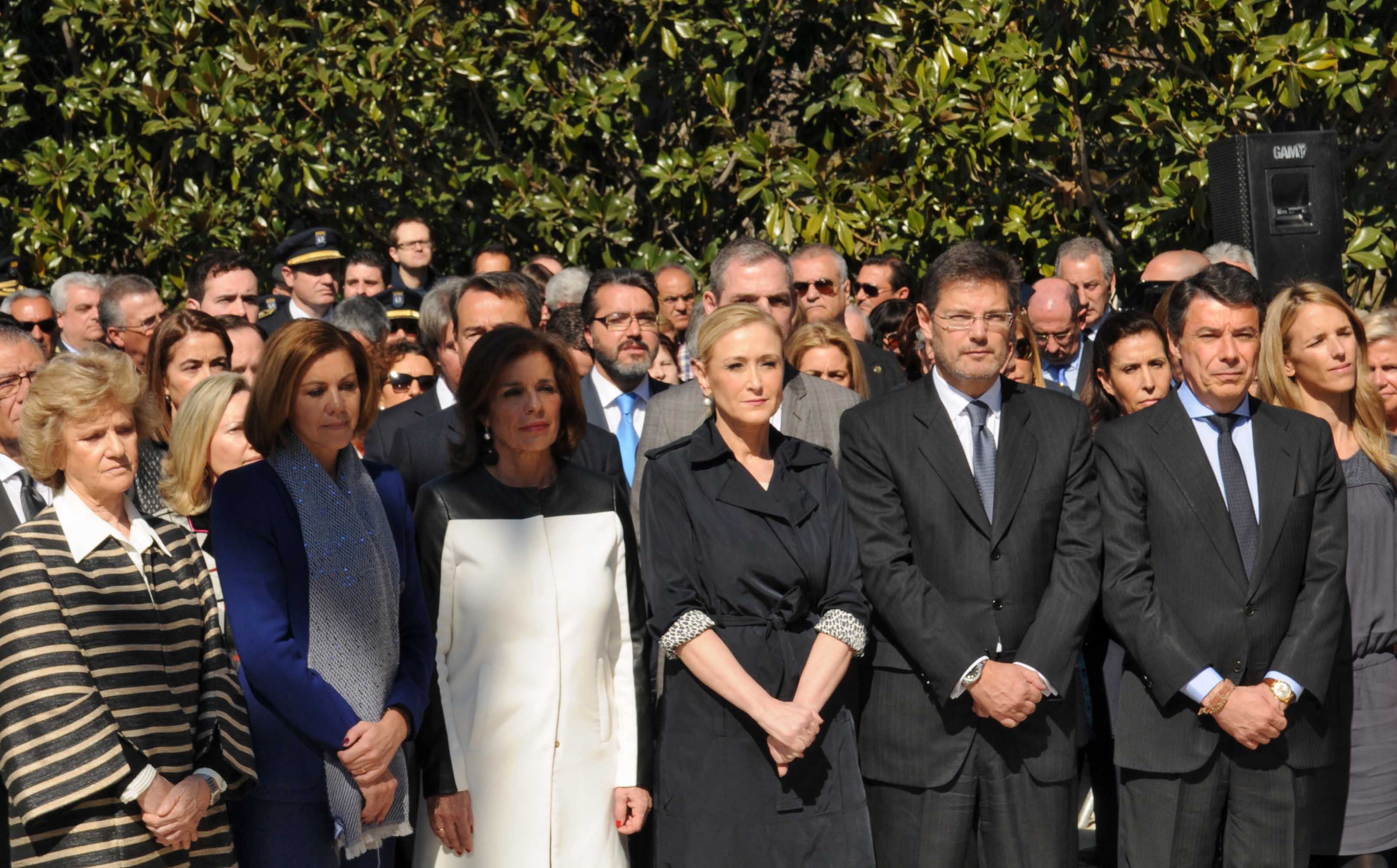 La alcaldesa de Madrid, Ana Botella ha asistido al acto de conmemoración del Día Europeo de las Víctimas del Terrorismo que se ha celebrado en el Bosque del Recuerdo del parque de El Retiro, donde se ha rendido homenaje a los 192 muertos en los atentados del 11M asesinados en 2004. La presidenta de la Asociación de Víctimas del Terrorismo (AVT), Ángeles Pedraza, ha sido la encargada de leer un manifiesto en el que ha pedido a los políticos valentía y compromiso para hacer frente a la amenaza "viva" del terrorismo "sin ambages y sin cálculos electoralistas". "Hoy es el día en el que todos debemos dar un paso al frente y firmar nuestro compromiso de fortaleza frente a los terroristas y quienes les amparan o apoyan". Un acto al que han asistido entre otros la secretaria general del PP, María Dolores de Cospedal; el ministro de Justicia, Rafael Catalá; el líder del PSOE, Pedro Sánchez; el expresidente del Gobierno José Luis Rodríguez Zapatero y el presidente de la Comunidad de Madrid, Ignacio González, entre otros. También han estado las candidatas del PP al gobierno regional y Ayuntamiento, Cristina Cifuentes y Esperanza Aguirre, respectivamente, y los aspirantes socialistas a ocupar el Ejecutivo y la alcaldía madrileña, Antonio Miguel Carmona y Ángel Gabilondo./
