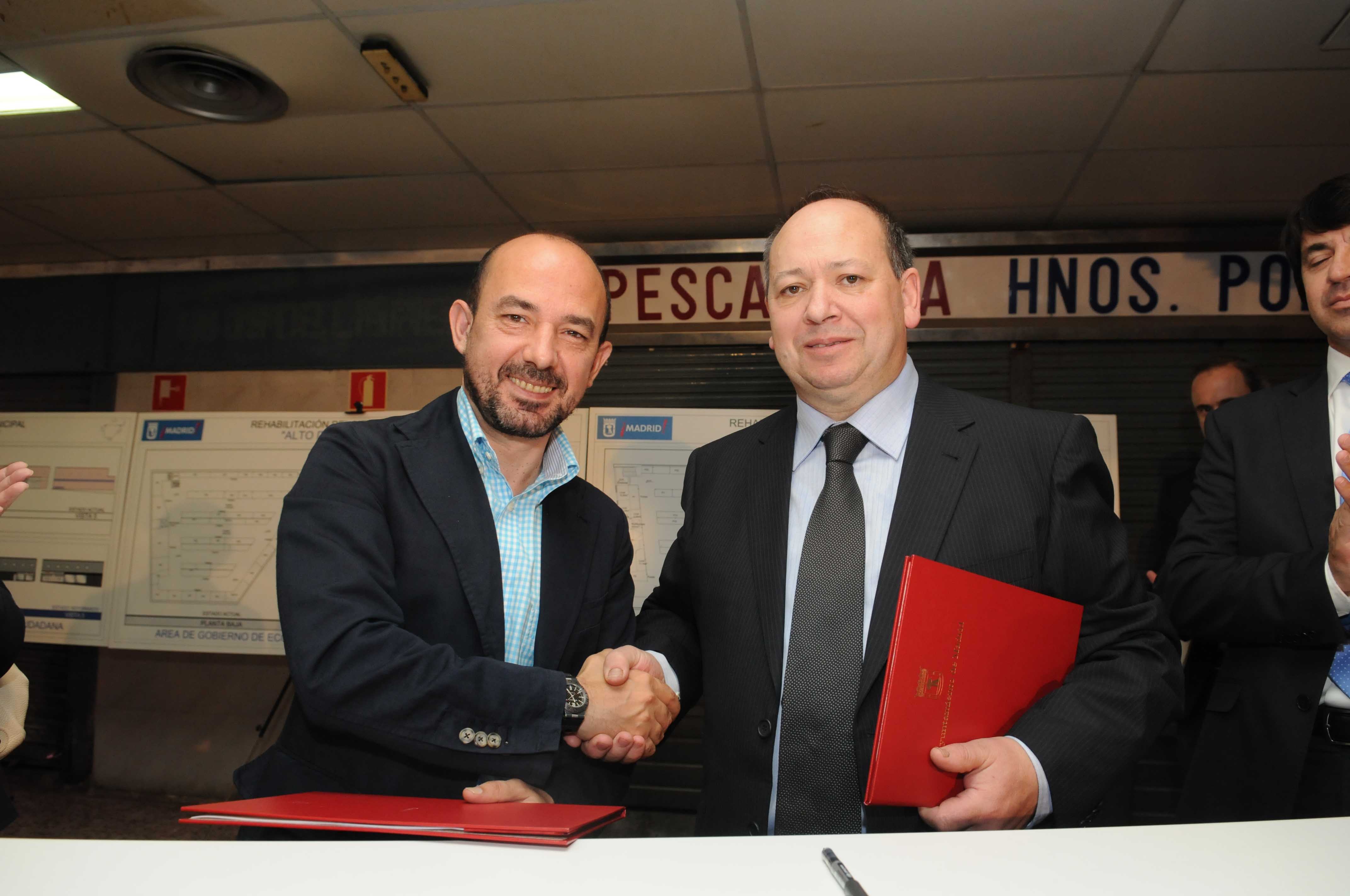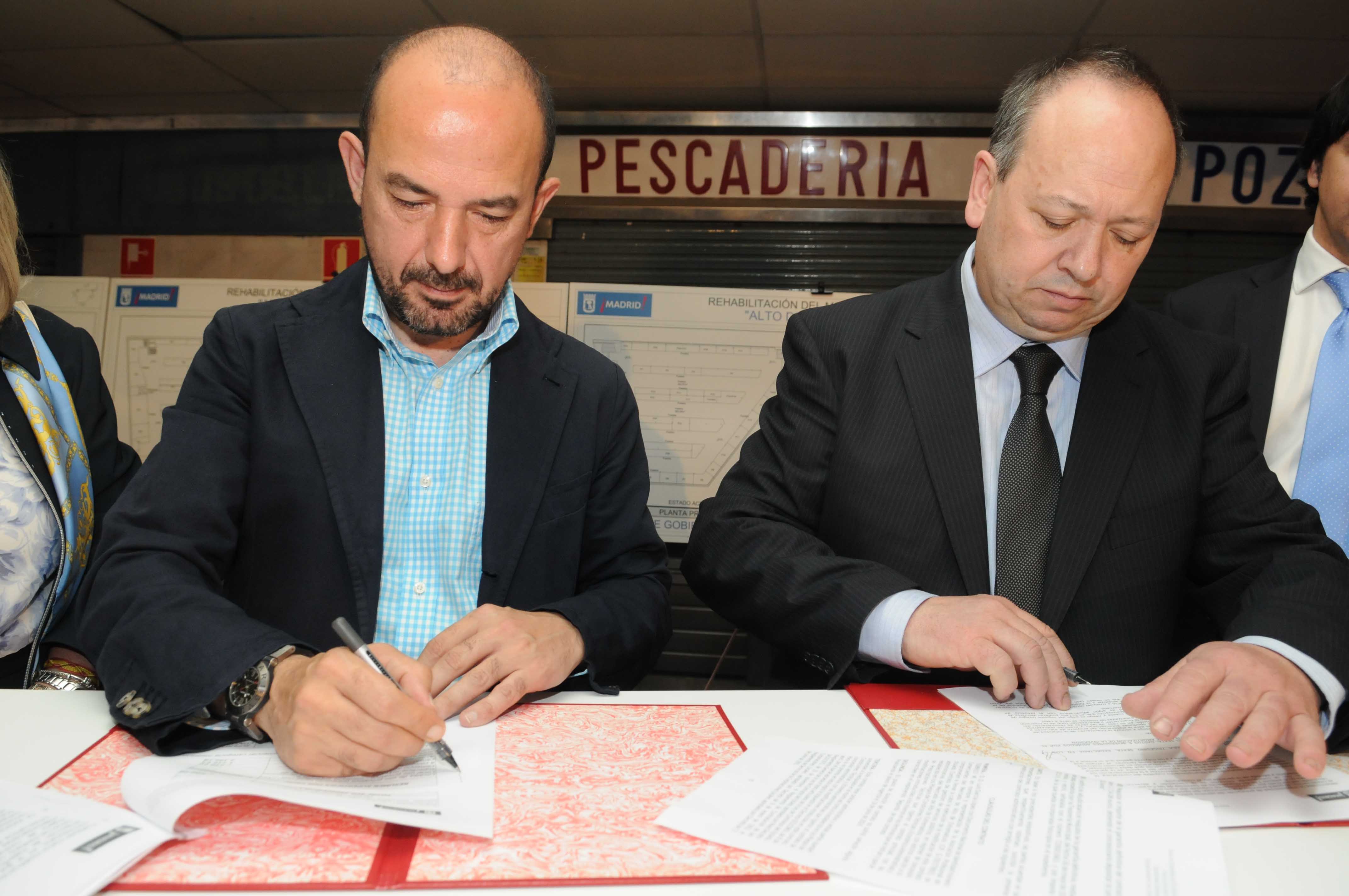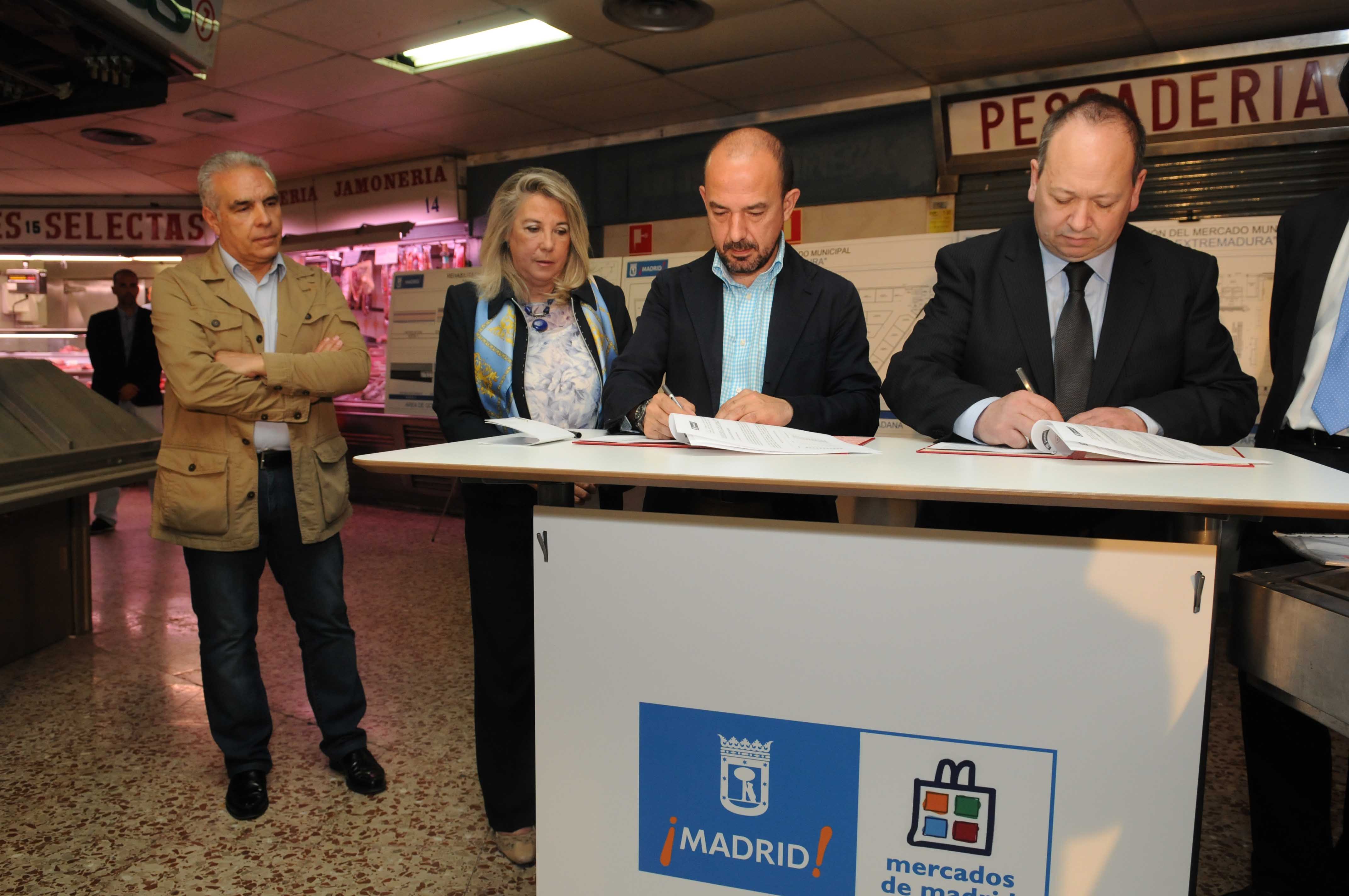 El Mercado de Alto de Extremadura se va a rehabilitar integralmente. Las obras comienzan el próximo 7 de junio y tienen una duración estimada de cinco meses. La inversión es de 2.415.663 euros, de los que el Ayuntamiento de Madrid ha aportado 724.699 euros (30%). El delegado de Economía, Empleo y Participación Ciudadana, Miguel Ángel Villanueva, y el presidente de la Asociación Profesional de Comerciantes del Mercado, Luis García, han firmado hoy un contrato para la puesta en marcha de la renovación.
