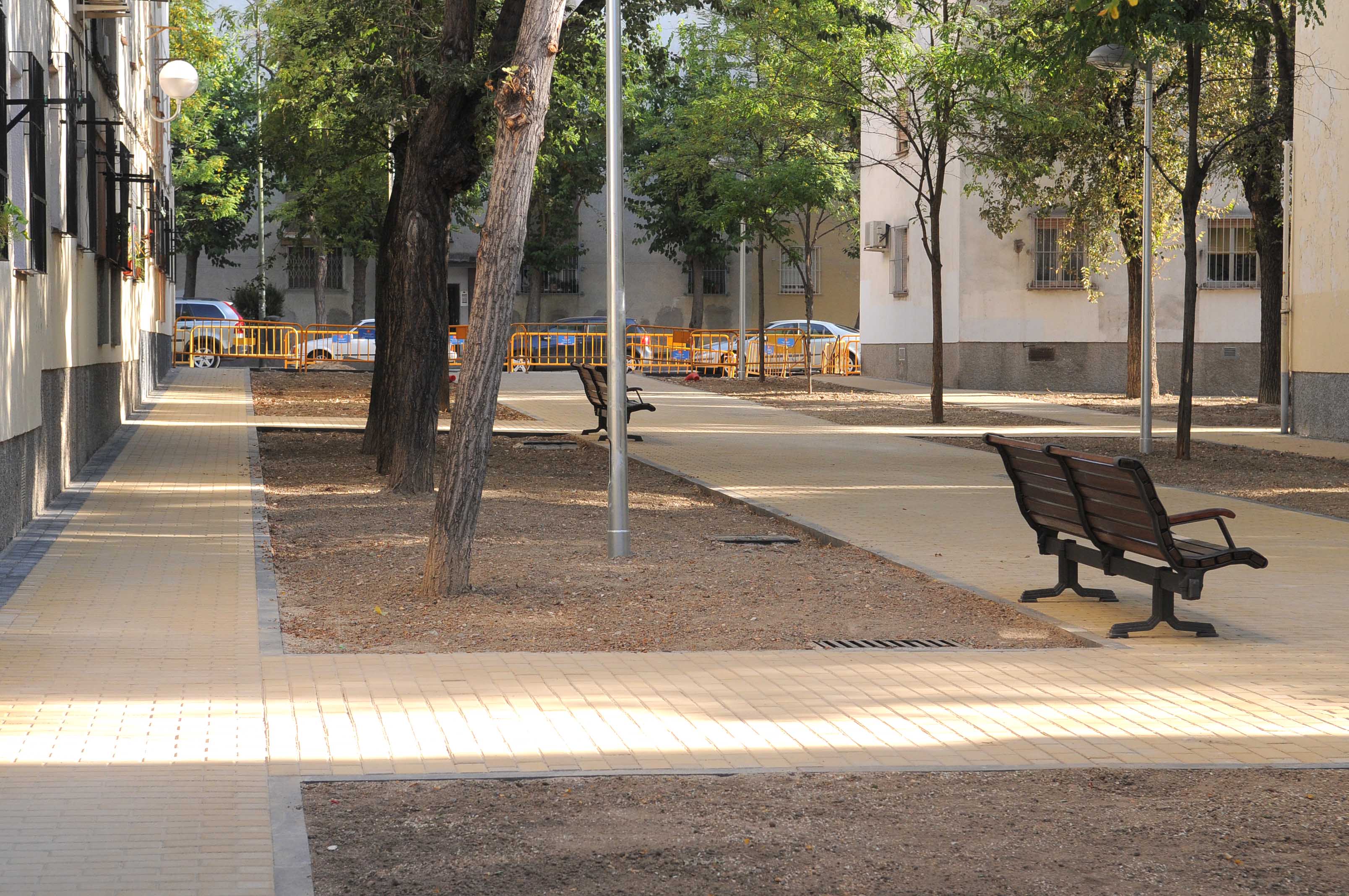 En la actualidad, se está trabajando en las dos primeras manzanas, donde se aprecia ya una buena muestra de las actuaciones que se van a llevar a cabo en el conjunto del ámbito, entre ellas, construcción de una red de saneamiento para aguas pluviales, renovación de las redes de abastecimiento de agua y de alumbrado público, ampliación de la red de riego, pavimentación de las zonas peatonales y eliminación de barreras urbanísticas, creación de accesos para emergencias, renovación del alumbrado público adecuando la intensidad lumínica, plantación de arbolado, reordenación de las secciones de las calles, nuevo mobiliario, juegos infantiles y señalización viaria, instalación de pérgolas para adecuar las zonas de aparcamiento y creación de un carril bici que se integrará en la red de movilidad ciclista de Madrid.