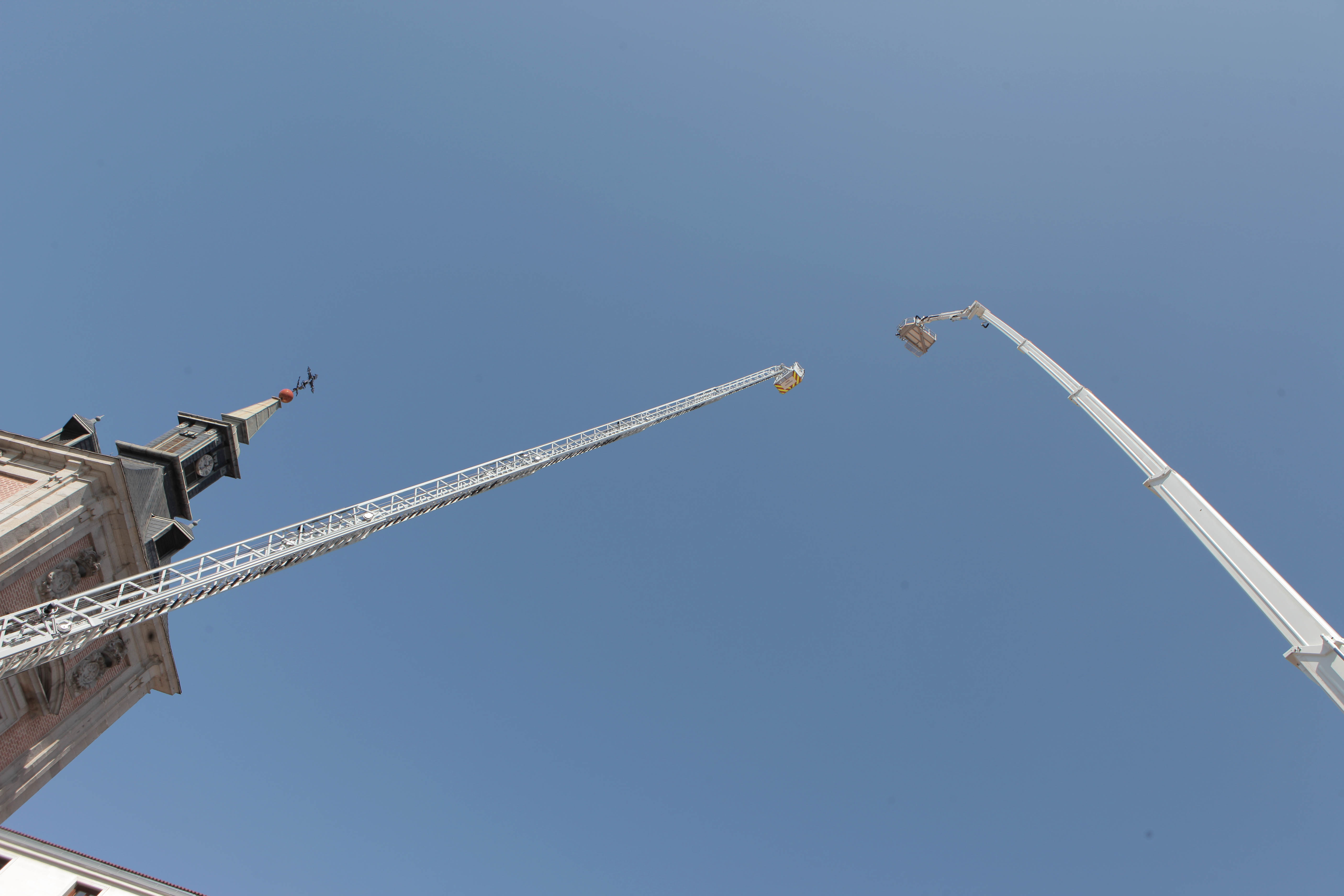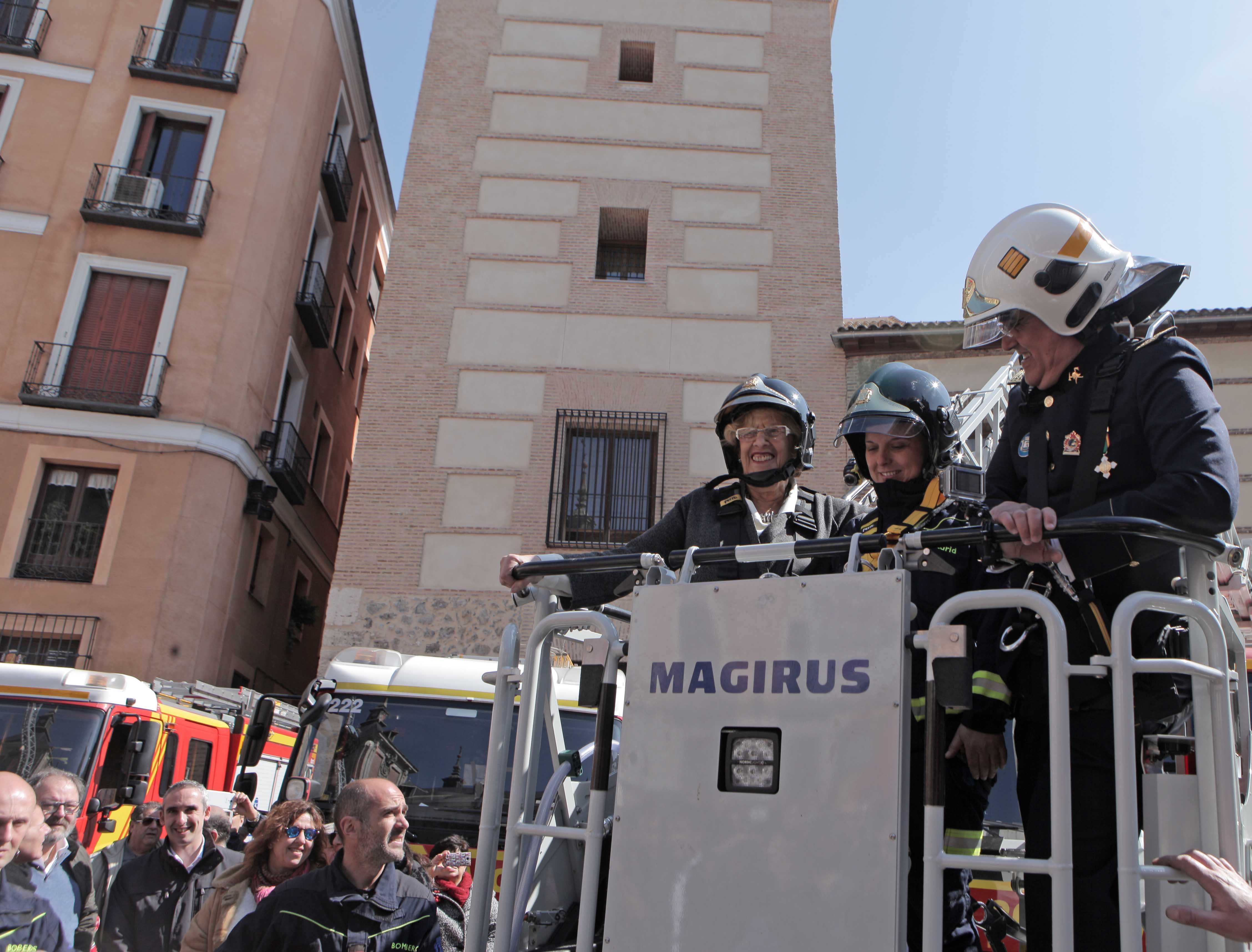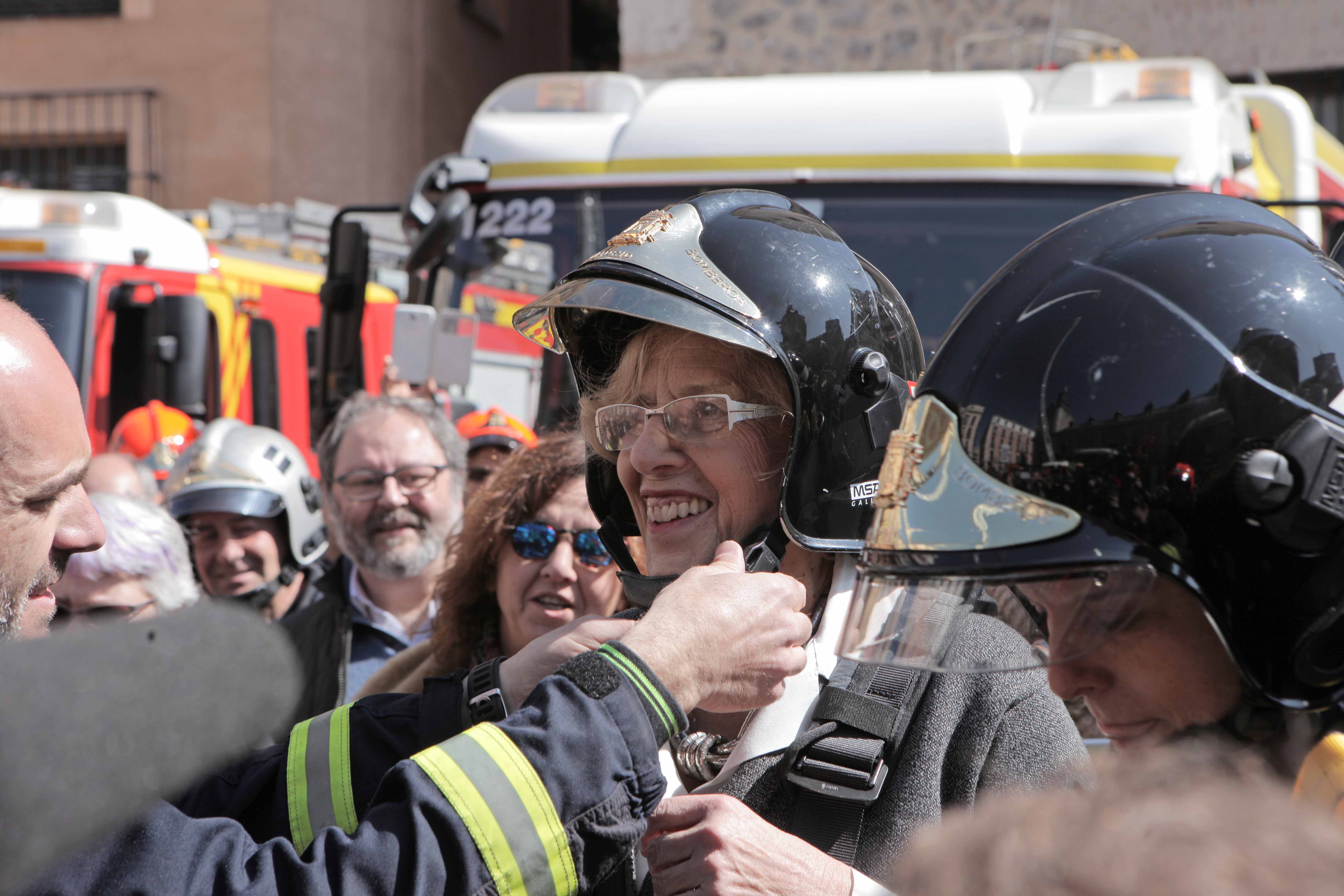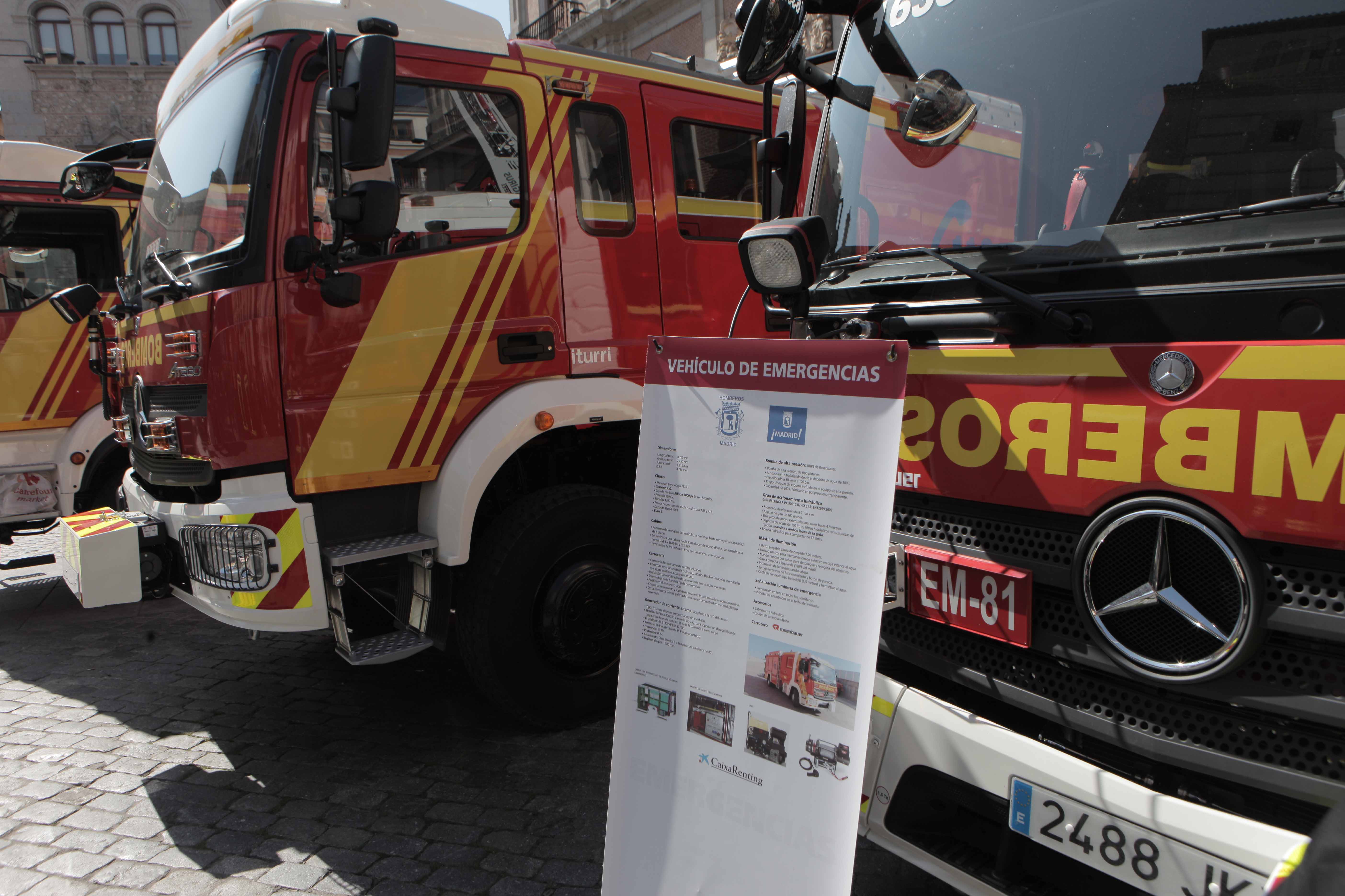 La alcaldesa de Madrid, Manuela Carmena y el delegado del Área de Salud, Seguridad y Emergencias, Javier Barbero, han presentado los nuevos vehículos que se están poniendo en servicio durante el primer trimestre del año en el cuerpo de Bomberos del Ayuntamiento de Madrid. Se trata de una escala de 32 metros articulada y telescópica, una escala de 54 metros, un brazo articulado de 70 metros de altura máxima, un vehículo de emergencias, una bomba urbana pesada para zonas con calles estrechas, una bomba urbana ligera, un tanque de 6500 litros y una bomba de pastos.