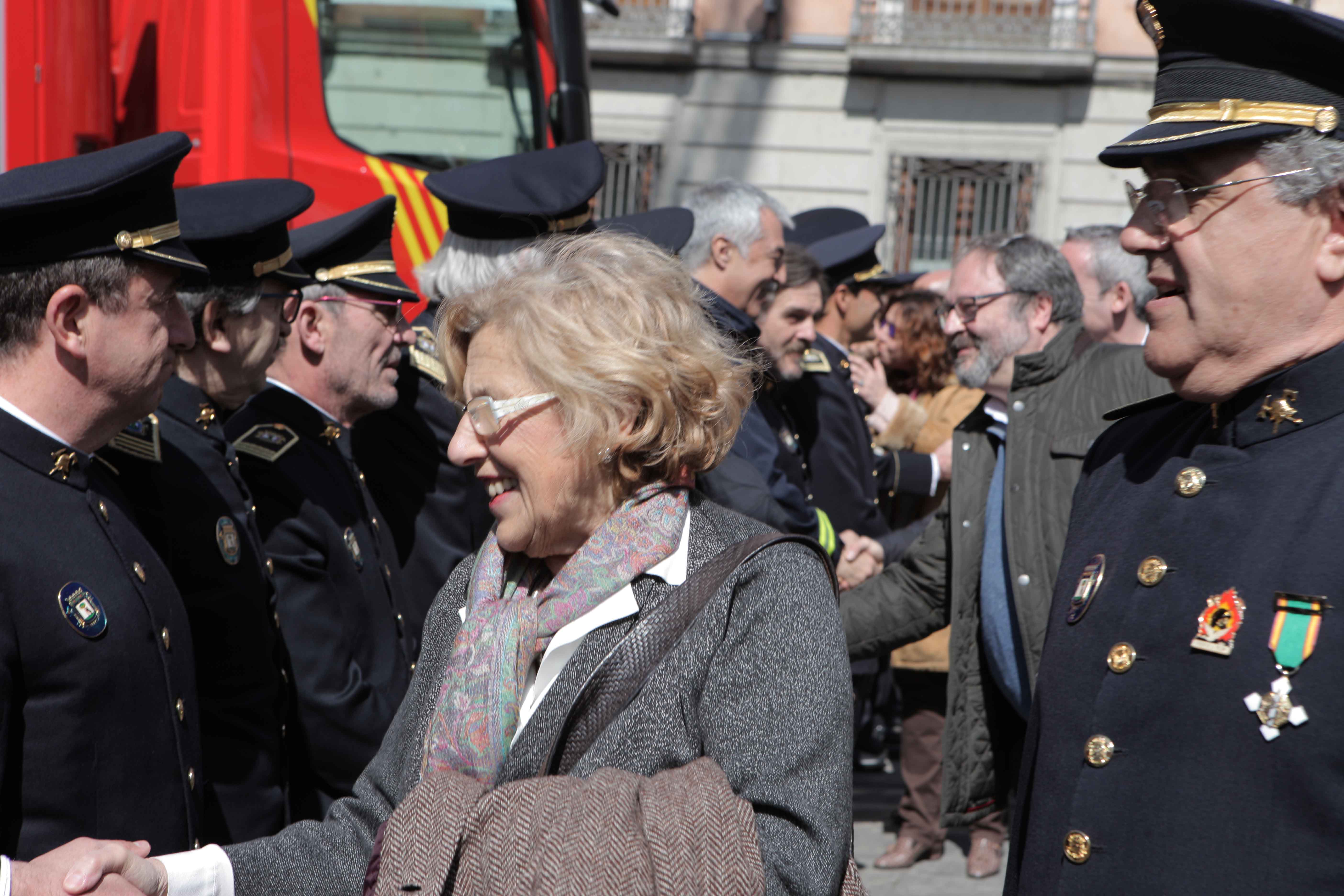 Tras la exhibición del material en la Plaza de la Villa, la alcaldesa y el delegado, acompañados por el coordinador de Seguridad y Emergencias, Daniel Vázquez, la directora general de Emergencias y Protección Civil, Virginia Torres y el jefe de Bomberos de Madrid, Eugenio Amores, han accedido al Patio de Cristal para hacer entrega de las distinciones y reconocimientos de los Bomberos del Ayuntamiento de Madrid a quienes han destacado por su apoyo y colaboración con el Cuerpo. La alcaldesa ha lanzado una definición “fruto de sus pensamientos” indicando que “la gestión es la organización en movimiento”, dando importancia a las personas que son las que mueven las organizaciones y en este caso son los bomberos los que lo hacen posible. Ha querido además recalcar el servicio de ayuda y cuidado de los bomberos hacia la sociedad. Por su parte, Barbero ha agradecido a este cuerpo su carisma de hospitalidad recordando que una sociedad funciona con valores concretos al servicio de la comunidad.