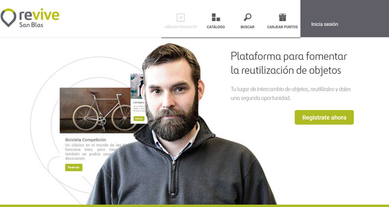 El programa Revive San Blas es una plataforma web y móvil gratuita para intercambiar objetos usados en buen estado con el objeto de promover su reutilización. Se trata de un proyecto que funcionará durante tres meses en el punto limpio de San Blas, y que busca implantar una cultura de reutilización de objetos para la reducción de residuos, impulsar el uso del punto limpio e incrementar la concienciación y la participación ciudadana.