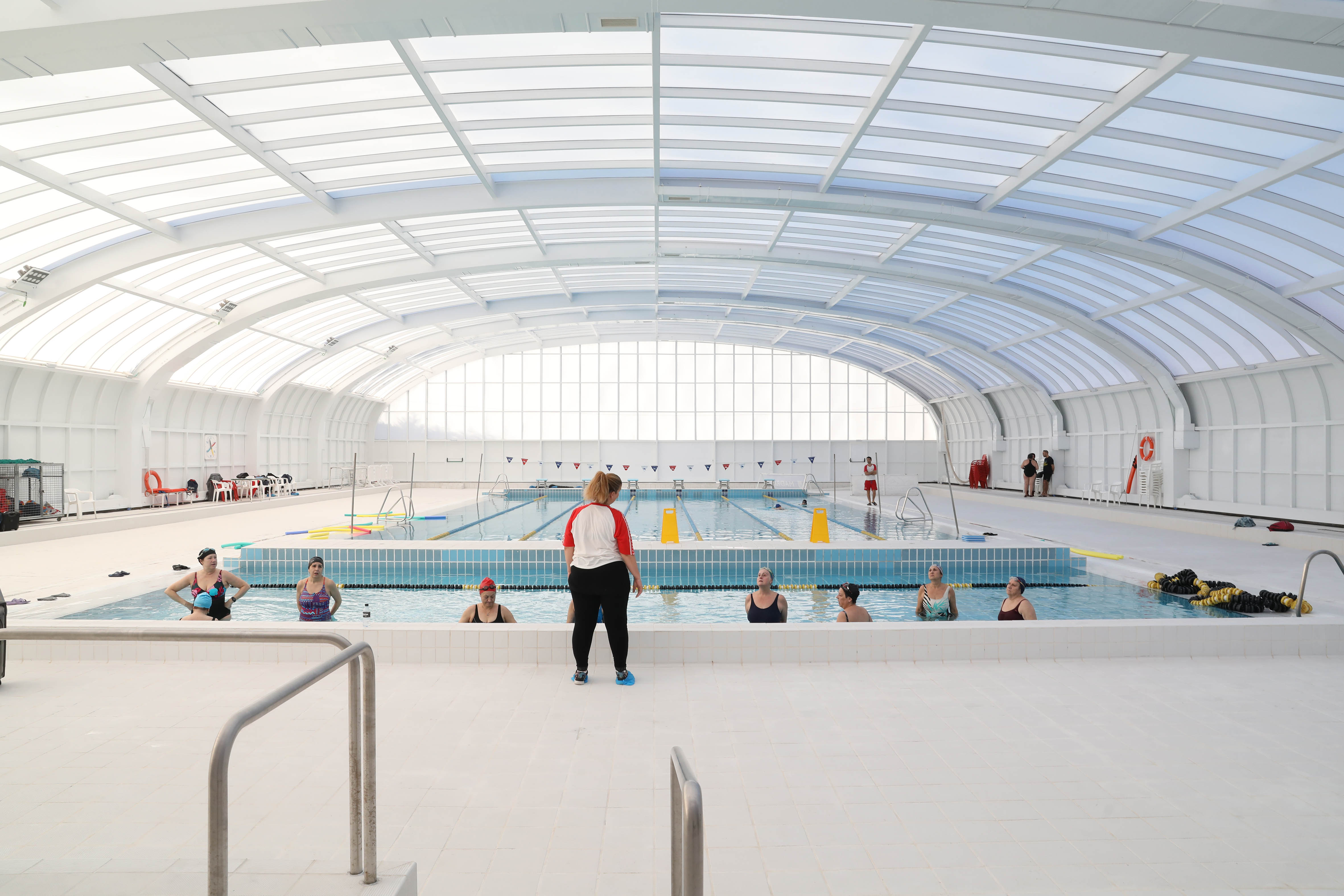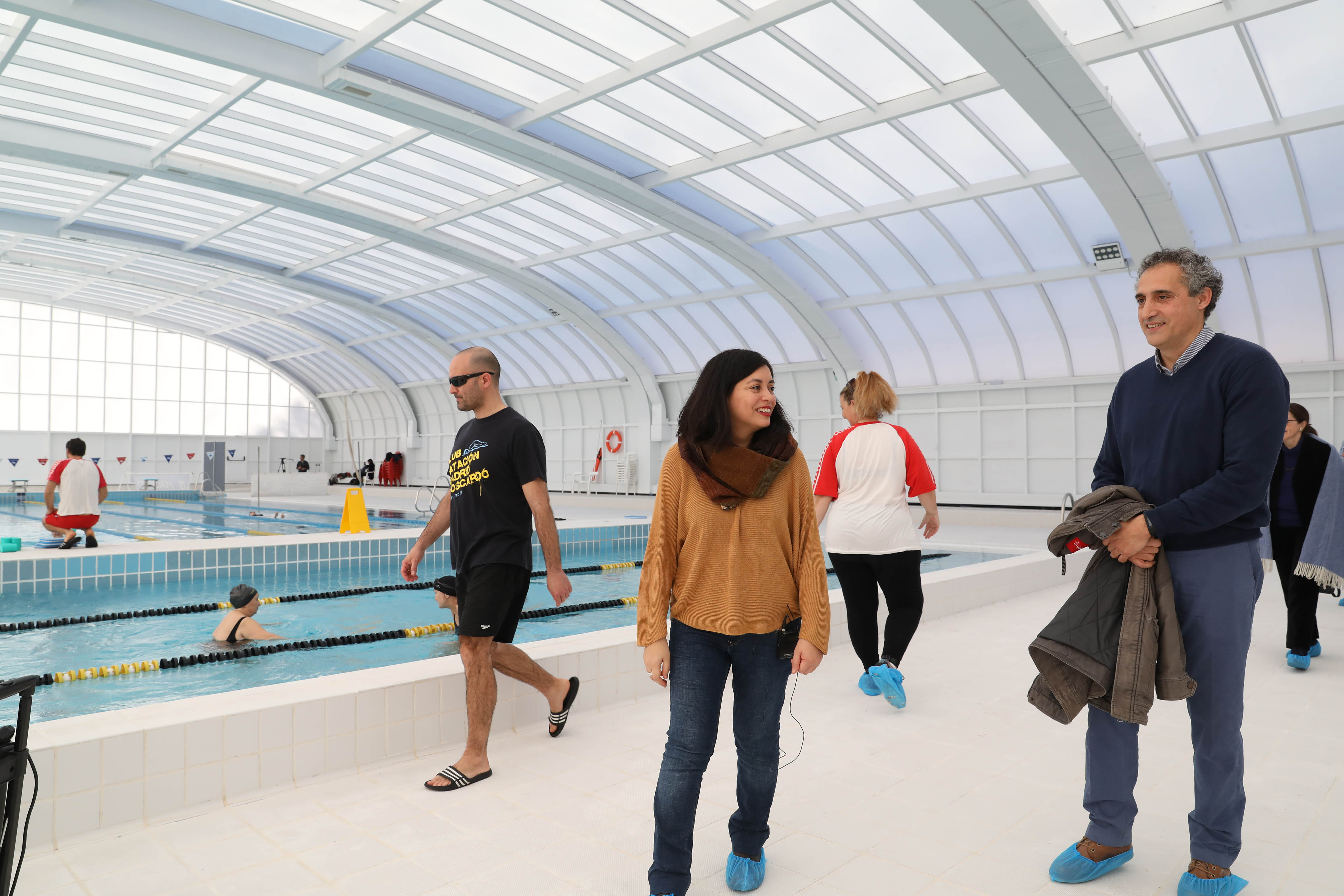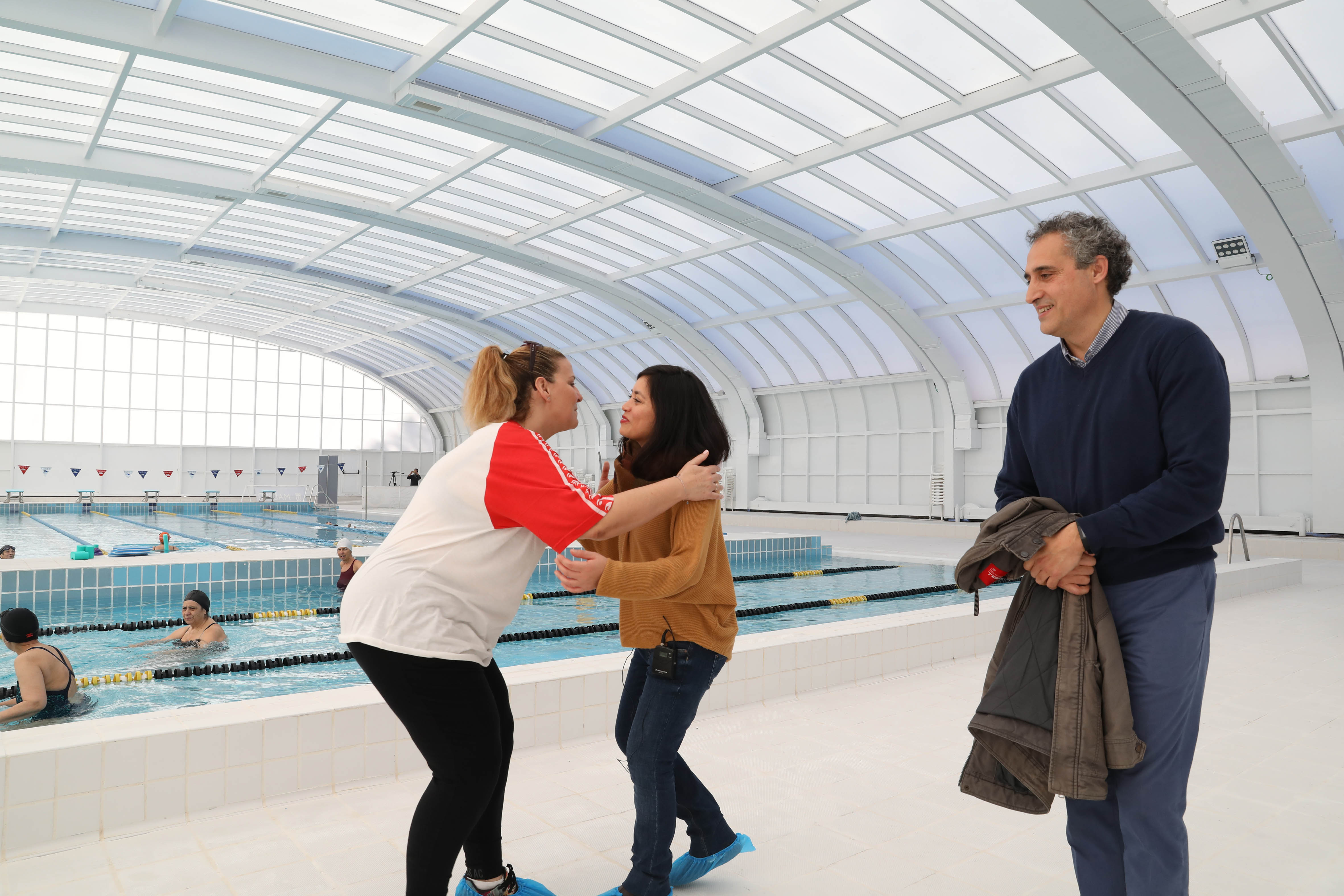 - La concejala del distrito, junto al presidente y al director del Club de Natación Moscardó, ha presentado hoy la remodelación llevada a cabo