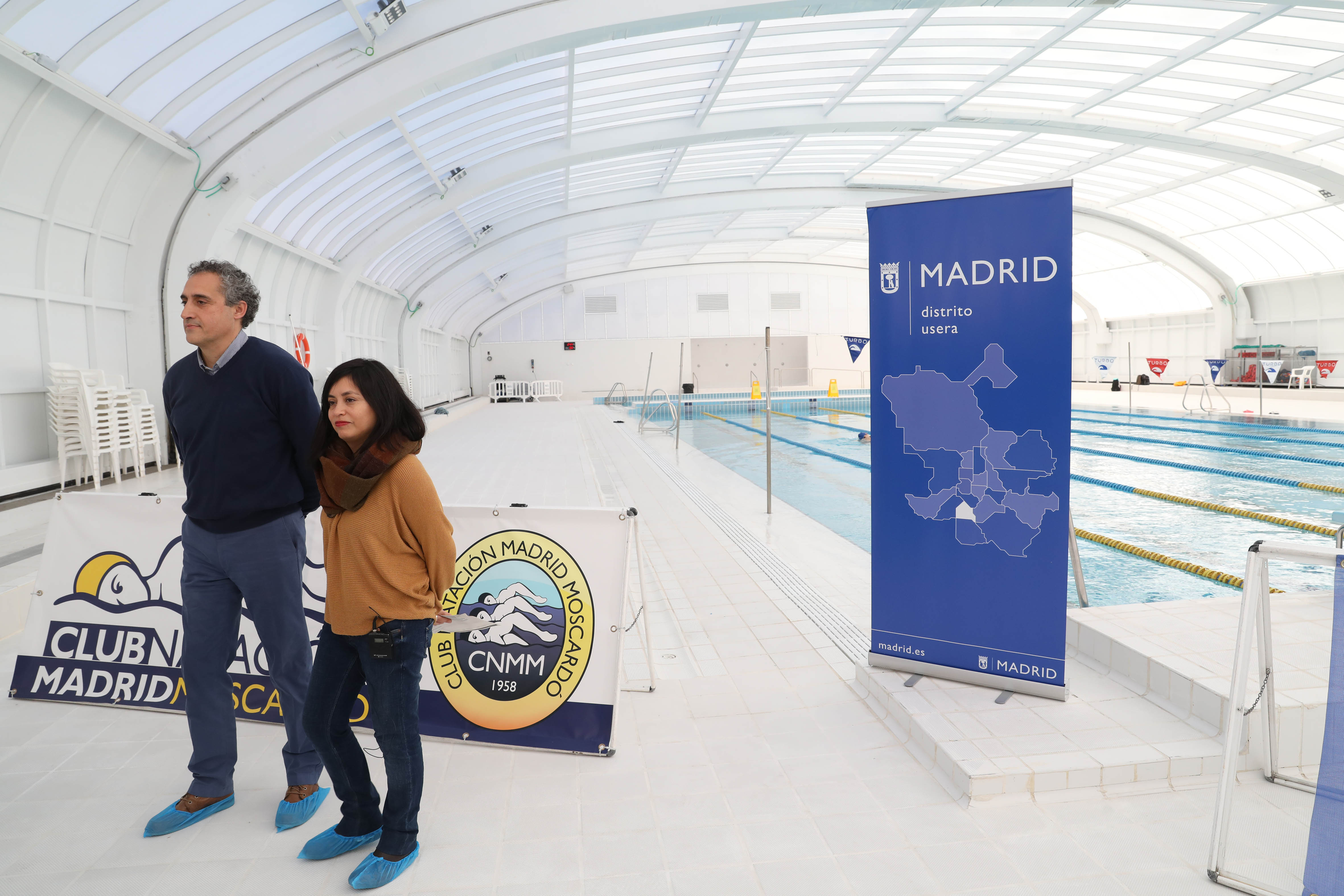 Las vecinas y vecinos del barrio de Moscardó ya pueden volver a hacer uso de la piscina del polideportivo desde primeros de este mes después de la finalización de las obras de reparación y remodelación en la piscina del centro deportivo municipal Moscardó. La concejala del distrito de Usera, Rommy Arce, acompañada del presidente del Club de Natación Moscardó, Ramón Ballesteros y de su director, Javier García, ha presentado esta mañana, jueves 8 de febrero, la reforma de las instalaciones en las cuales se han llevado a cabo obras de remodelación por valor de 1.710.076 euros.