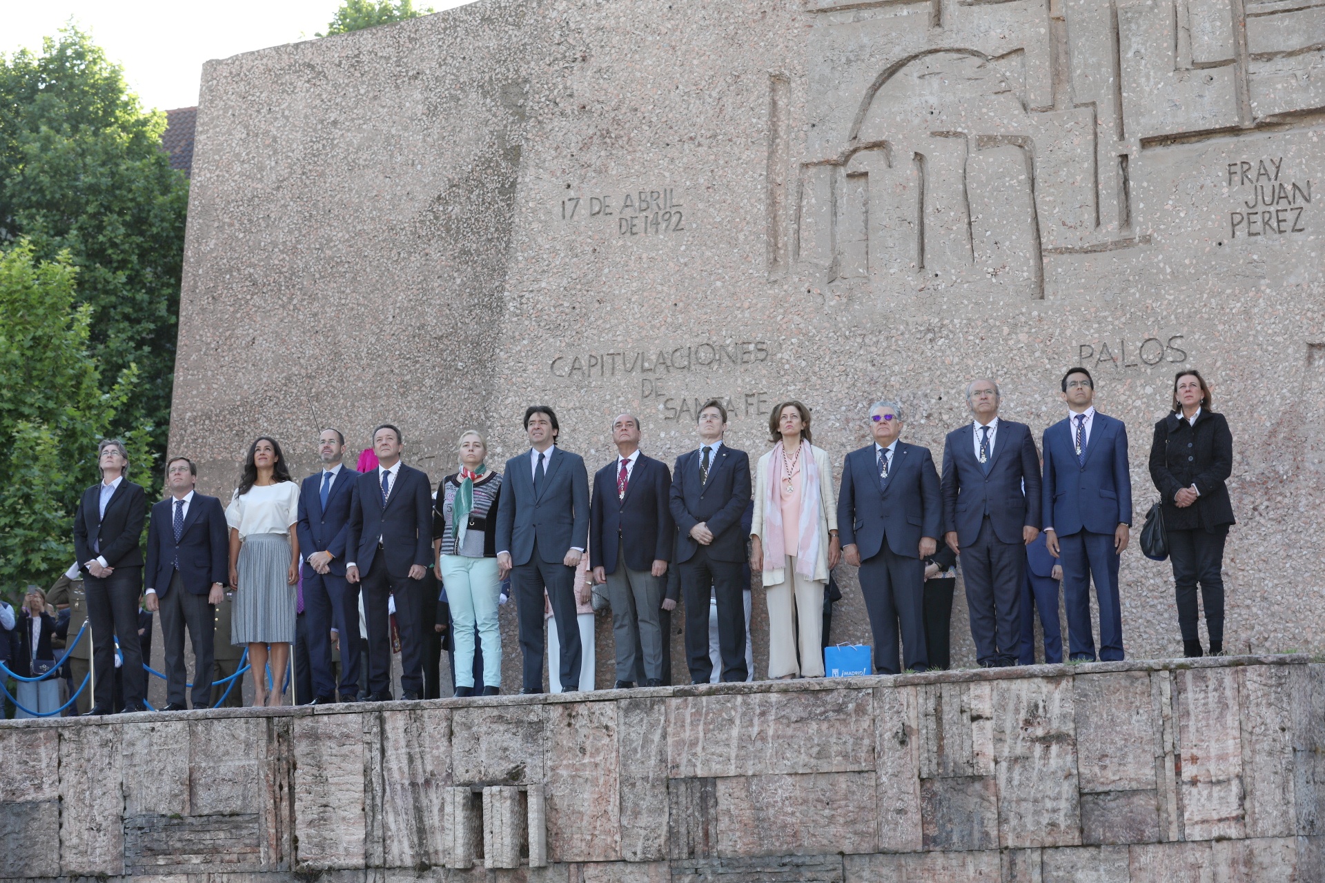 La alcaldesa Manuela Carmena se ha trasladado desde el izado en los Jardines del Descubrimiento al madrileño parque del Retiro para entregar las Medallas de Oro de Madrid a cuatro personas que, además de haber destacado en sus correspondientes campos, poseen una vinculación especial con la ciudad. Este año los elegidos han sido el músico Rosendo Mercado, la actriz Carmen Machi Arroyo, el deportista Javier Fernández y la Federación de Entidades y Centros para la Integración y Ayuda de Marginados (FACIAM).
