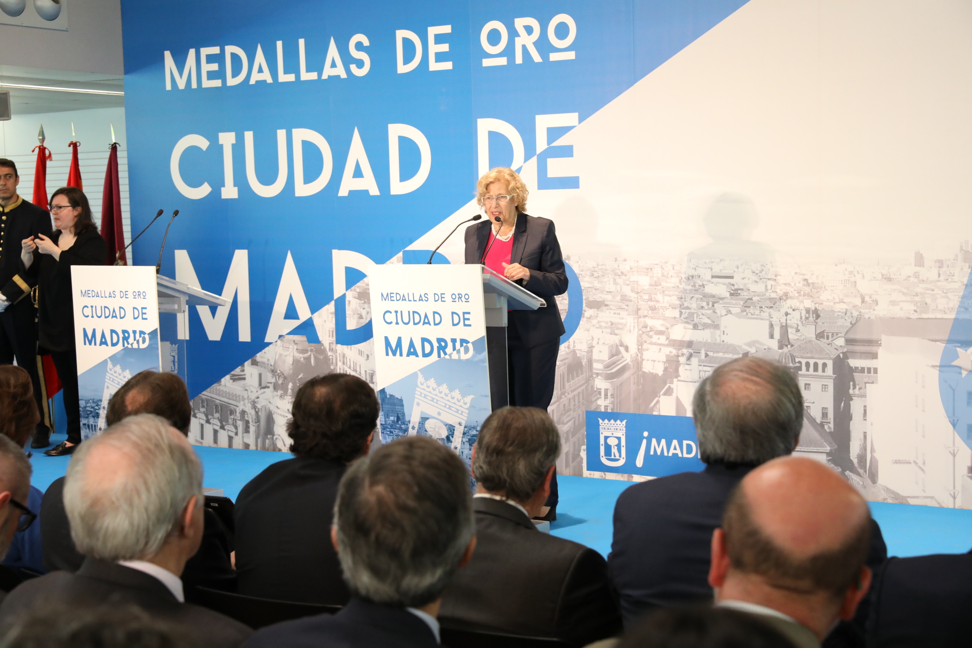 - La jornada ha arrancado con el izado de la bandera en la plaza de Colón, a la que ha asistido Manuela Carmena, quien ha hecho entrega de las Medallas de Oro del Ayuntamiento, la máxima distinción de la ciudad
