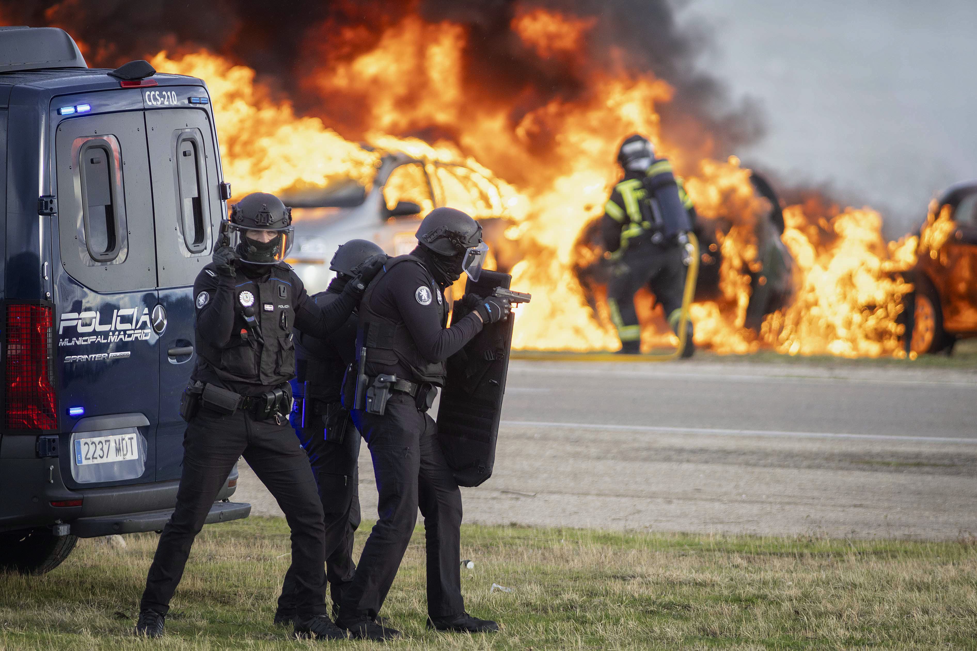 - Se ha desarrollado en la Base Aérea de Cuatro Vientos, en tres escenarios, con diversas situaciones críticas (explosiones, persecuciones, incendios…) ante las que actúan los diferentes servicios de emergencias y de seguridad participantes