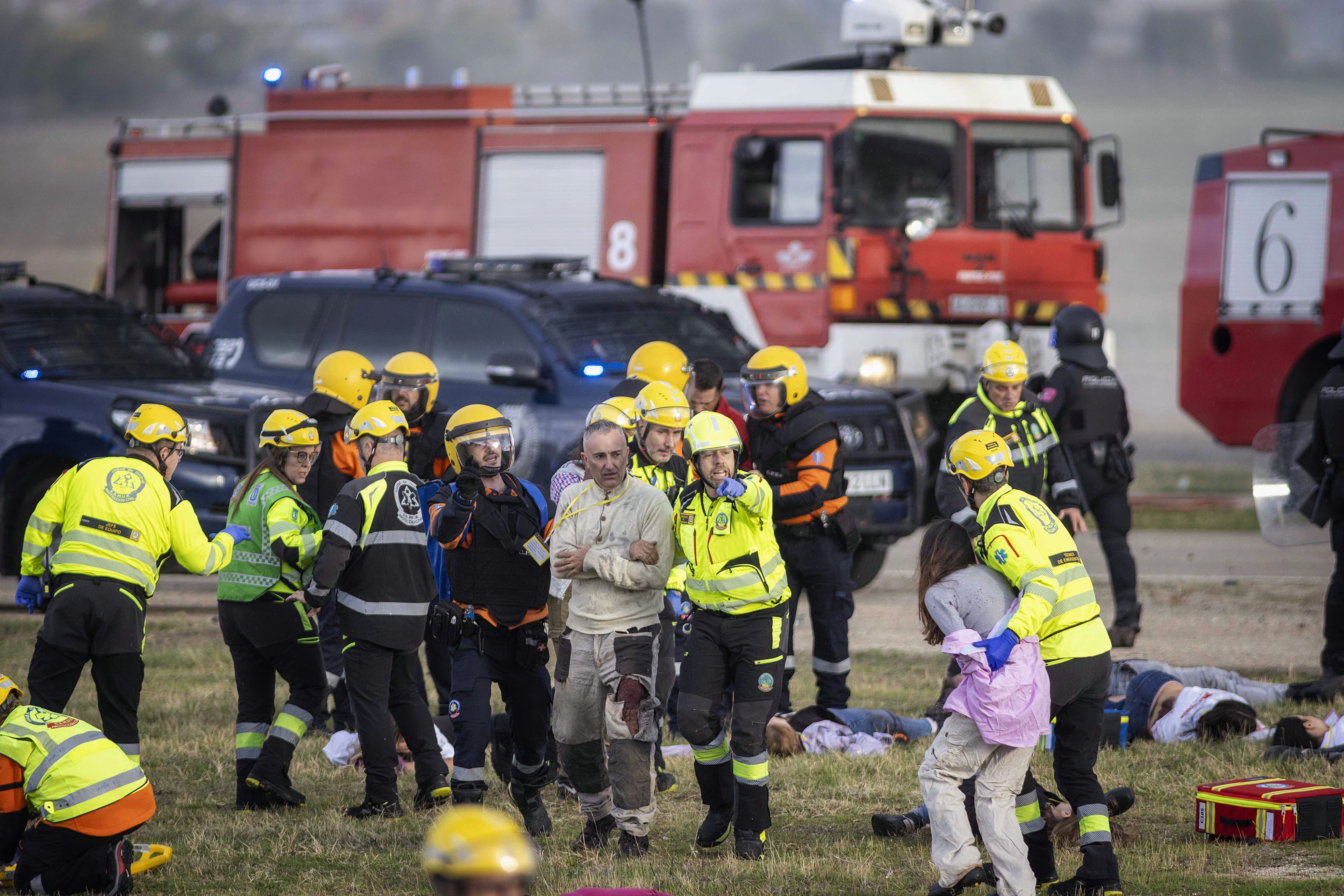En el simulacro, han participado todos los servicios de emergencias y de seguridad del Ayuntamiento (SAMUR-Protección Civil, Cuerpo de Bomberos y Policía Municipal), así como de las Fuerzas Armadas, Policía Nacional, Guardia Civil (incluyendo un helicóptero), SELUR, SAMUR Social, varios hospitales madrileños y los servicios de emergencias de cinco países (Alemania, Suecia, Portugal, Rumania y Mauritania) y de 15 comunidades autónomas (todas menos Navarra y Canarias).