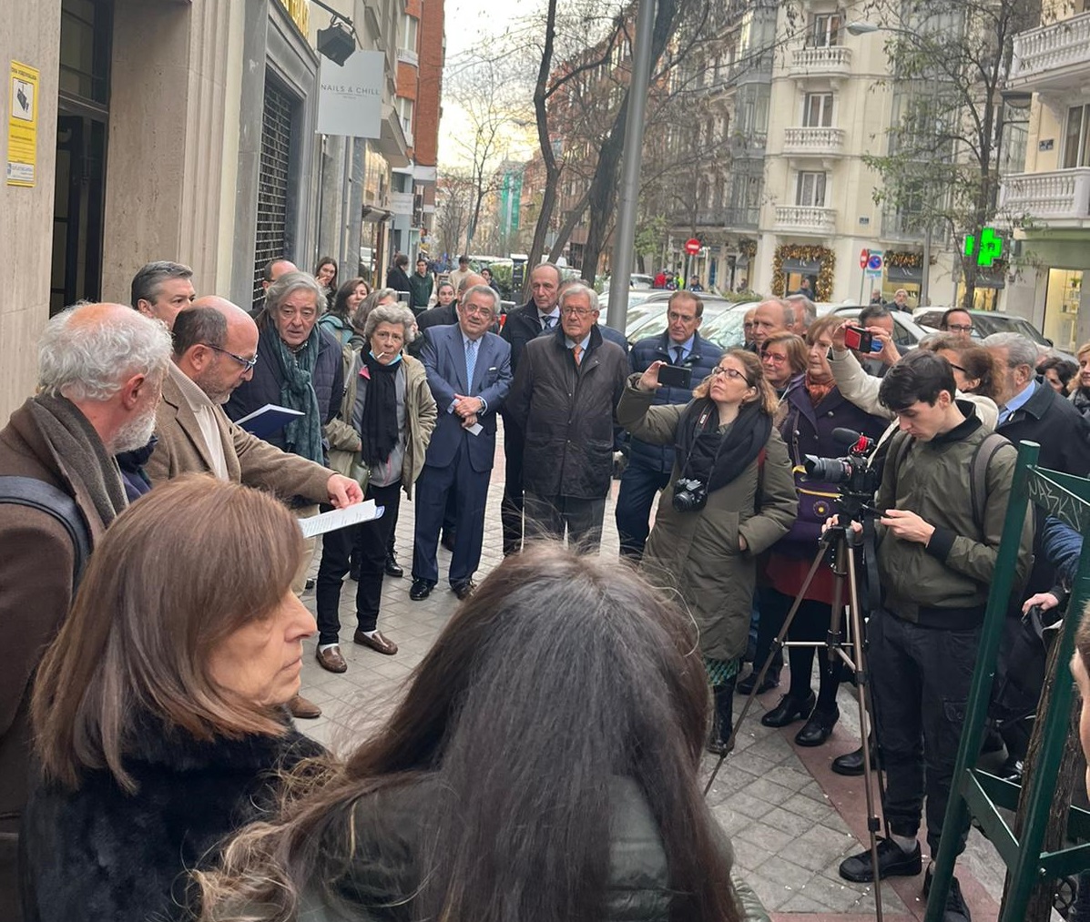 El concejal del distrito de Salamanca, José Fernández, ha descubierto hoy una placa en homenaje al empresario Ignacio Hernando de Larramendi y Montiano, en la calle del General Oraá 26, lugar donde residió durante más de 50 años. Este reconocimiento es fruto del acuerdo del Pleno de la Junta Municipal de Salamanca del mes de febrero de 2022.