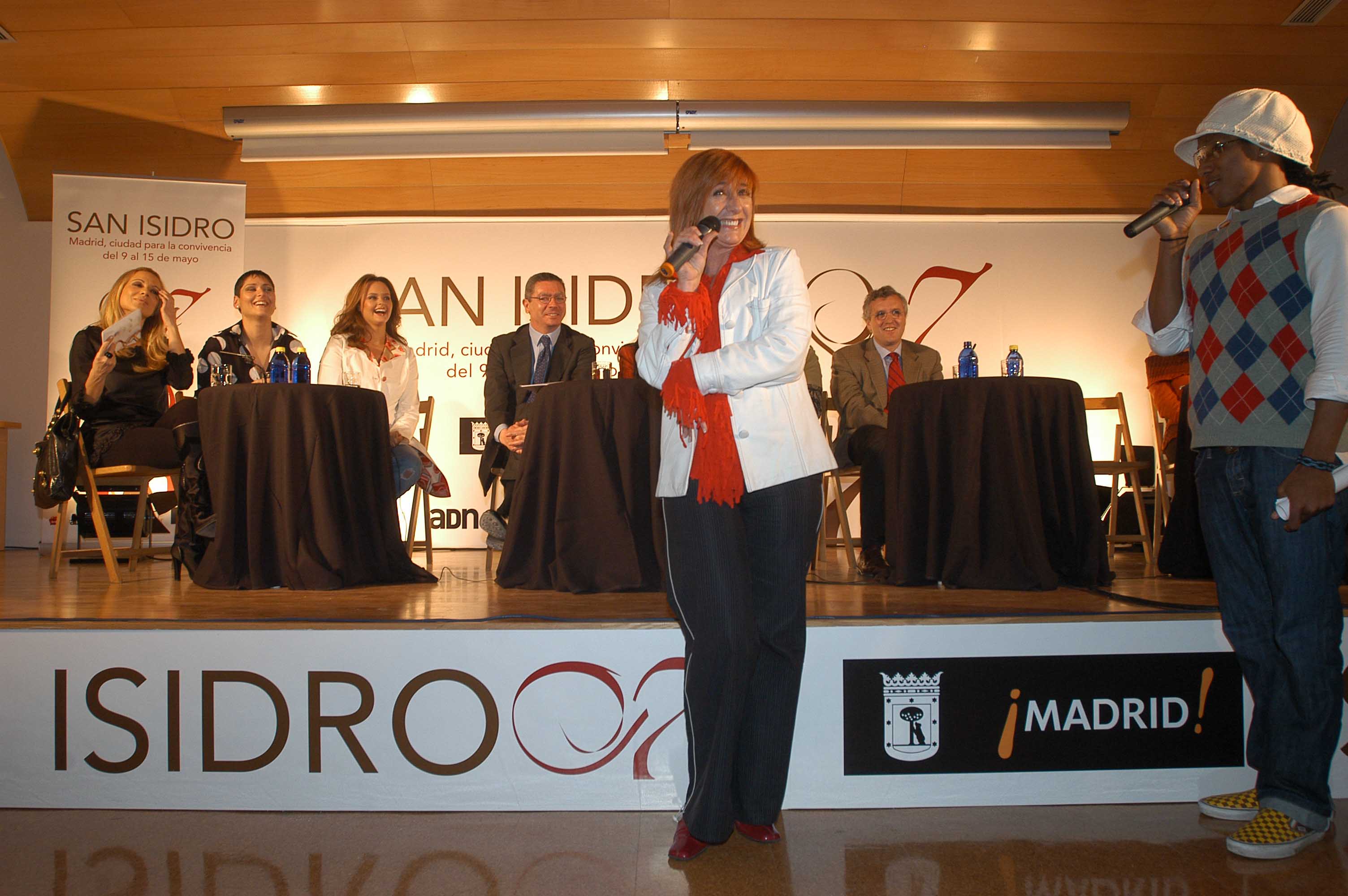 El alcalde de la Ciudad de Madrid, Alberto Ruiz Gallardón, durante la presentación del programa de las Fiestas de San isidro para 2007. Al acto han asistido, entre otros, Marta Sáncez, Shaila Dúrcal, Rosa, Las Veneno, Pedro Martínez y Tamzin Twonsend.