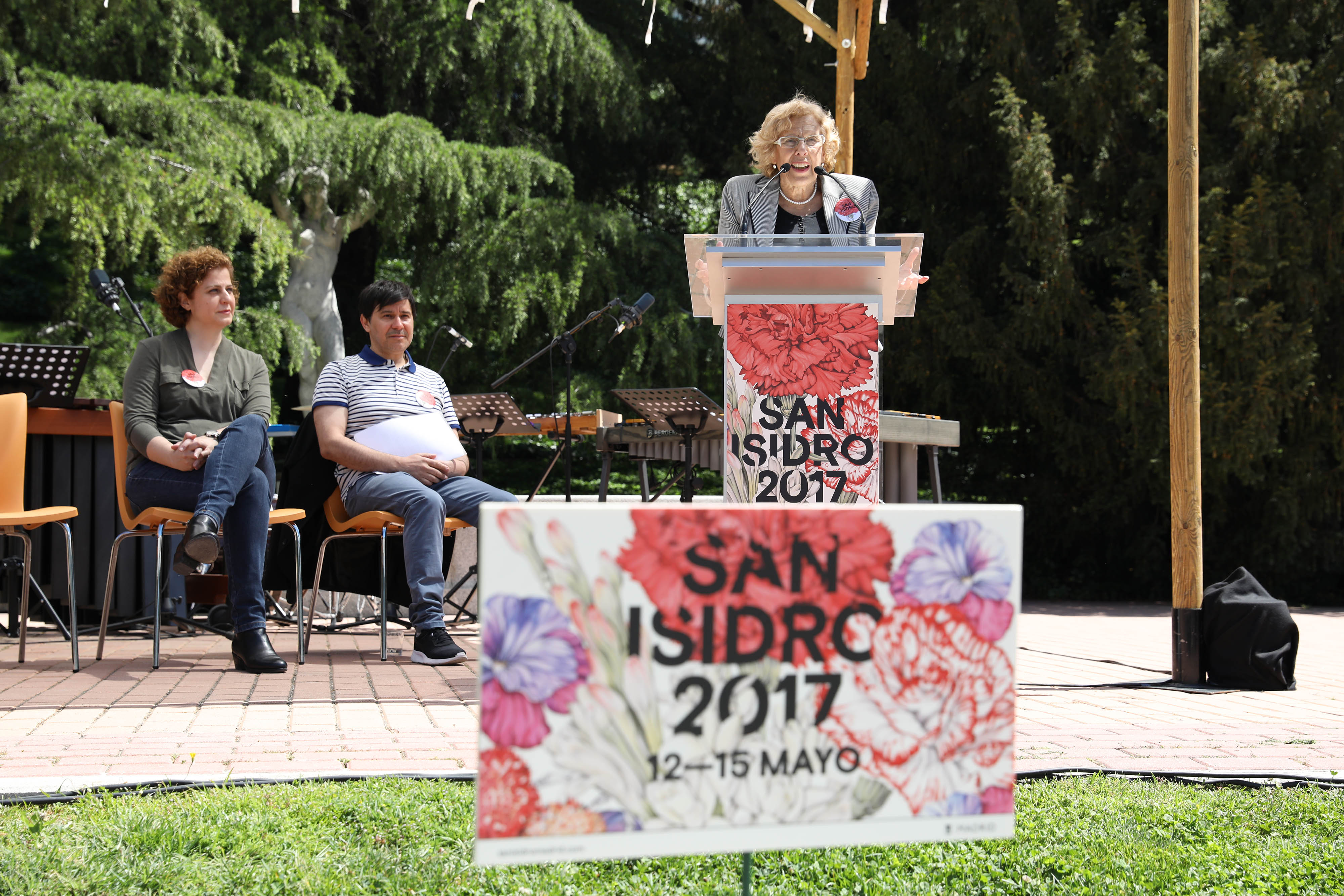La alcaldesa de Madrid, Manuela Carmena, acompañada por la concejala de Carabanchel, Esther Gómez; la directora general de Programas y Actividades Culturales, Getsemaní de San Marcos, y el director artístico de San Isidro 2017, José Morán, han presentado hoy, miércoles 3 de mayo, la programación para esta festividad. Lo han hecho precisamente en uno de los nuevos espacios que se incorporan este año a las fiestas, la Rosaleda del Parque del Oeste. “Diverso, abierto, para todos los gustos y edades”, así ha calificado la regidora la programación de este año de la que ha destacado la amplia parte musical así como la posibilidad de descubrir nuevos rincones de la ciudad, como el que hoy ha sido escenario de la presentación.